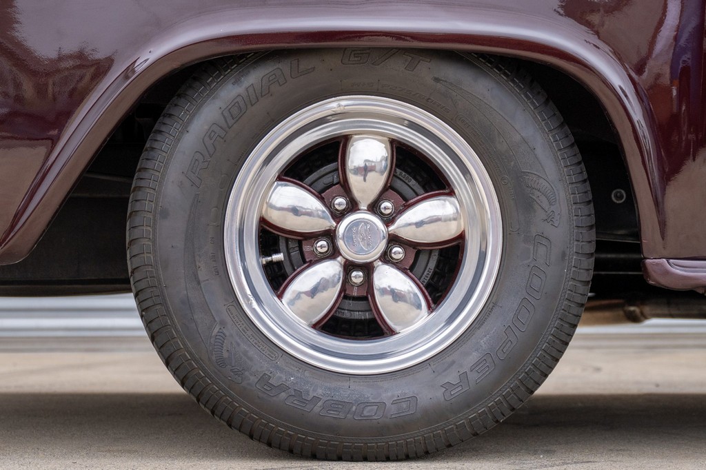 15″ polished American Racing Classic 200S wheels with simulated cross-drilled rotor plates, wrapped in Cooper Cobra Radial G/T tires.