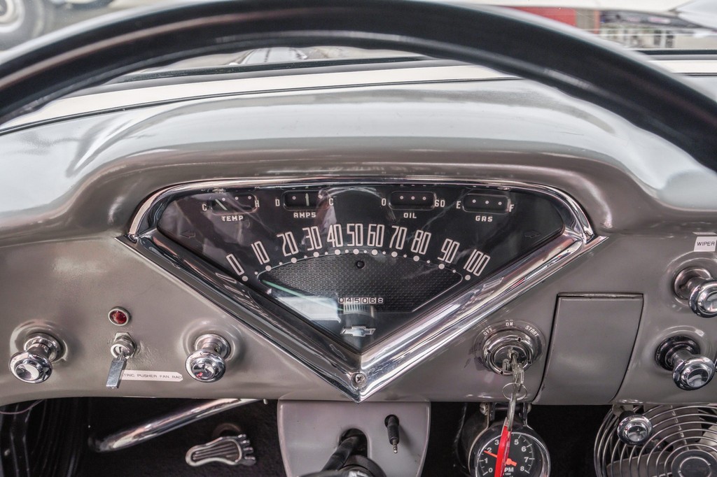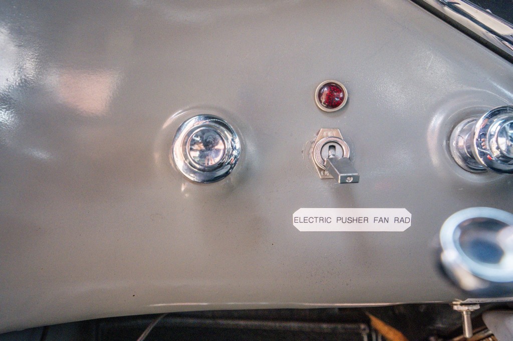 Bowtie rearview mirror, seatbelts, fire extinguisher, glovebox-mounted fan
