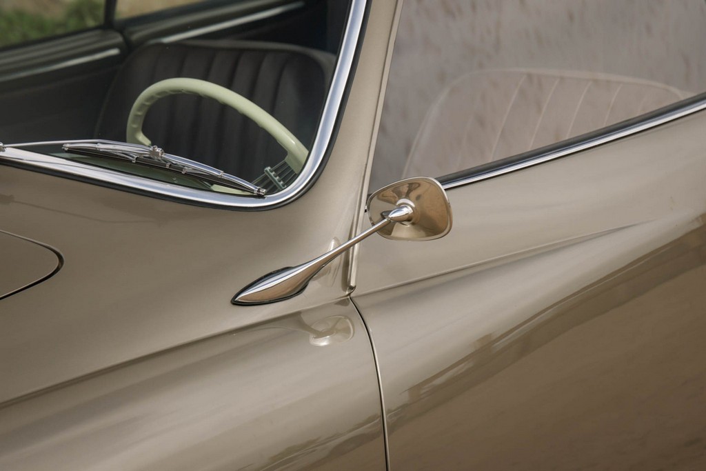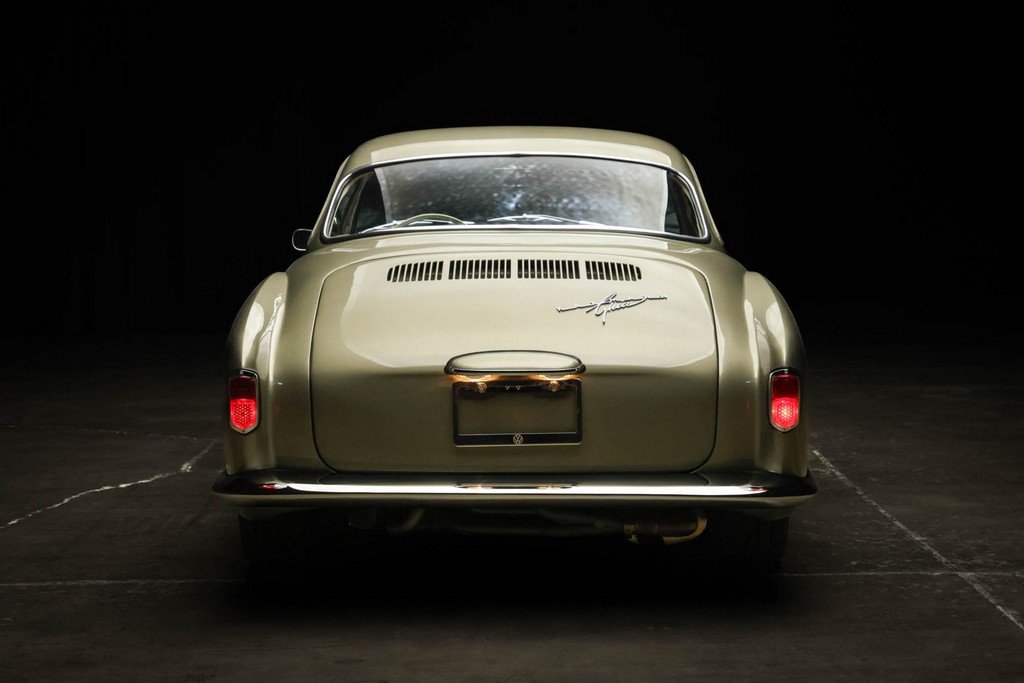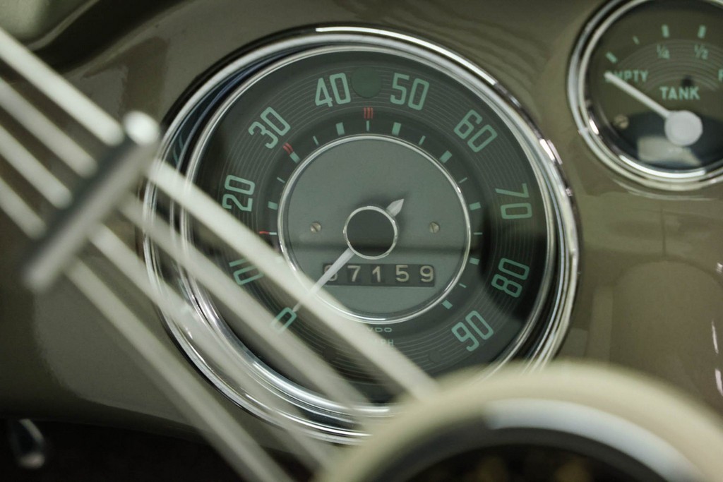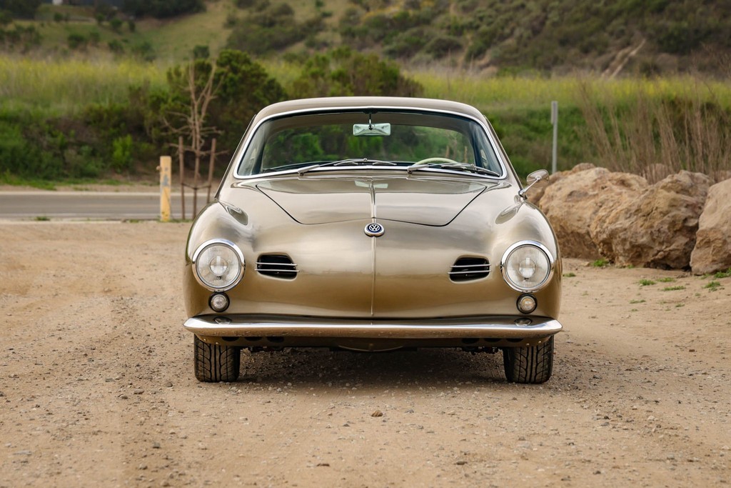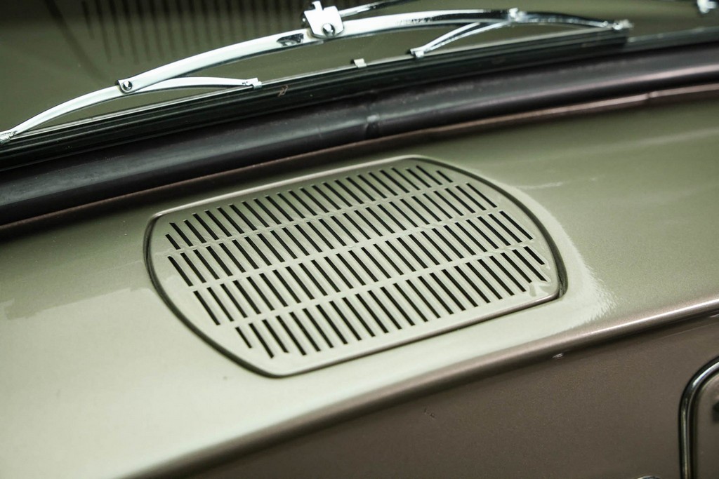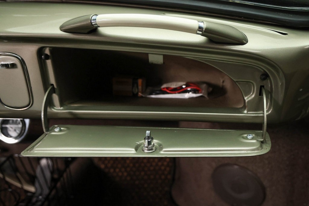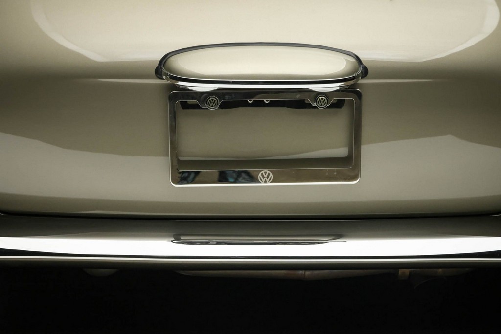 The body of this early Ghia—recognized by enthusiasts for its sought-after “Lowlight” front-end styling—has been refinished in a custom metallic bronze, giving the car a warm, elegant tone that shifts subtly in the light. The finish is smooth and reflective, showcasing clean panel fitment and careful attention to detail throughout the restoration process. Chrome bumpers and trim accent the exterior, providing just the right touch of vintage flair.