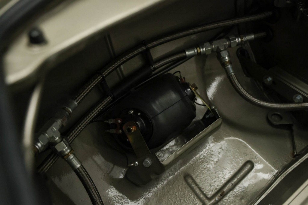 Underneath, the car features a modified suspension setup, allowing for a lower ride height without sacrificing driveability. 944-sourced disc brakes at all four corners provide greatly improved stopping power compared to the stock configuration, making this Ghia feel much more modern on the road.