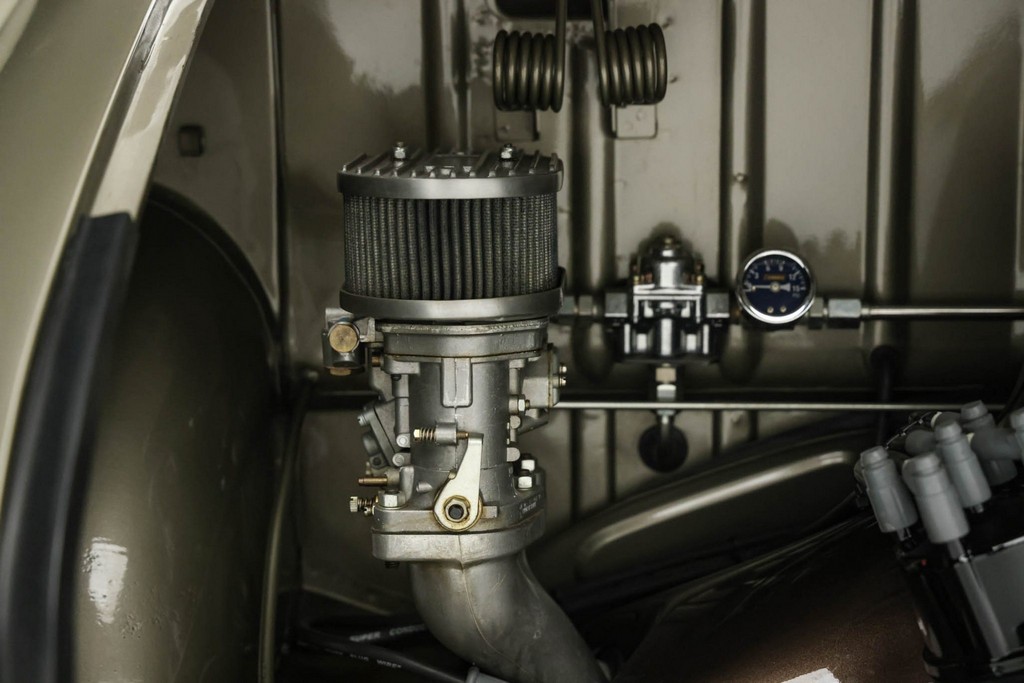 Thoroughly refurbished and thoughtfully modified, this Ghia now rides on 16″ Porsche Cup-style alloy wheels, and features upgraded four-wheel disc brakes sourced from a 944, giving it both visual impact and enhanced stopping power. Paired with a suite of high-performance internals and a host of period-style and bespoke elements, this unique build pays homage to both German style and the air-cooled tuning tradition.