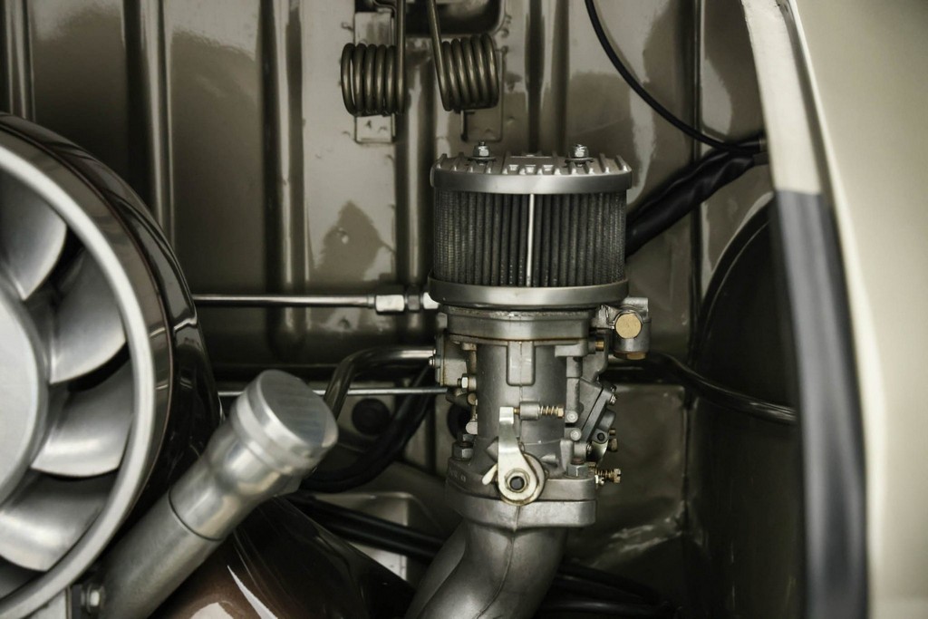 This Karmann Ghia delivers a uniquely satisfying driving experience. The added horsepower and torque from the built 2.3-liter flat-four, paired with the enhanced suspension and braking system, make it a delight to drive on twisty backroads or casual cruises alike. The manual gearbox engages cleanly, and the 911-style fan and dual Webers provide an unmistakable soundtrack, blending Porsche-inspired engineering with the charm of vintage VW motoring.