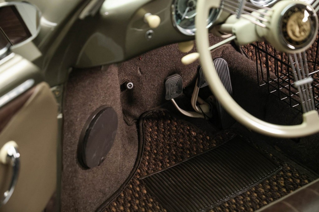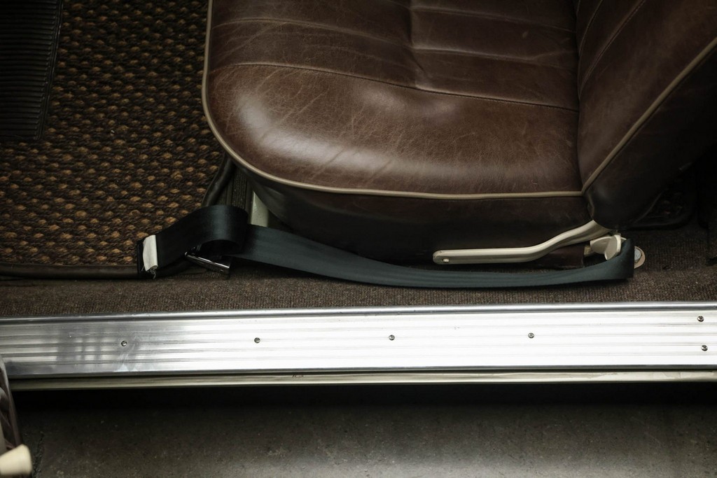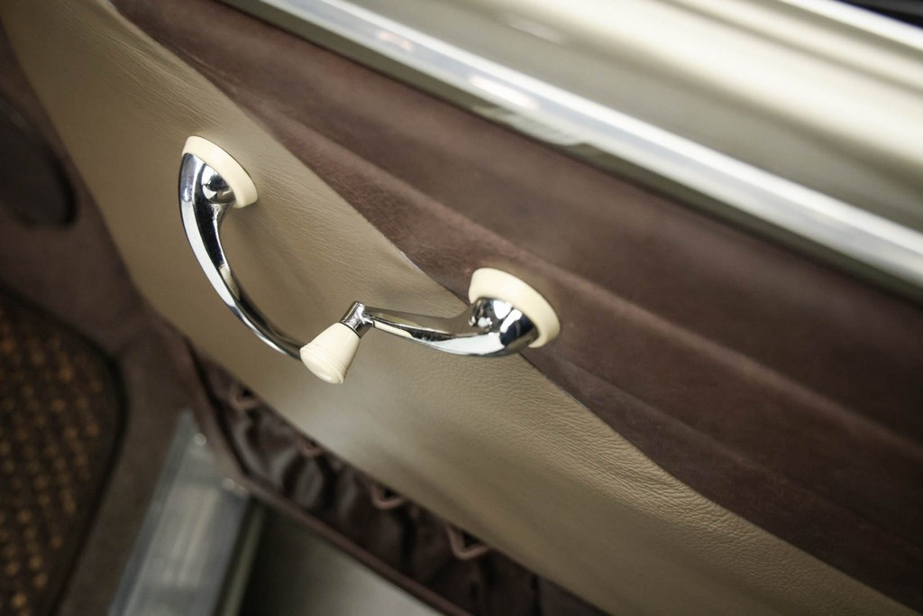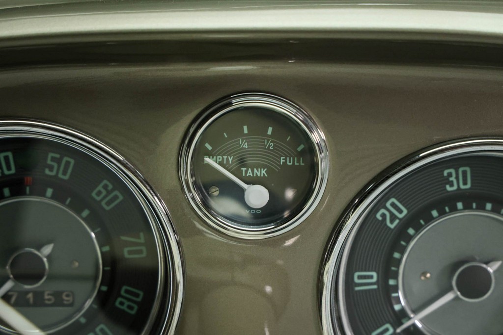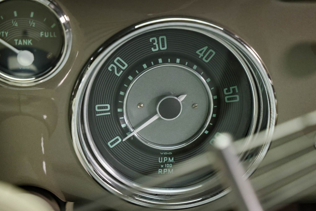 The cabin has been discreetly modernized with a hidden Alpine stereo system, allowing for modern audio capability without compromising the period-correct aesthetic. Upholstery is in excellent condition with a fresh, tailored appearance, and the seats provide a supportive yet vintage-correct feel. Instrumentation remains traditional, cleanly presented, and fully functional.