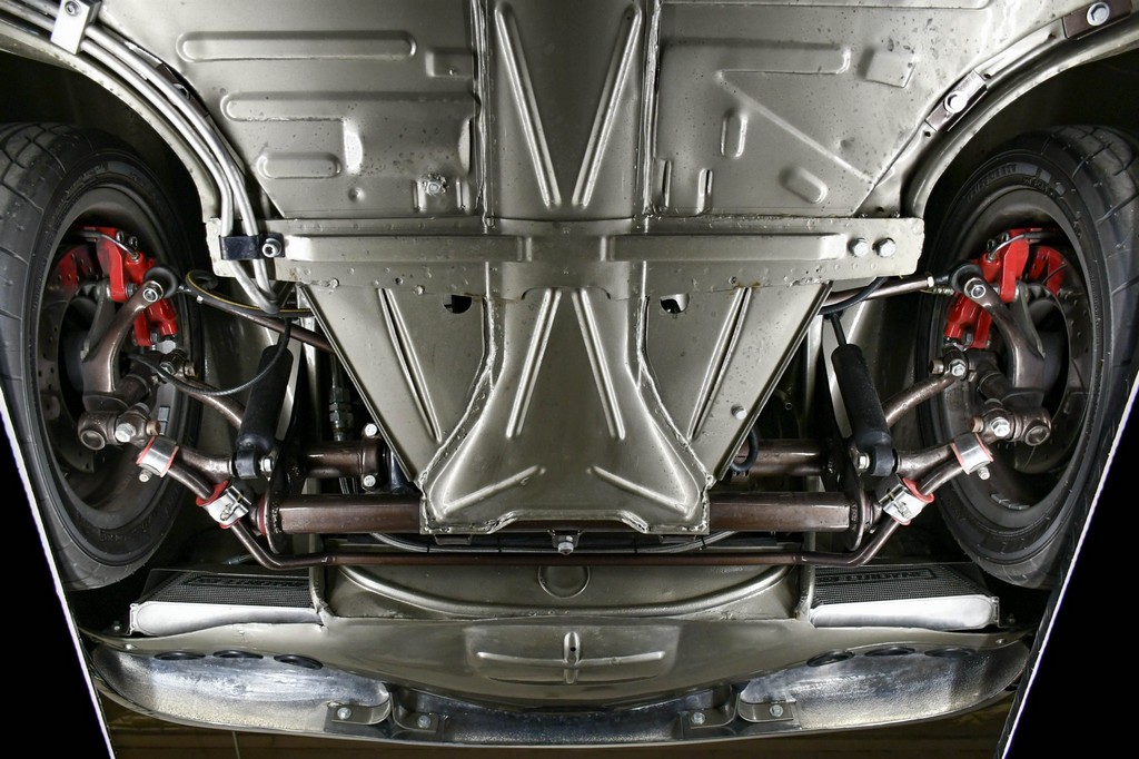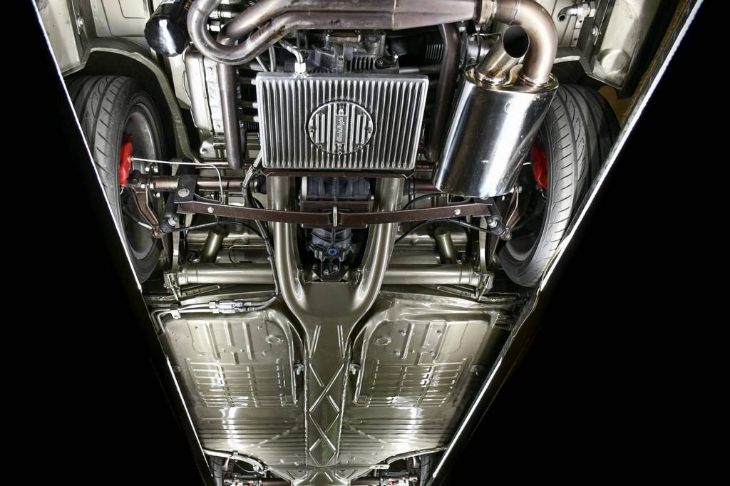 The underbody appears solid and well-maintained, with no known rust issues or structural concerns. Suspension components, lines, and mounts present in good condition, and the stainless exhaust system rounds out the performance upgrades underneath.