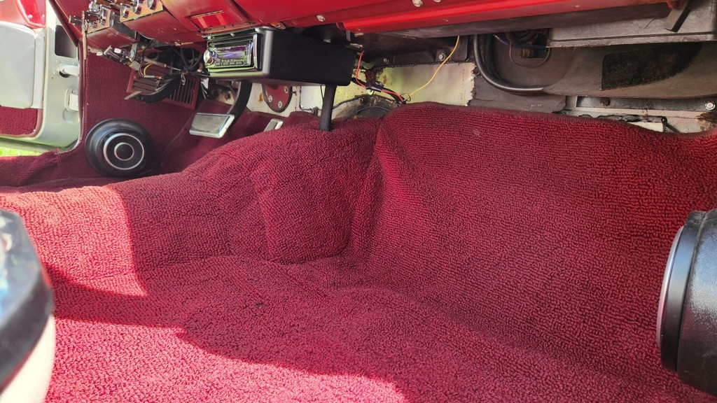 Red leather interior with matching trim.