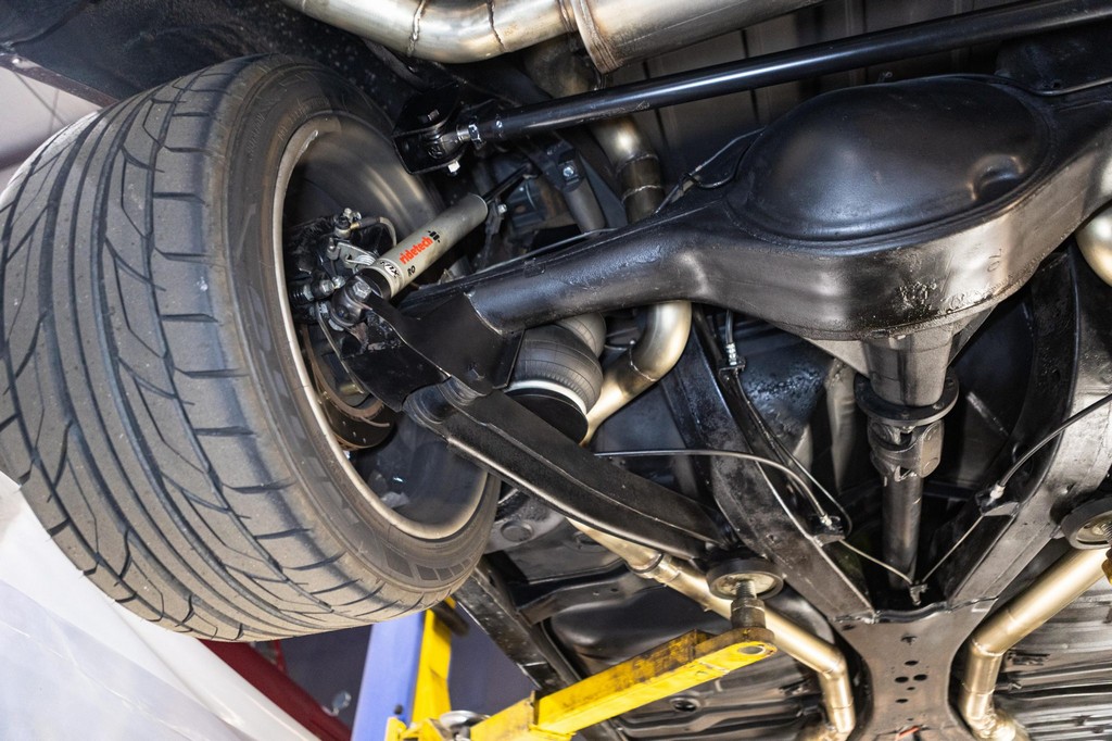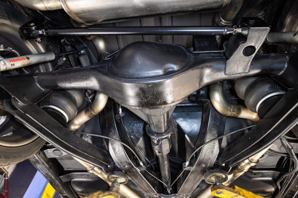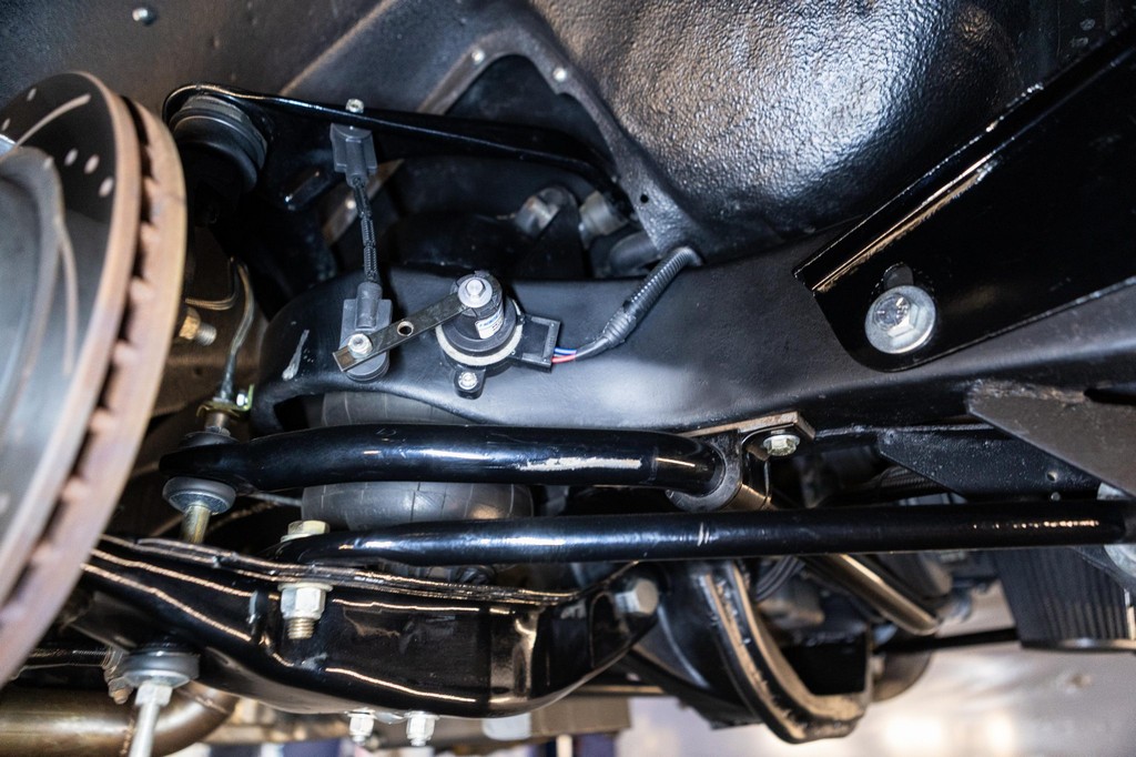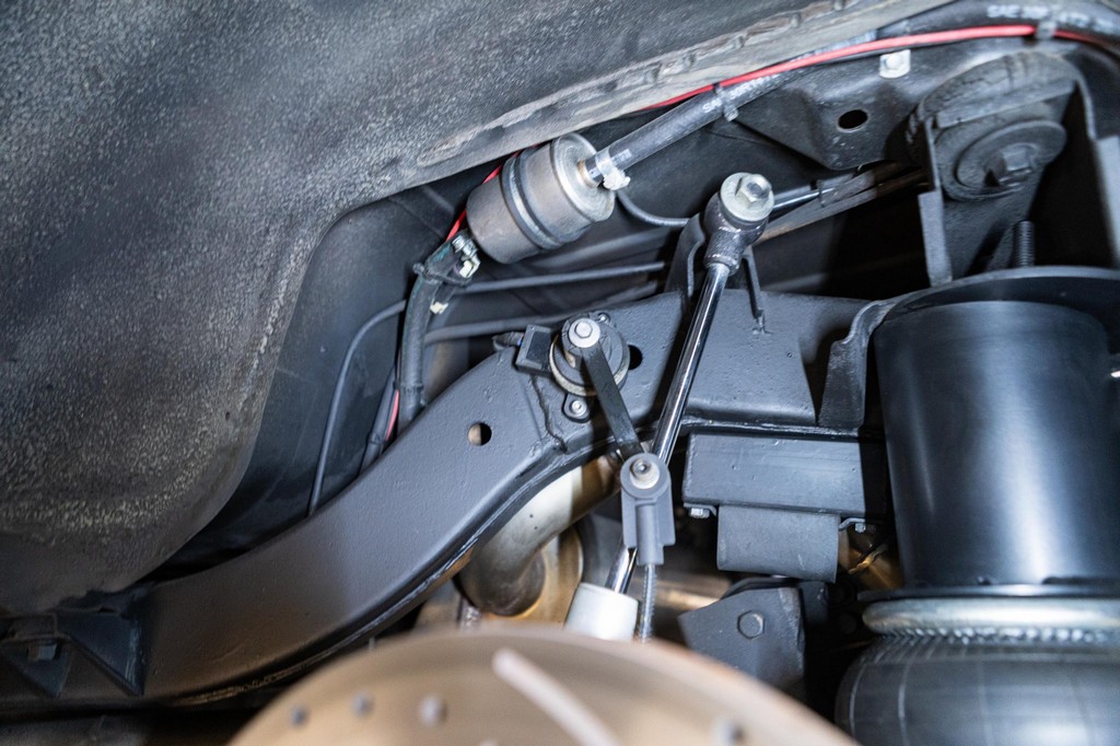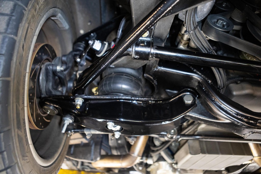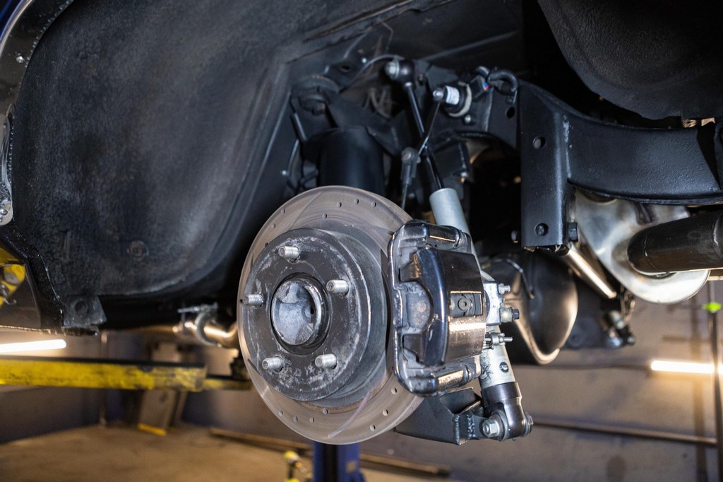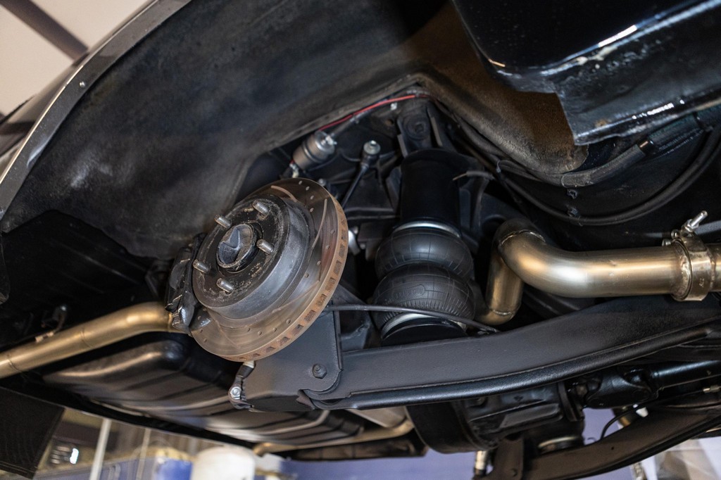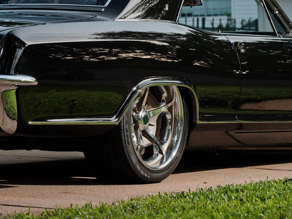 The Riviera rides on a fully upgraded chassis featuring RideTech air suspension, providing adjustable ride height and a comfortable, composed driving experience. A front sway bar and adjustable rear Panhard bar sharpen handling, while power-assisted four-wheel disc brakes with drilled and slotted rotors ensure confident stopping power.