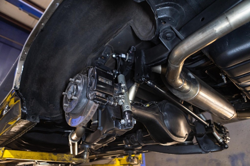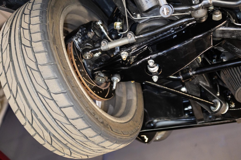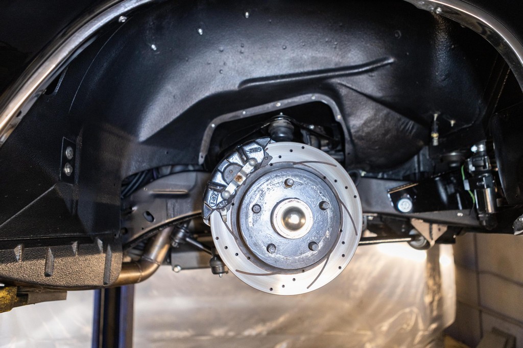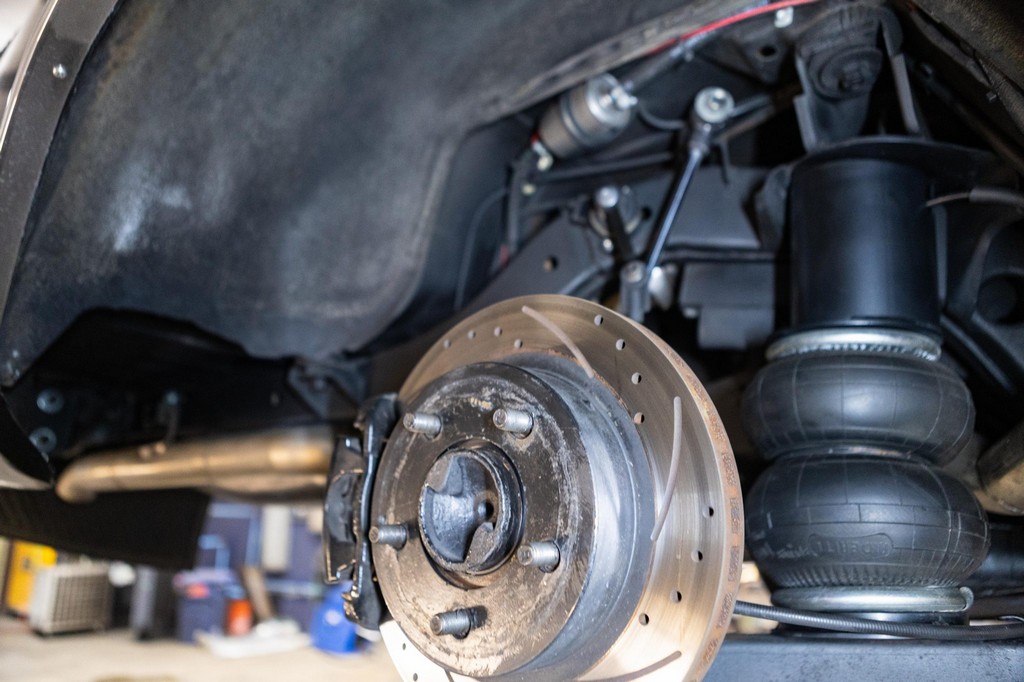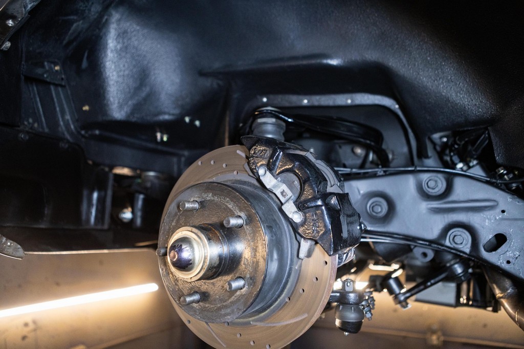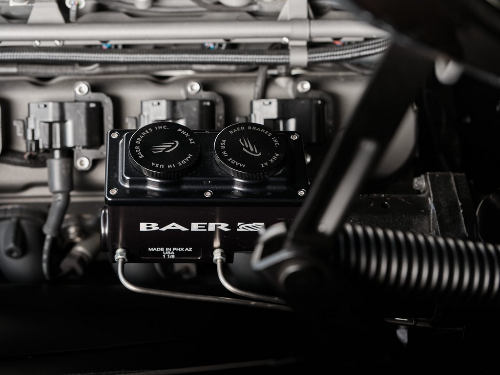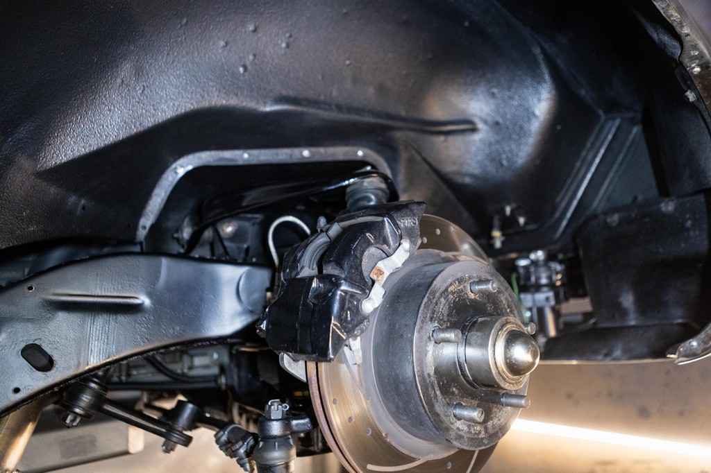 The Riviera rides on a fully upgraded chassis featuring RideTech air suspension, providing adjustable ride height and a comfortable, composed driving experience. A front sway bar and adjustable rear Panhard bar sharpen handling, while power-assisted four-wheel disc brakes with drilled and slotted rotors ensure confident stopping power.