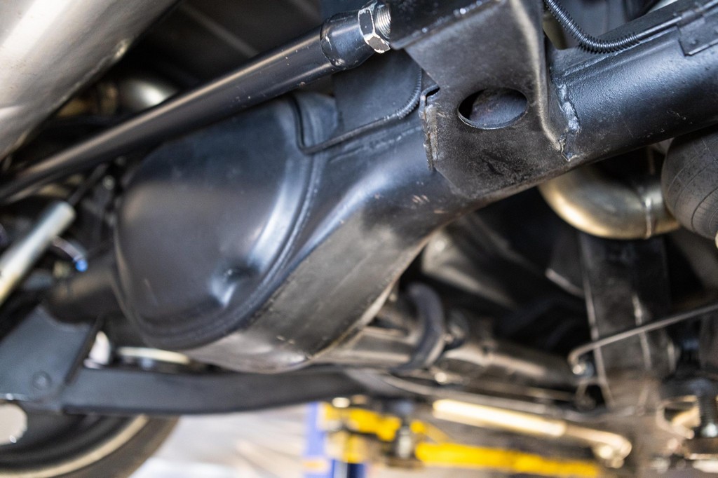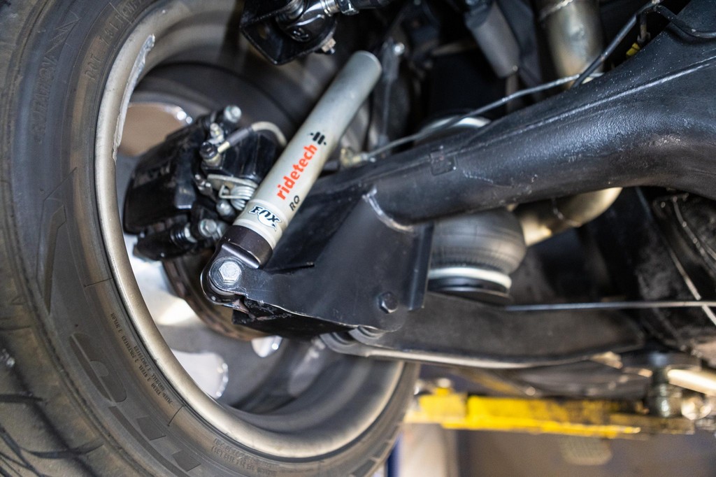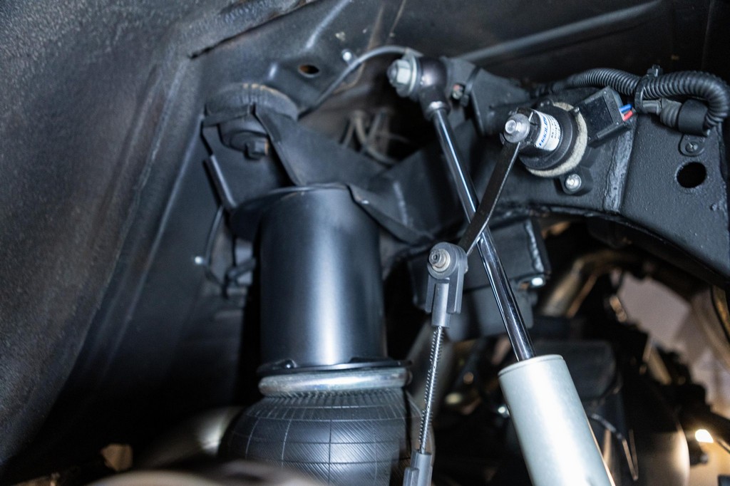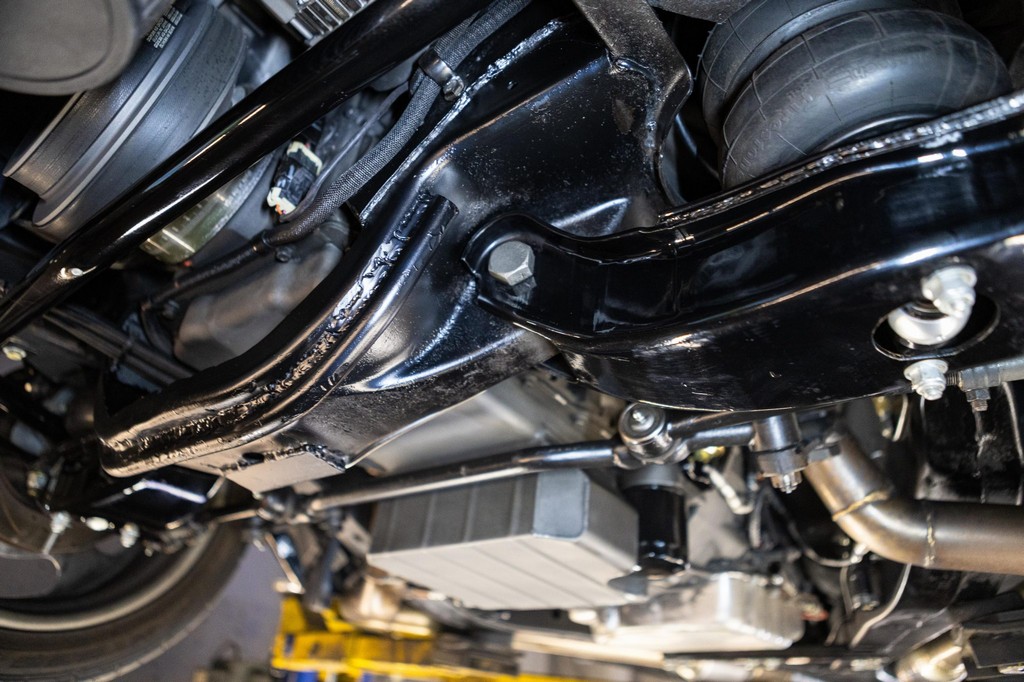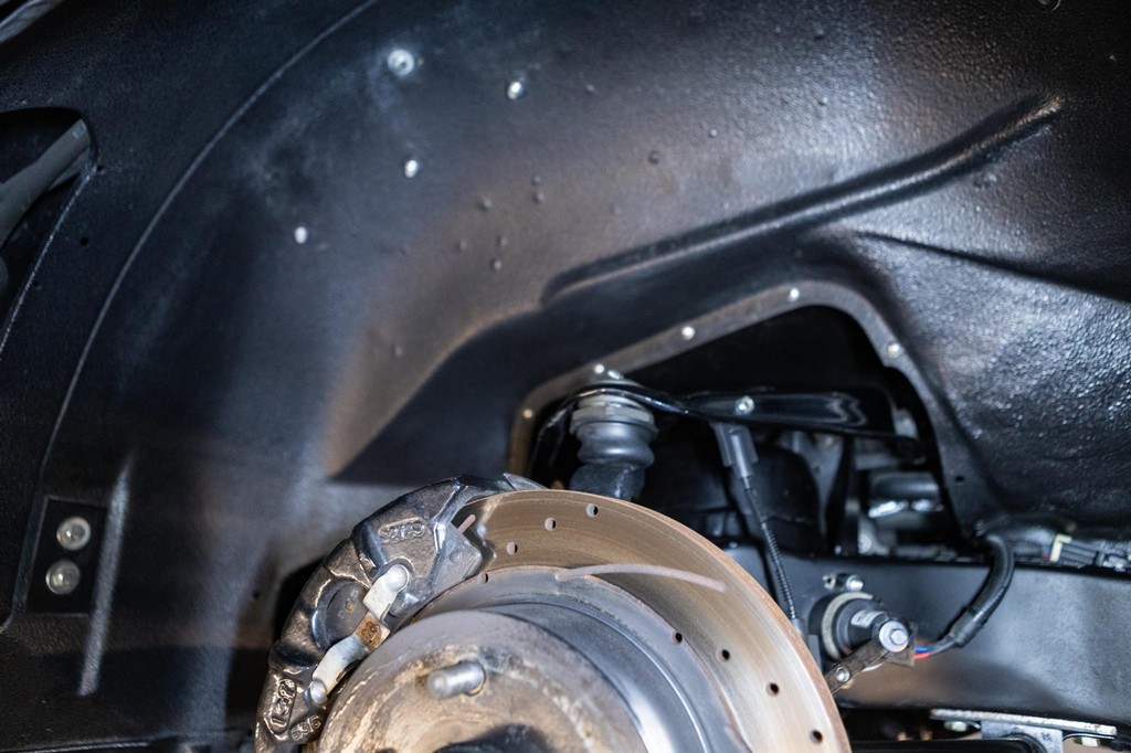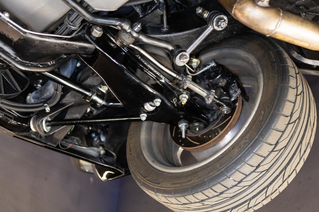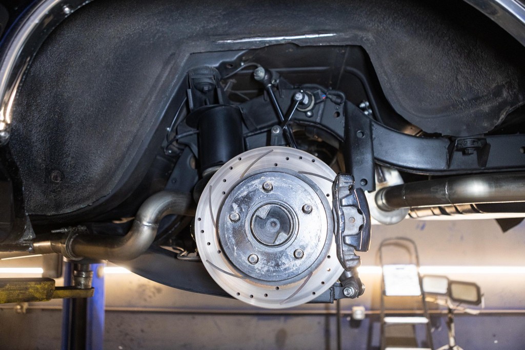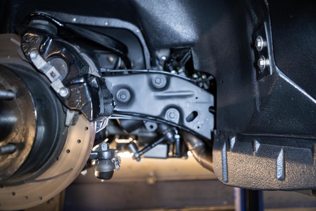 The Riviera rides on a fully upgraded chassis featuring RideTech air suspension, providing adjustable ride height and a comfortable, composed driving experience. A front sway bar and adjustable rear Panhard bar sharpen handling, while power-assisted four-wheel disc brakes with drilled and slotted rotors ensure confident stopping power.