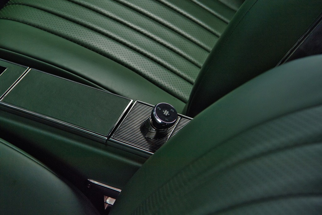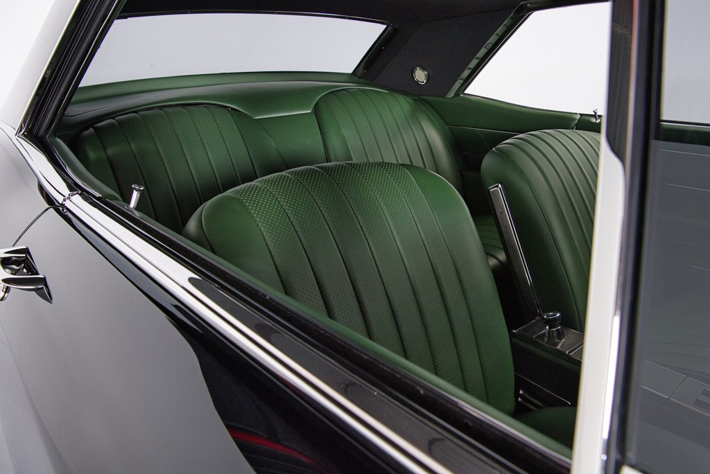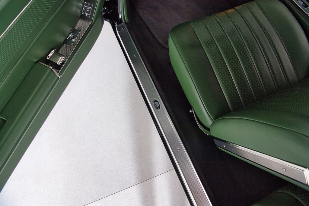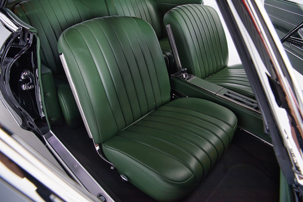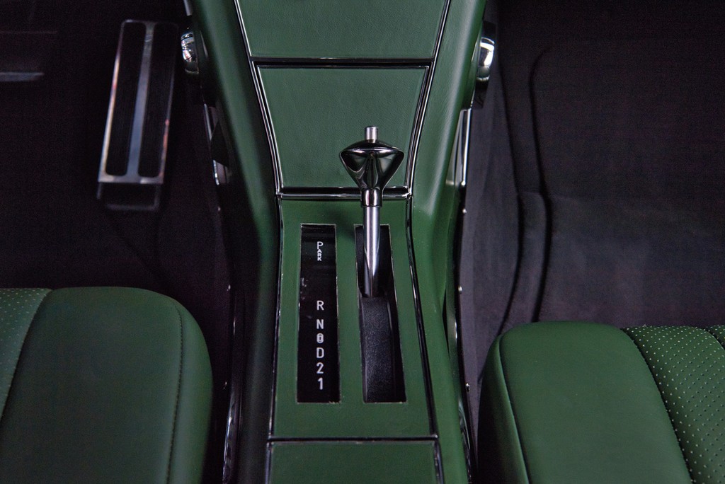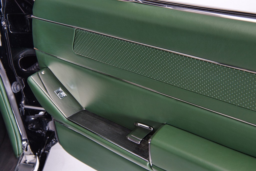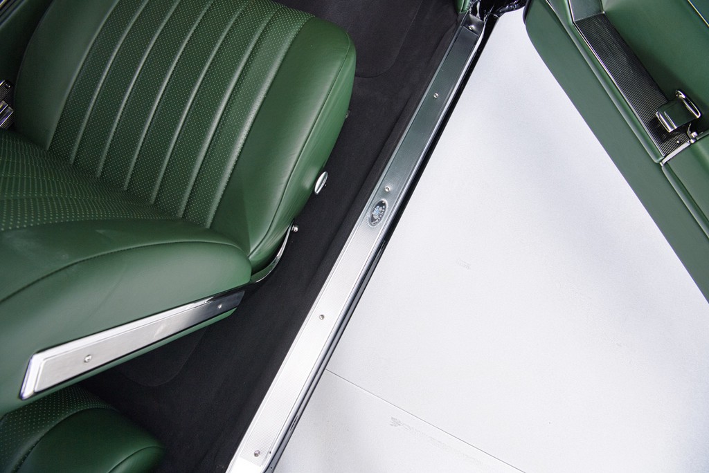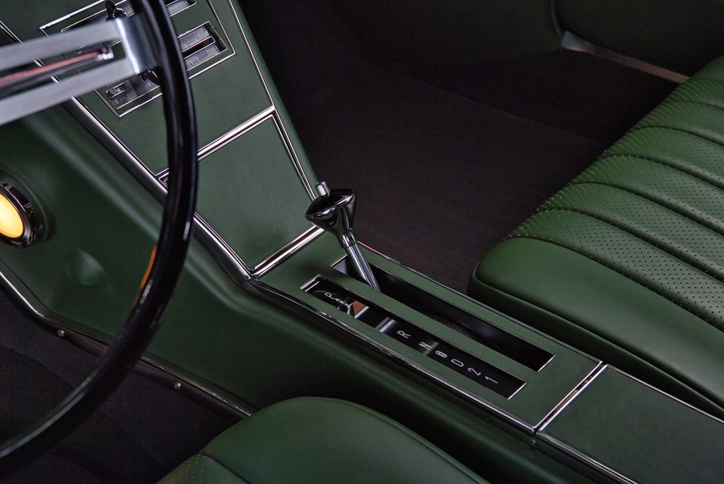 Inside, the cabin showcases Southern Vine Green Relicate Napali leather throughout, expertly crafted by Cato’s Custom Upholstery in Tucker, Georgia. Both front and rear power-adjustable bucket seats were rebuilt with new cushions, and the dashboard and door panels were trimmed to match.