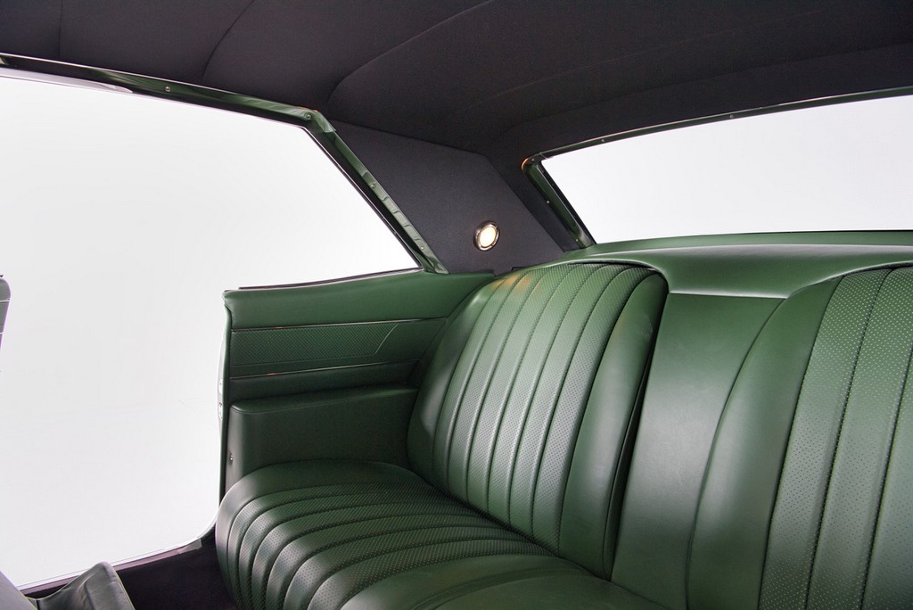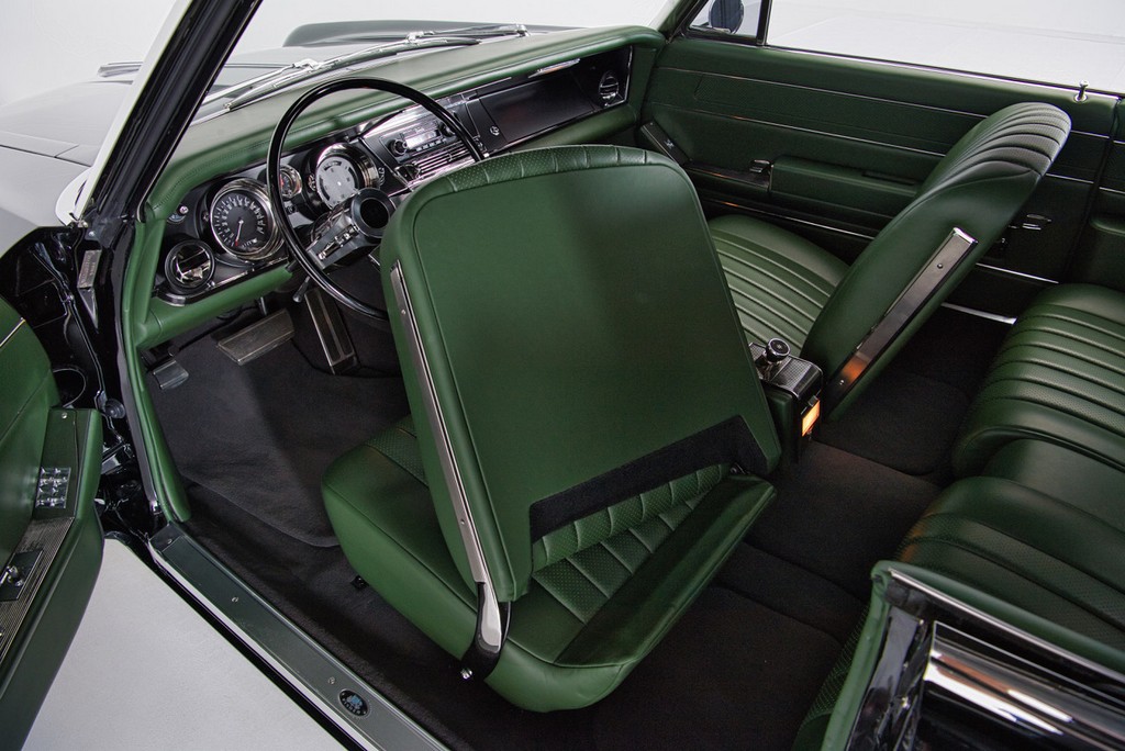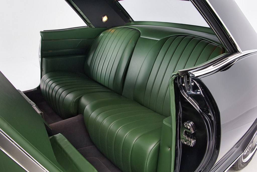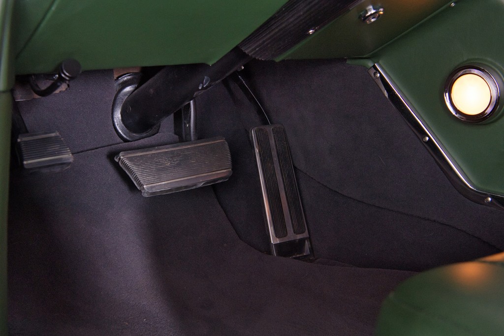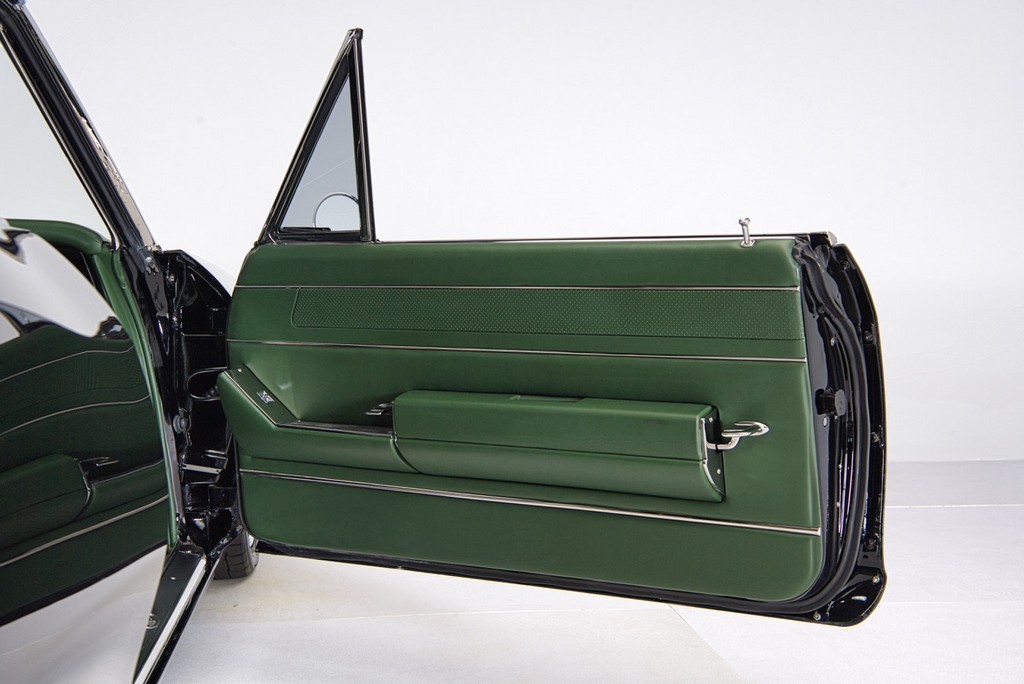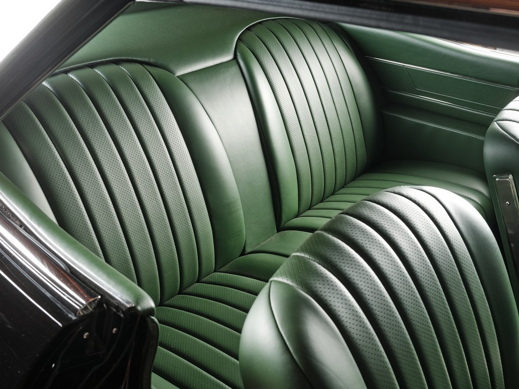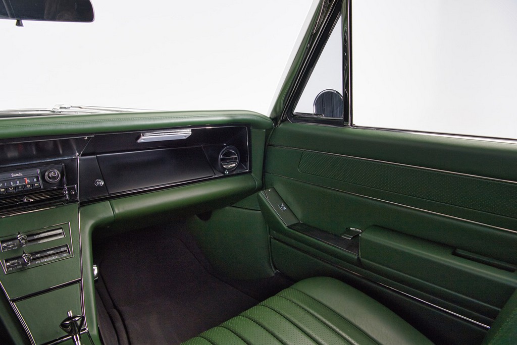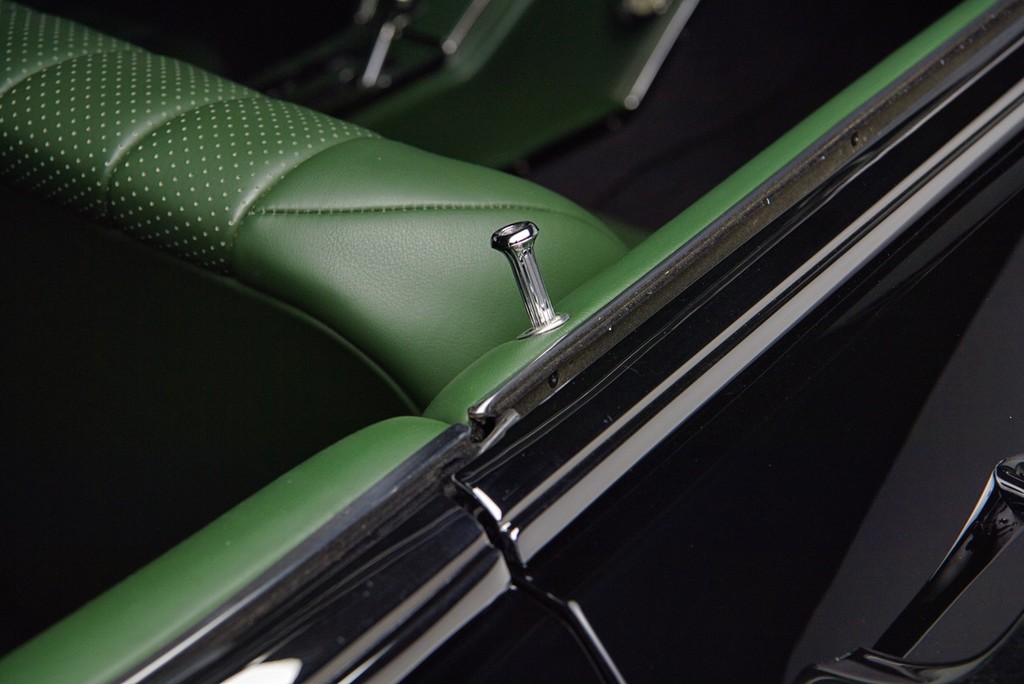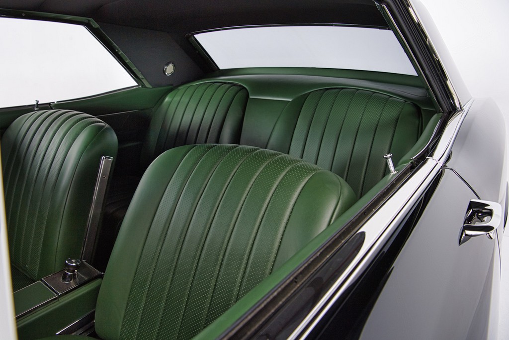 Inside, the cabin showcases Southern Vine Green Relicate Napali leather throughout, expertly crafted by Cato’s Custom Upholstery in Tucker, Georgia. Both front and rear power-adjustable bucket seats were rebuilt with new cushions, and the dashboard and door panels were trimmed to match.