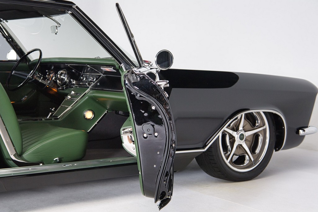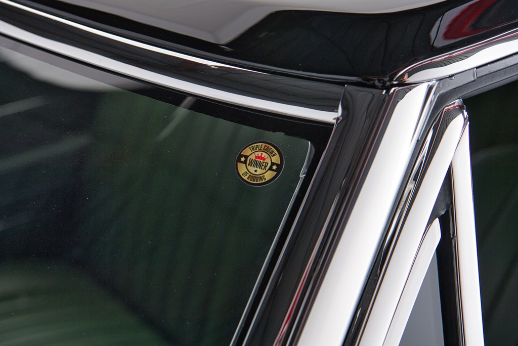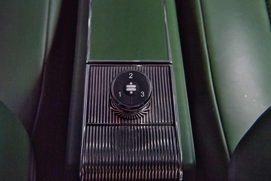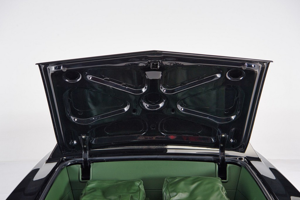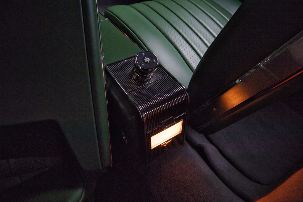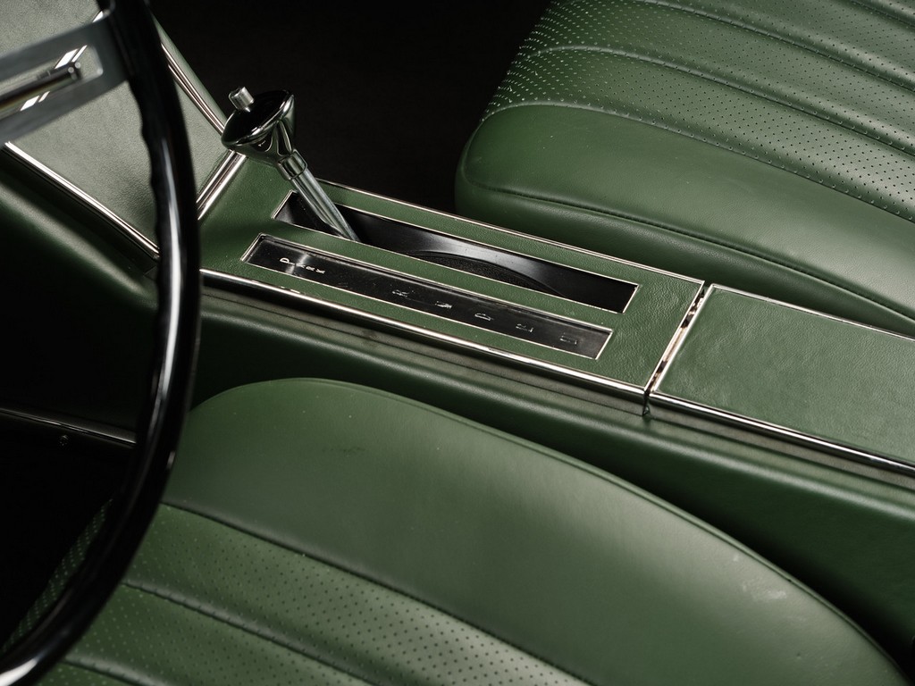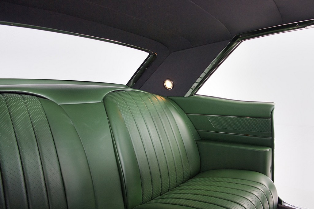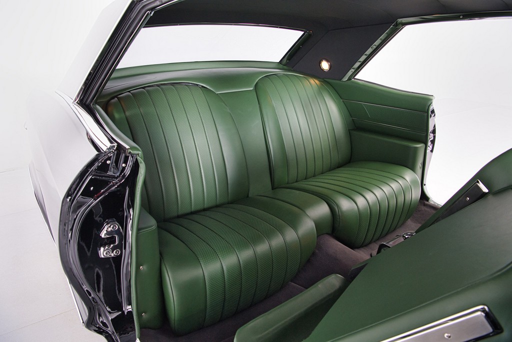 Inside, the cabin showcases Southern Vine Green Relicate Napali leather throughout, expertly crafted by Cato’s Custom Upholstery in Tucker, Georgia. Both front and rear power-adjustable bucket seats were rebuilt with new cushions, and the dashboard and door panels were trimmed to match.