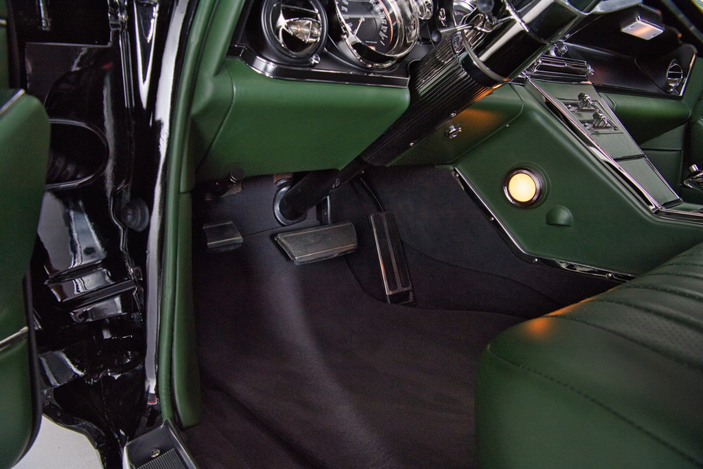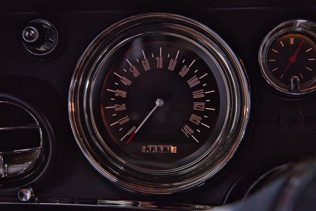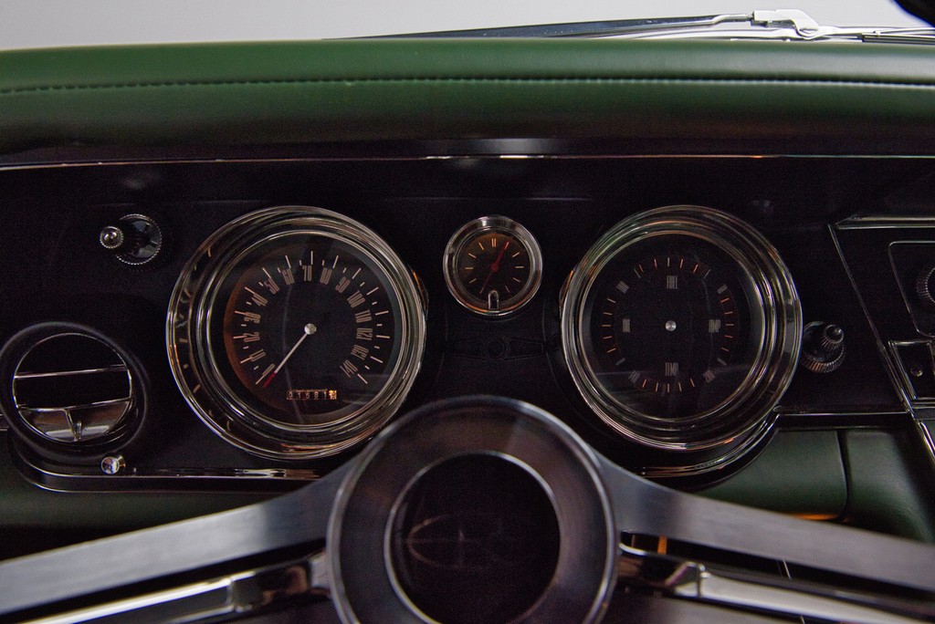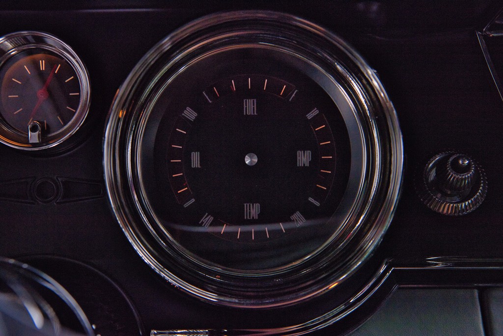 Custom Classic Instruments gauges (140-mph speedometer, oil, coolant, amperage, and fuel)