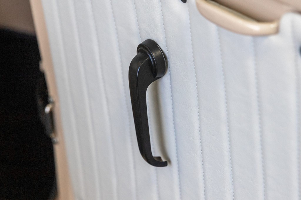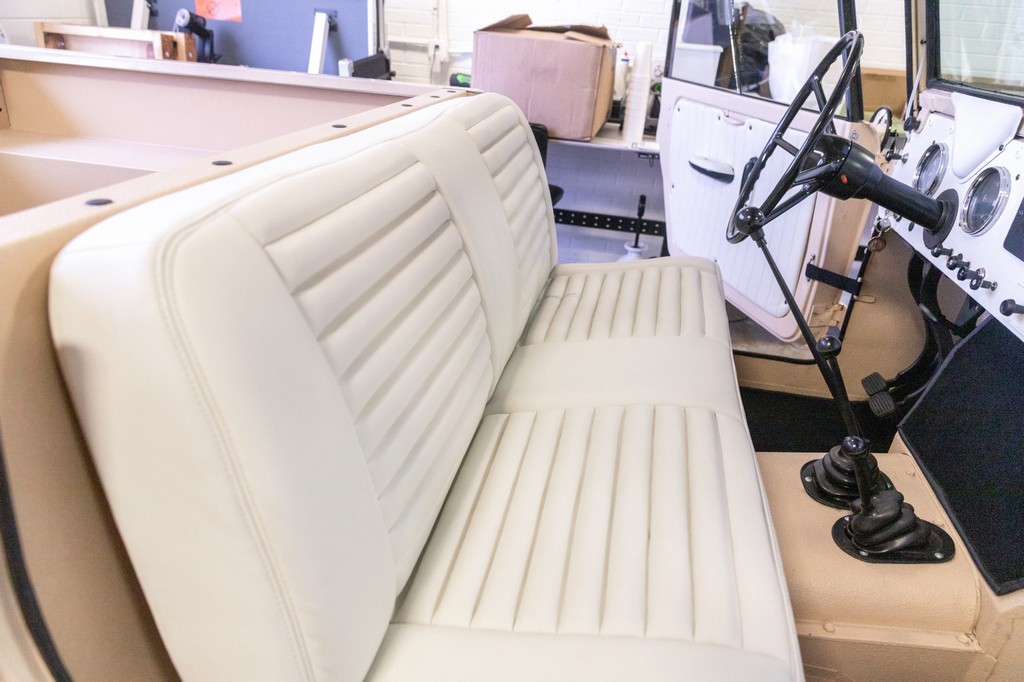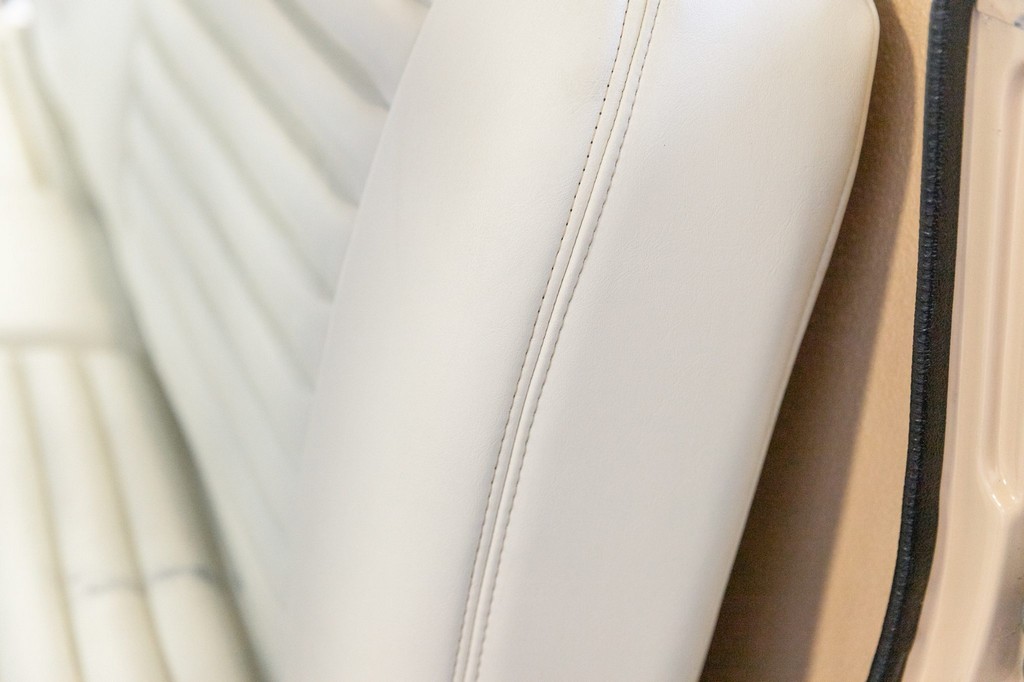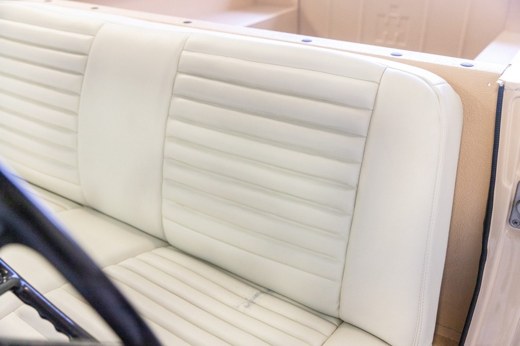 Bench seat and door panels upholstered in pleated white vinyl