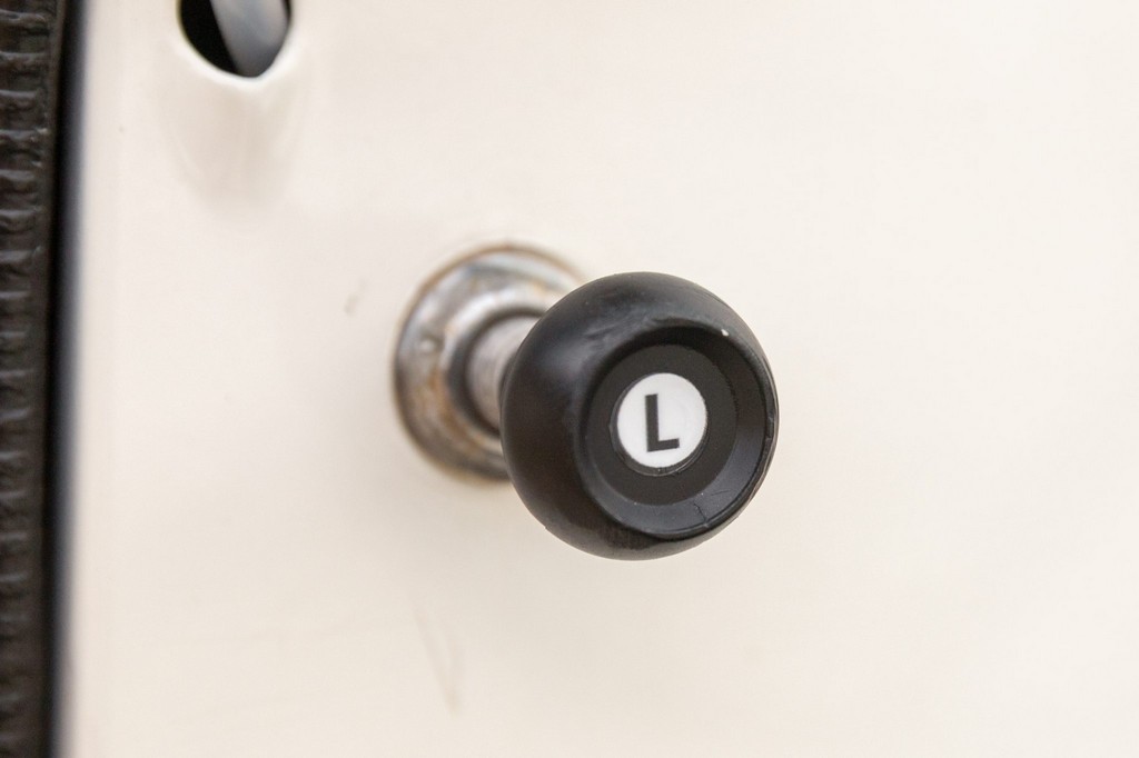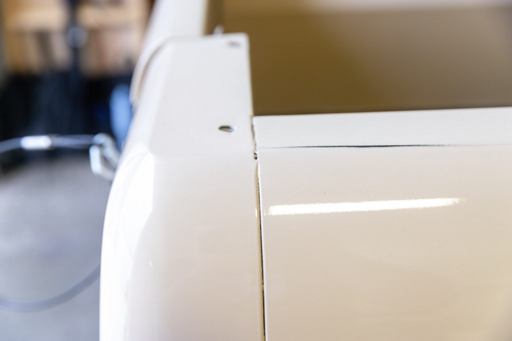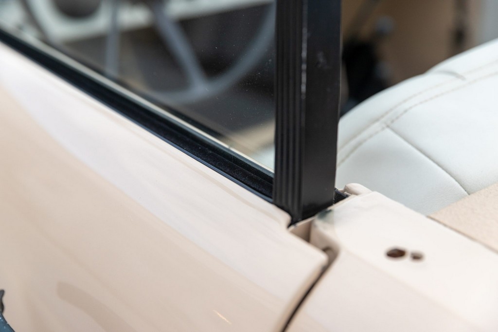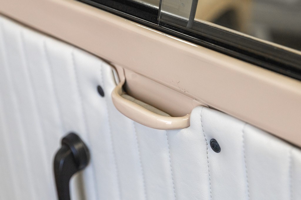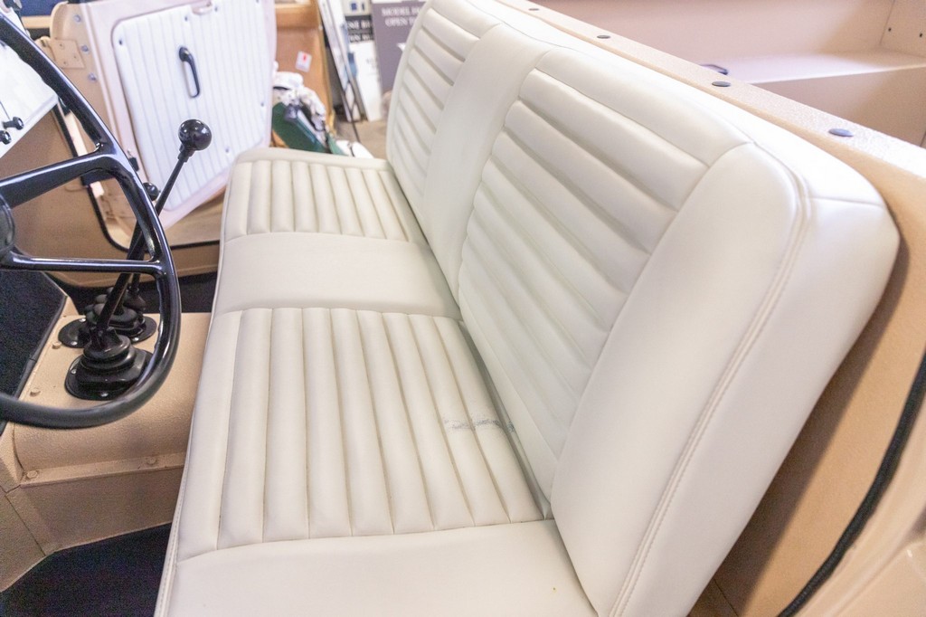Bench seat and door panels upholstered in pleated white vinyl