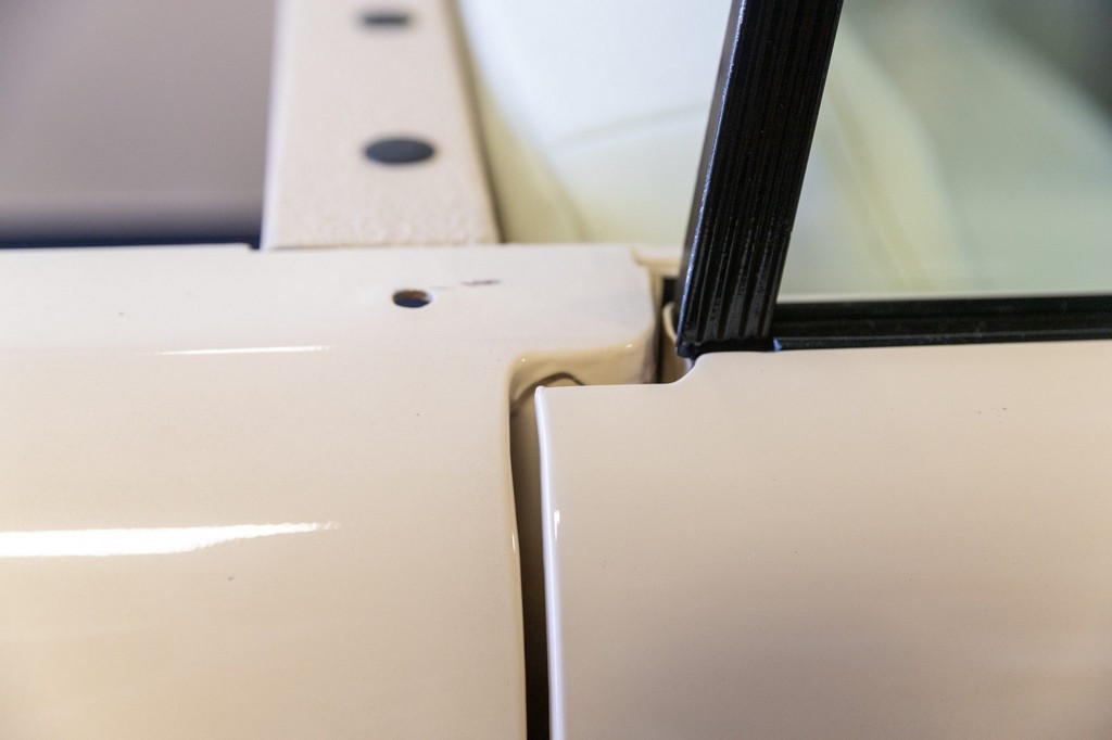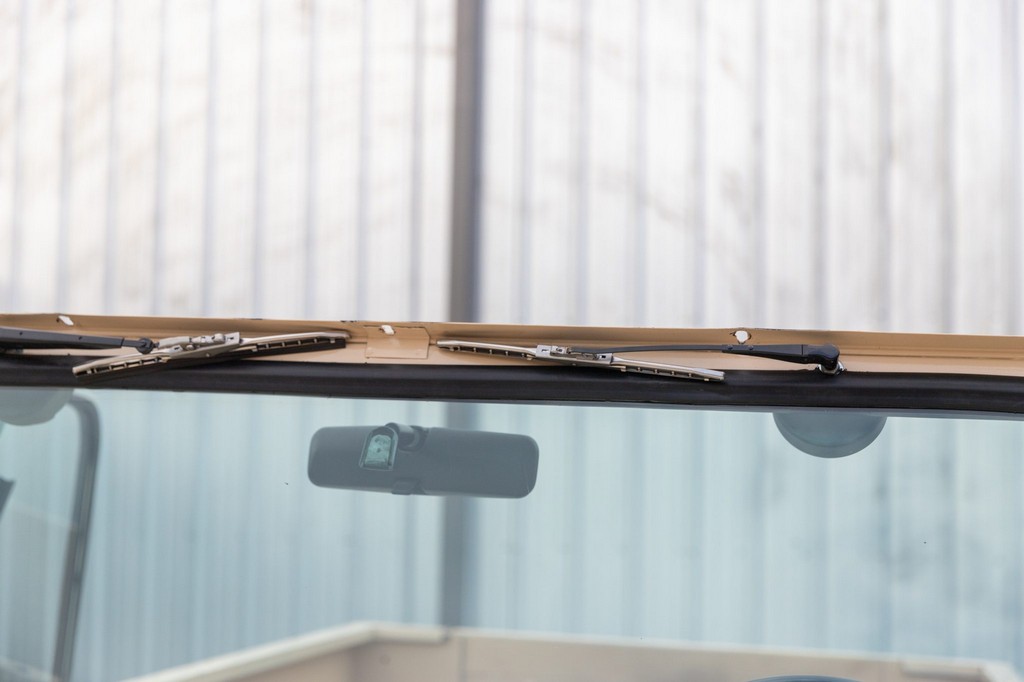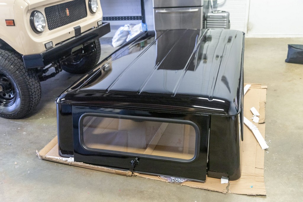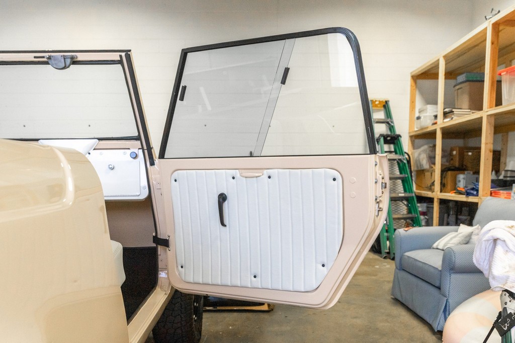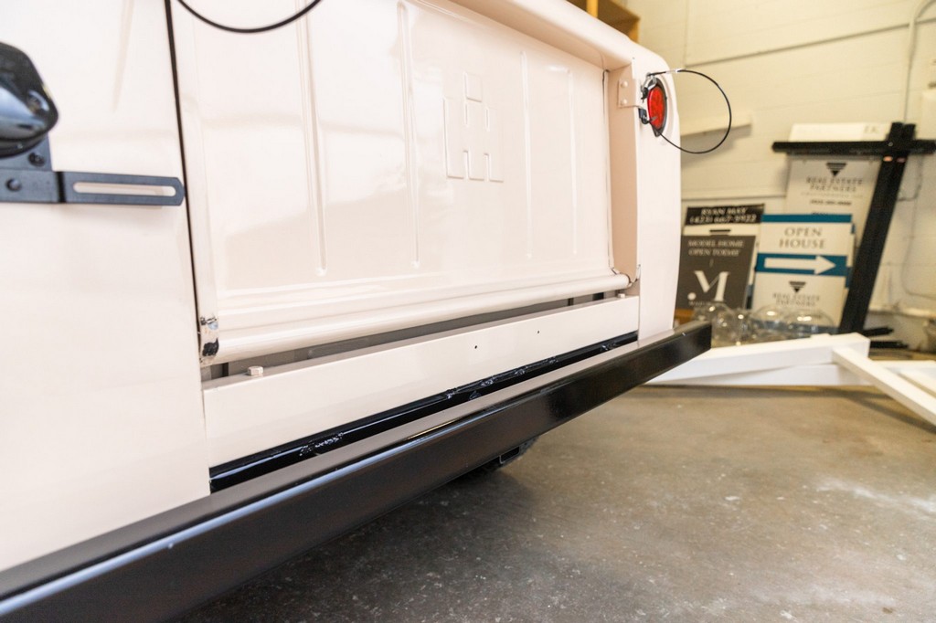 Sliding side windows and “IH” logo tailgate, signature Scout 80 details