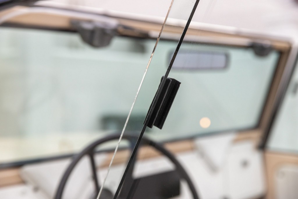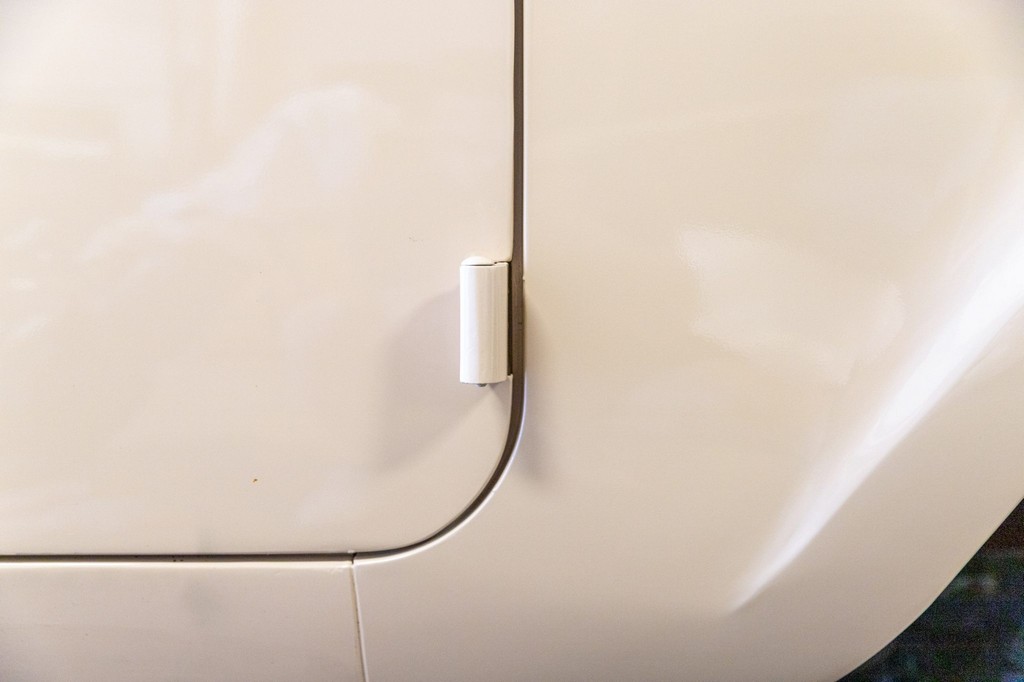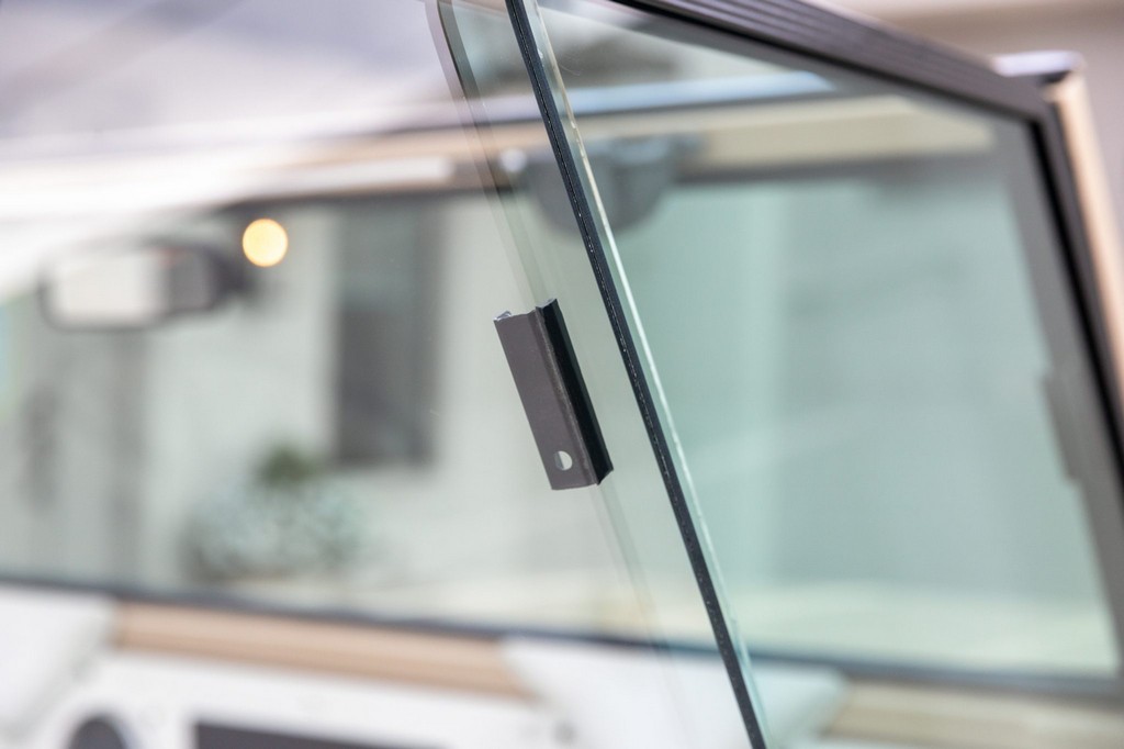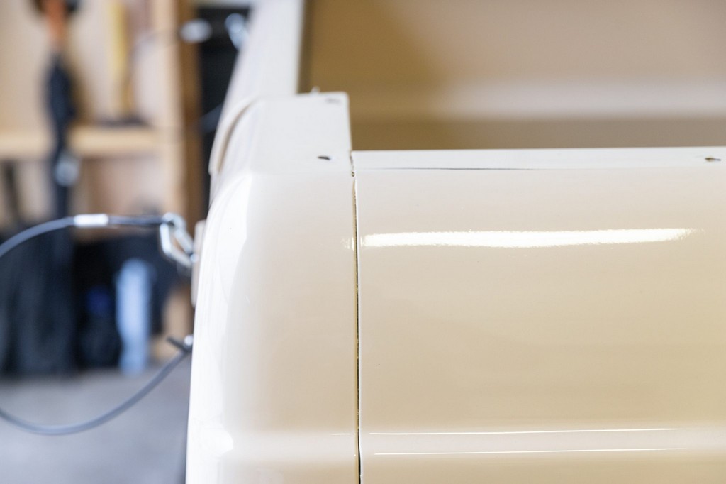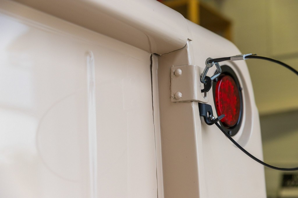 Sliding side windows and “IH” logo tailgate, signature Scout 80 details