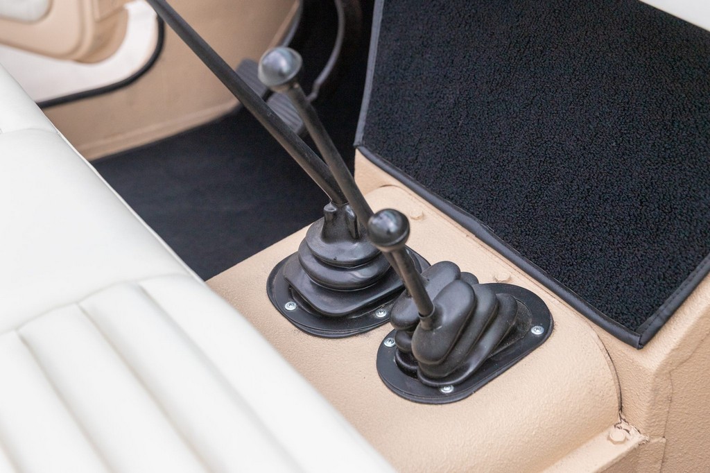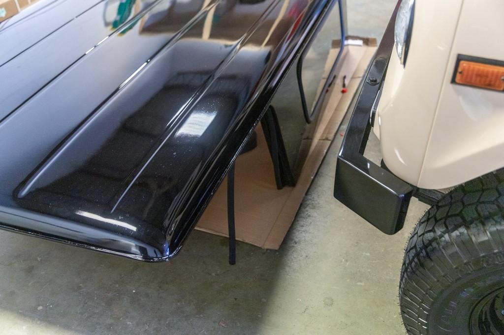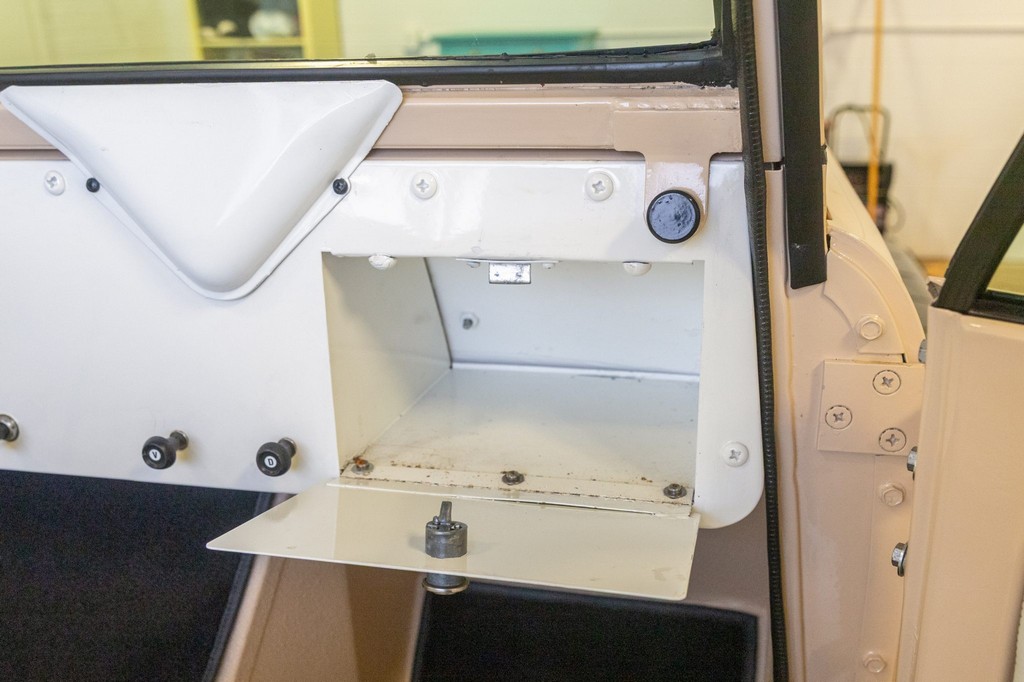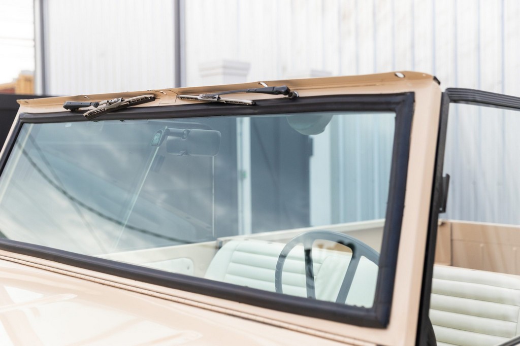 Exterior: Refinished in beige with a contrasting black hardtop; presents well with vintage utility charm