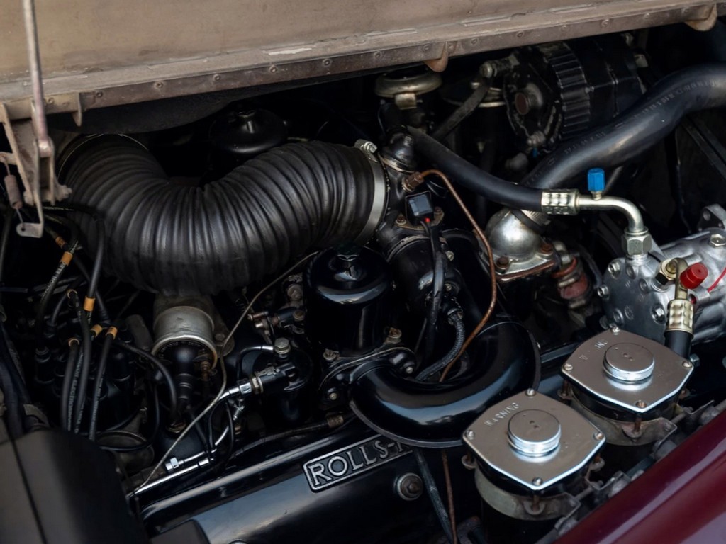 Power comes from a 6,230cc OHV V8, significantly improved over earlier versions through a series of thoughtful engineering changes. The Silver Cloud III shed approximately 220 pounds compared with the Silver Cloud II, and its redesigned induction system gained 2-inch carburetors—larger than the earlier 1 3/4-inch units—alongside a higher 9:1 compression ratio for premium fuel, with an 8:1 option retained for lower-octane markets. The engine also received a nitride-hardened crankshaft, addressing durability concerns from earlier V8s and enhancing long-term reliability.