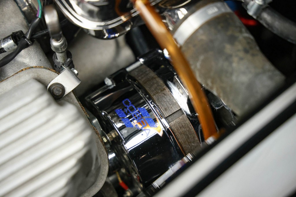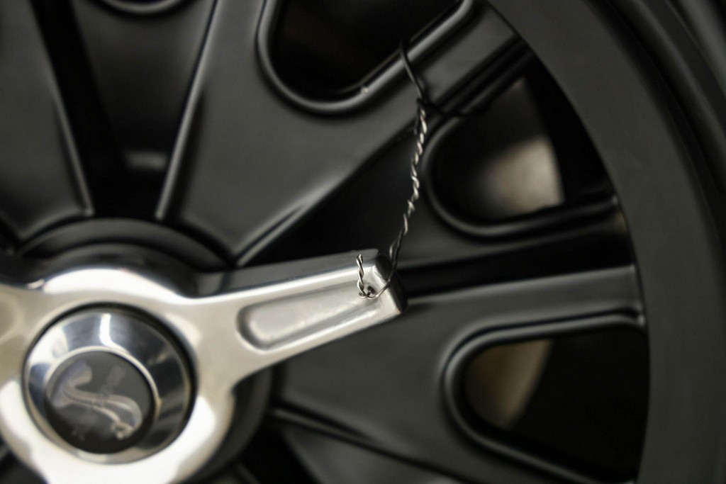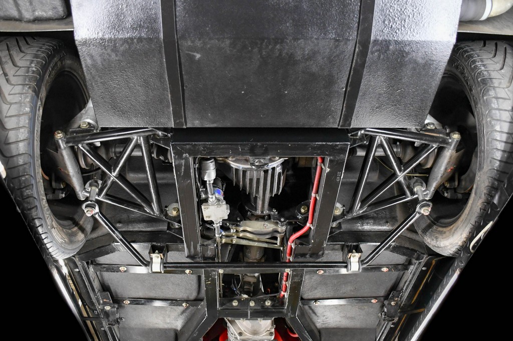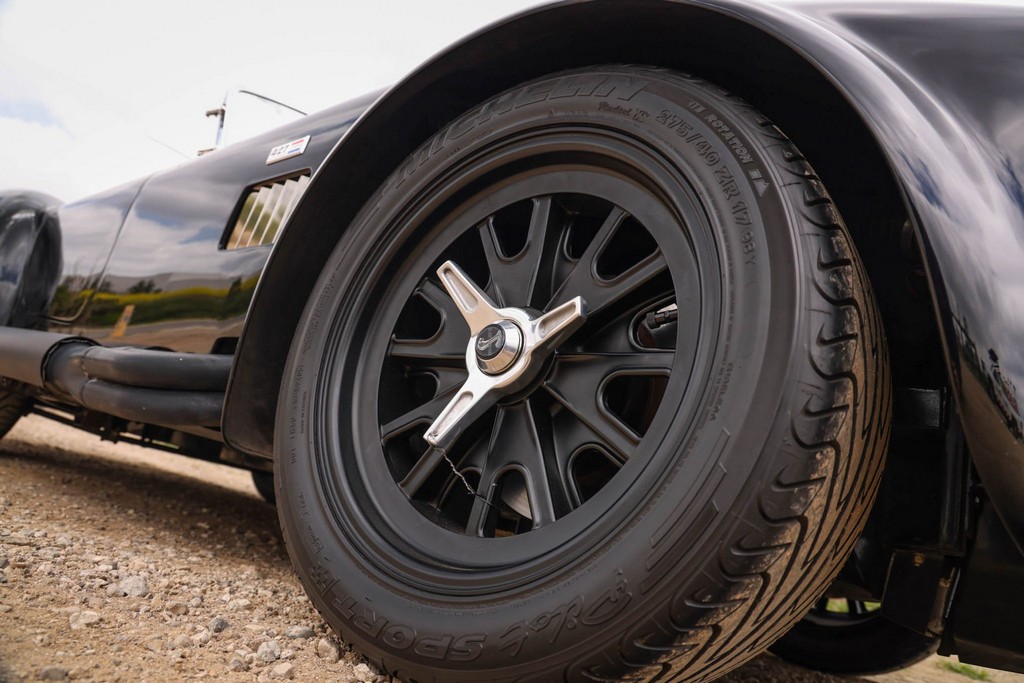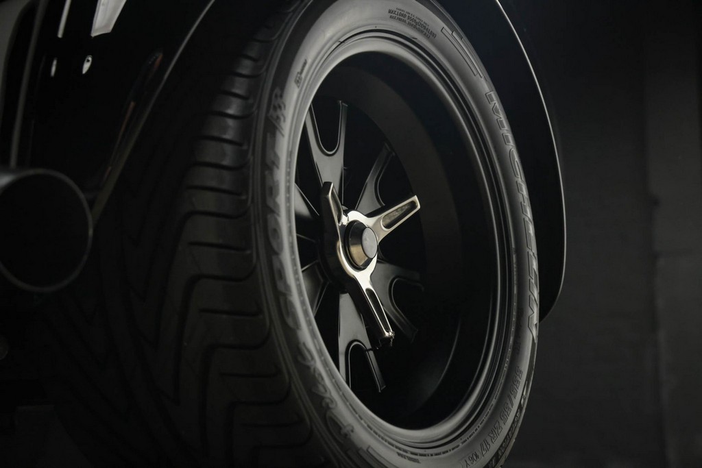 This roadster rides on 17″ Halibrand-style wheels wrapped in Michelin Pilot Sport rubber, with 275/40 fronts and massive 335/35 rears, delivering period-correct muscle proportions and exceptional grip.
