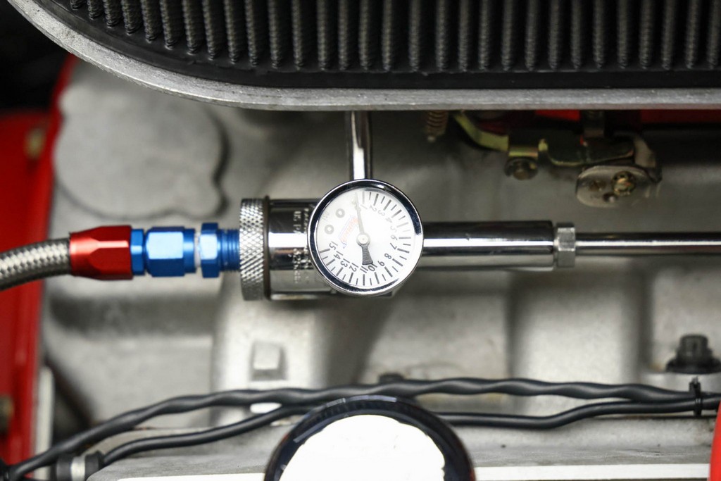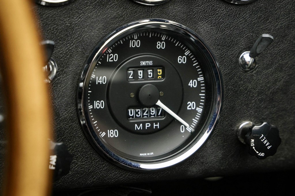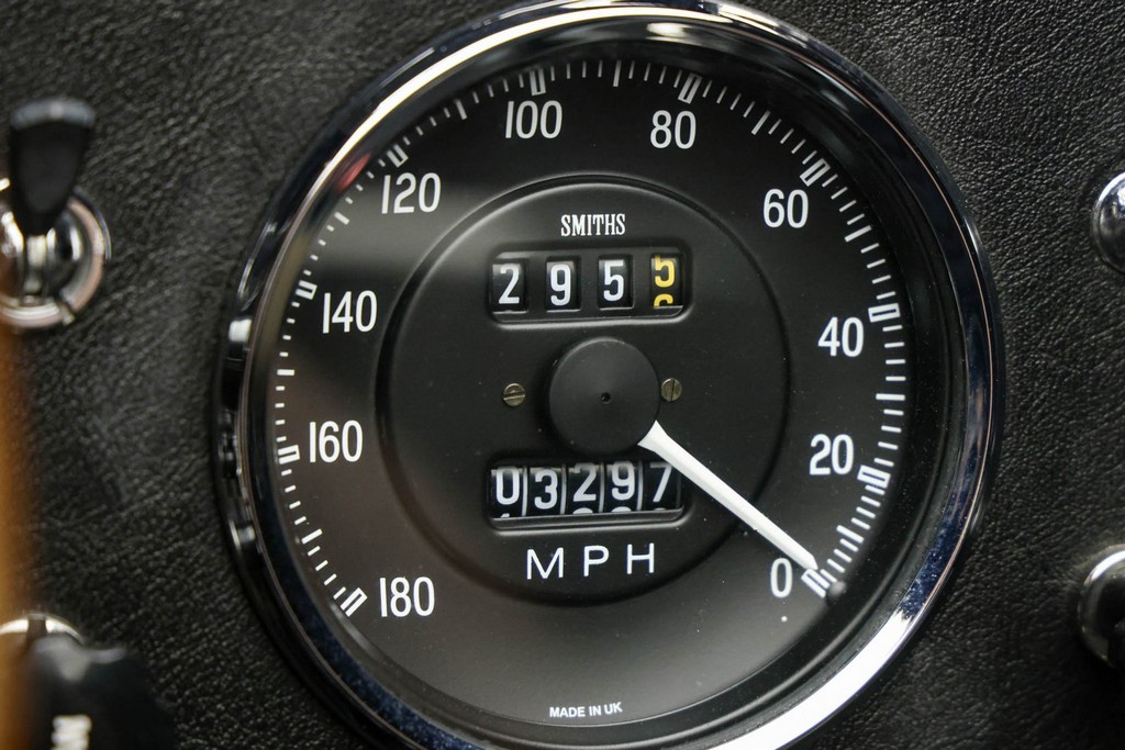Smiths instrumentation with a reverse-sweep 180-mph speedometer and 8k-rpm tach