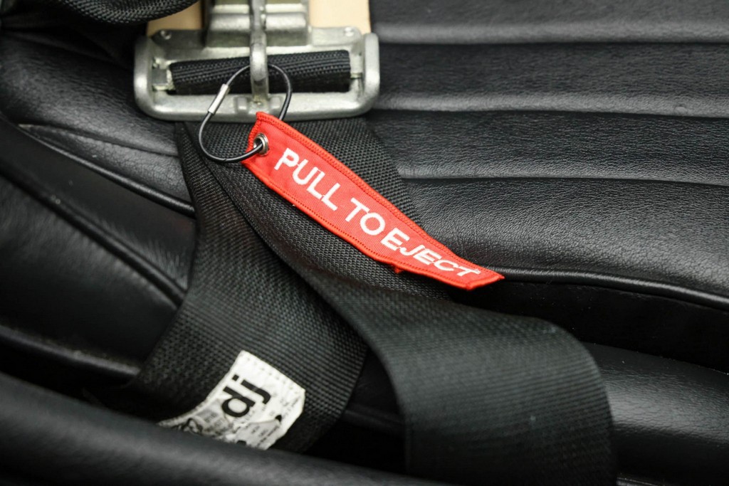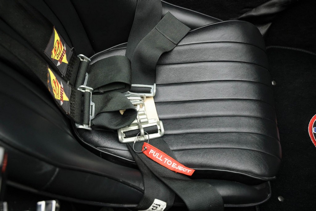 The cabin is purpose-built yet refined, with black leather bucket seats equipped with DJ Safety harnesses for both occupants. Additional features include:
