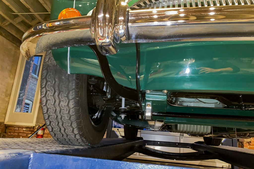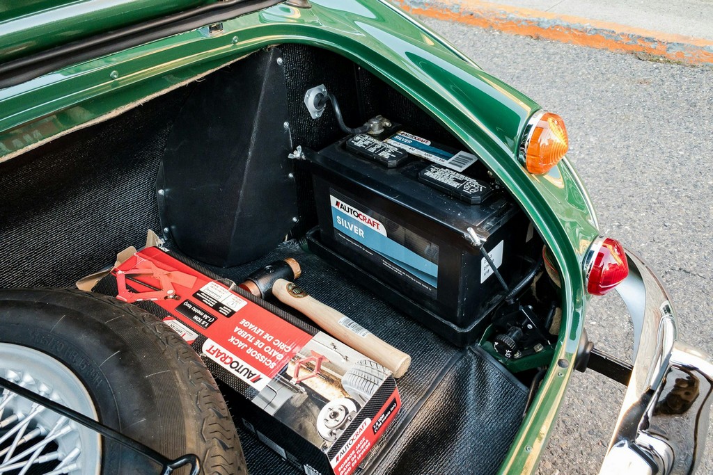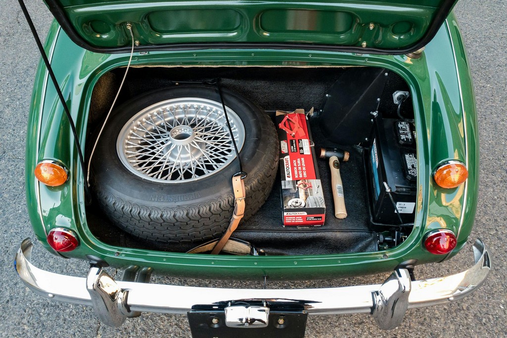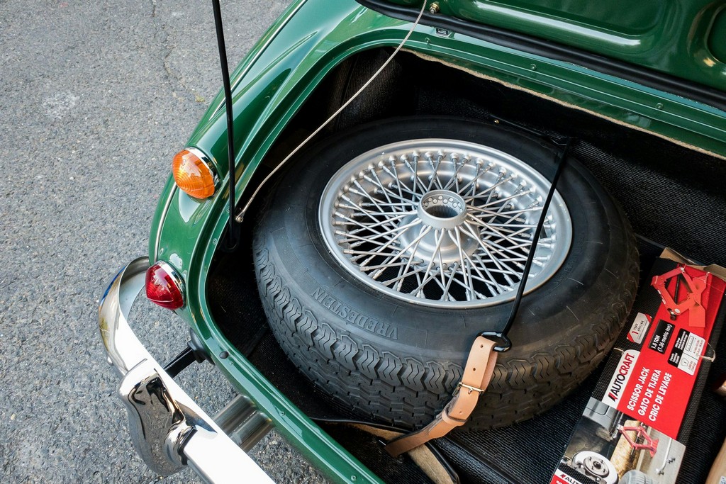 The trunk area is equally well finished, featuring a painted spare wheel rather than a chrome unit, along with a correct hammer. No tool kit or jack is included, but the area itself is clean and properly restored.