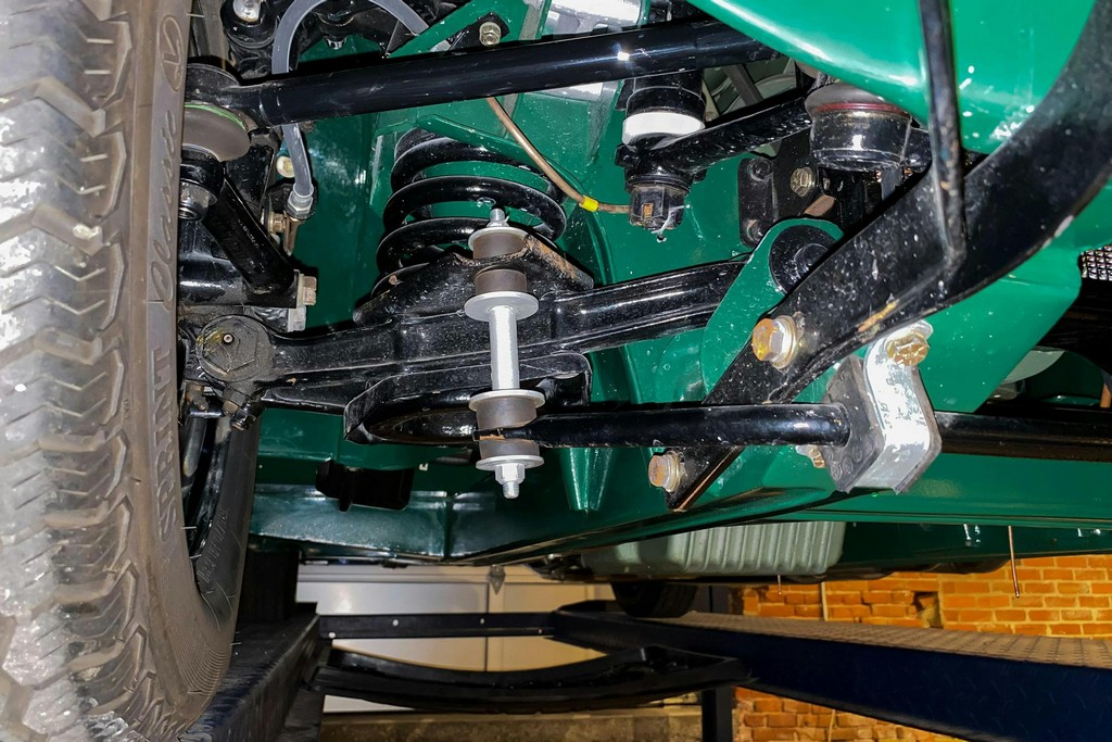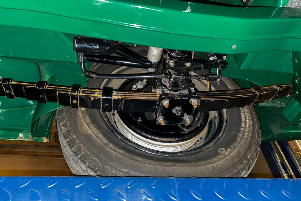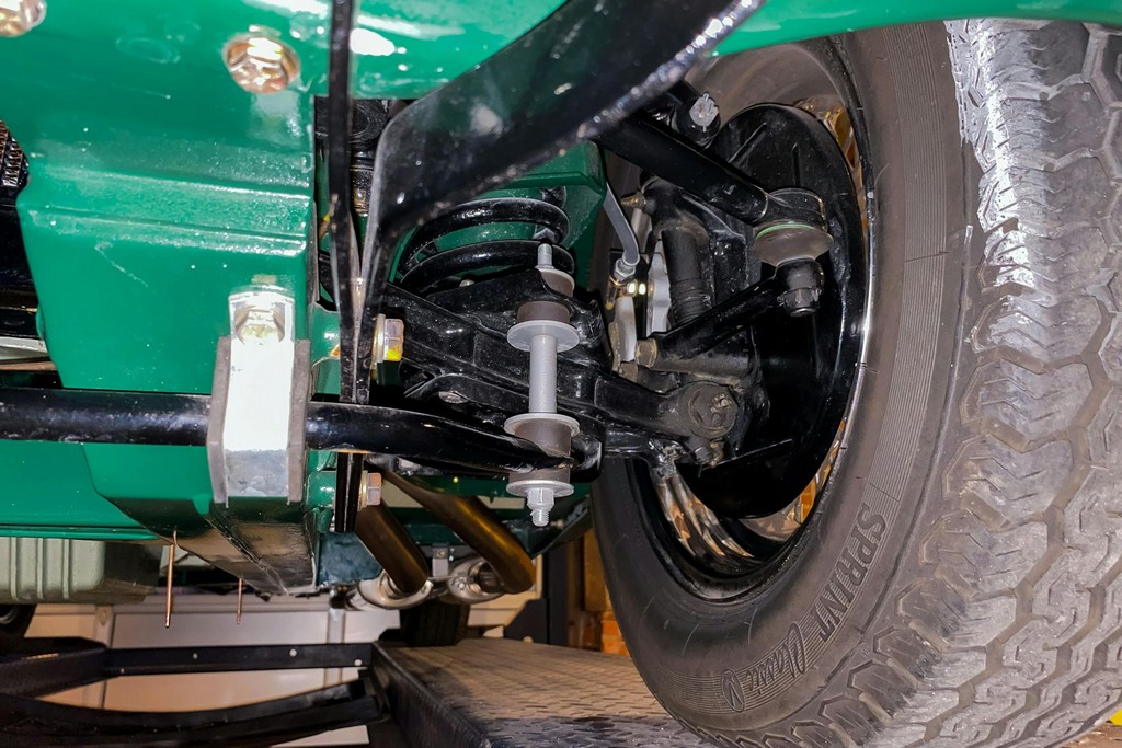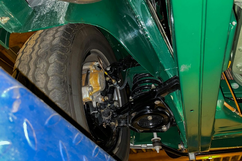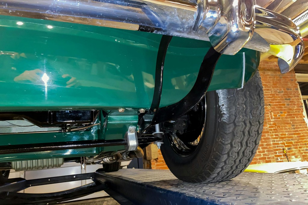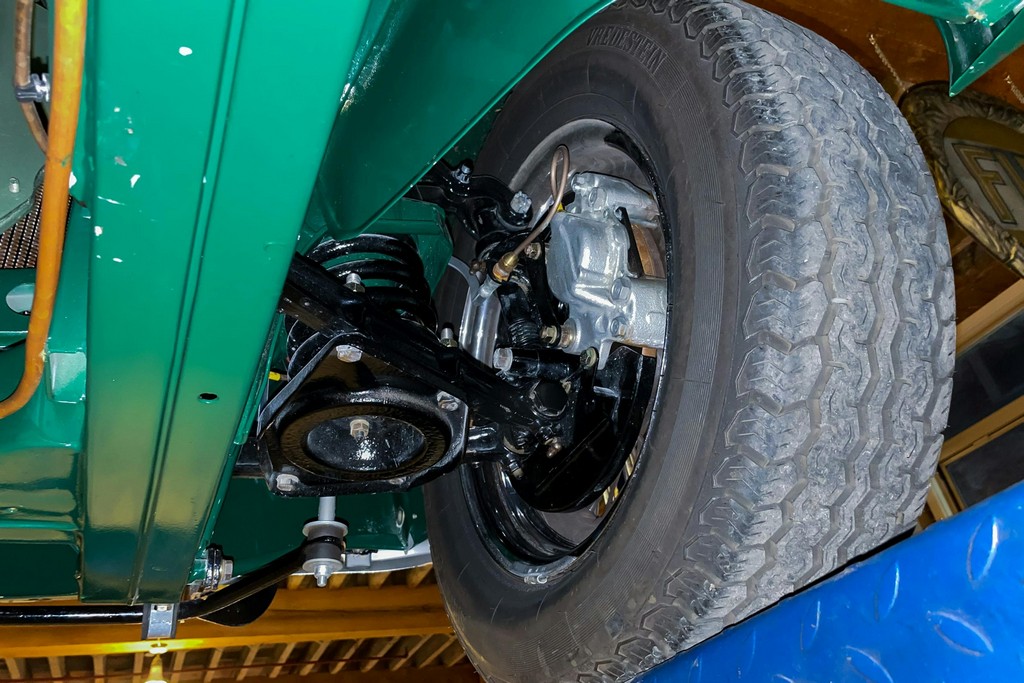 The original 4-speed manual transmission with overdrive operates smoothly, with no grinding and proper overdrive engagement in third and fourth gears. The braking system remains stock in configuration and performs as intended, with strong, straight, and confident stopping. Suspension components function as new.