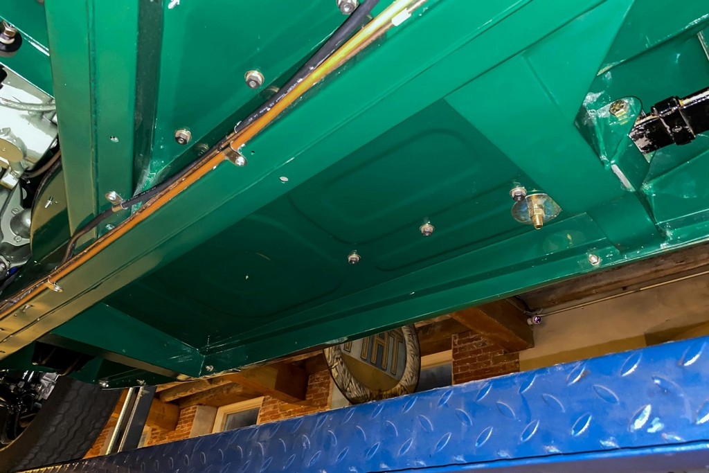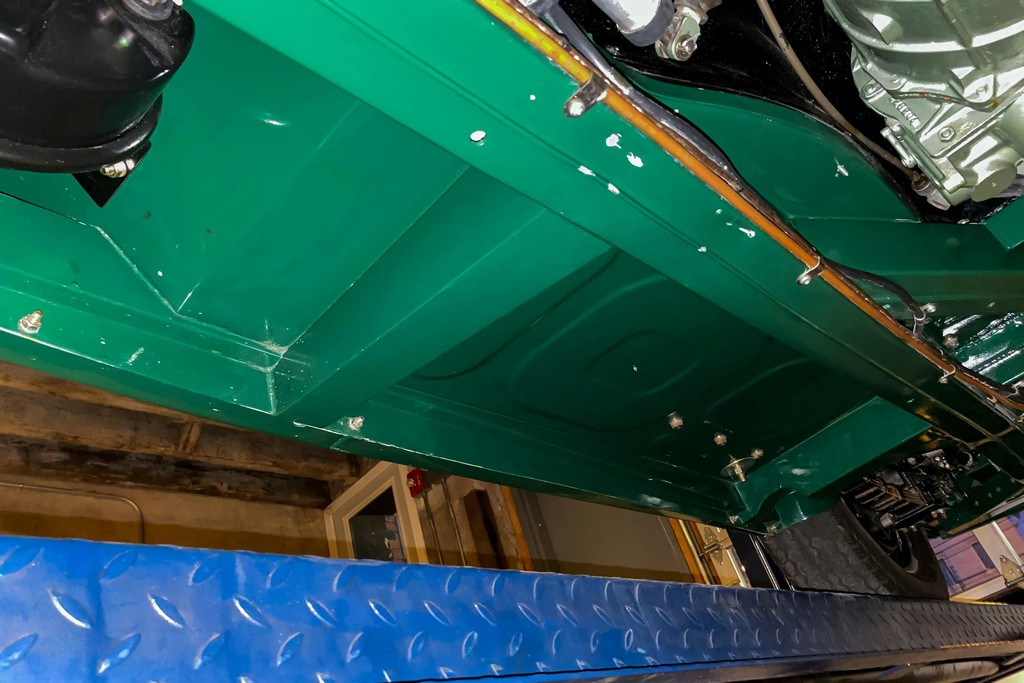 The body and paint are consistently show-quality throughout. Panel fitment and shut lines are excellent, the body is straight, and the overall presentation is exceptionally clean with no notable structural or cosmetic concerns. The glass, though replaced during restoration, is clear and free from defects, and all rubber trim was renewed and remains supple and properly fitted.