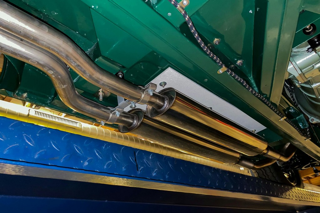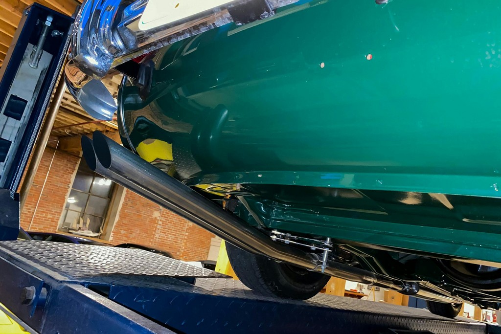The engine bay reflects the quality of a freshly restored example with minimal use. The engine was rebuilt as needed during restoration and starts easily, runs strong, builds solid oil pressure, and maintains proper operating temperature. Upgrades include a triple-core radiator, high-torque starter, high-capacity oil pan, and stainless steel exhaust system. The presentation is clean and correct overall, with minor reliability-oriented updates such as modern hose clamps.