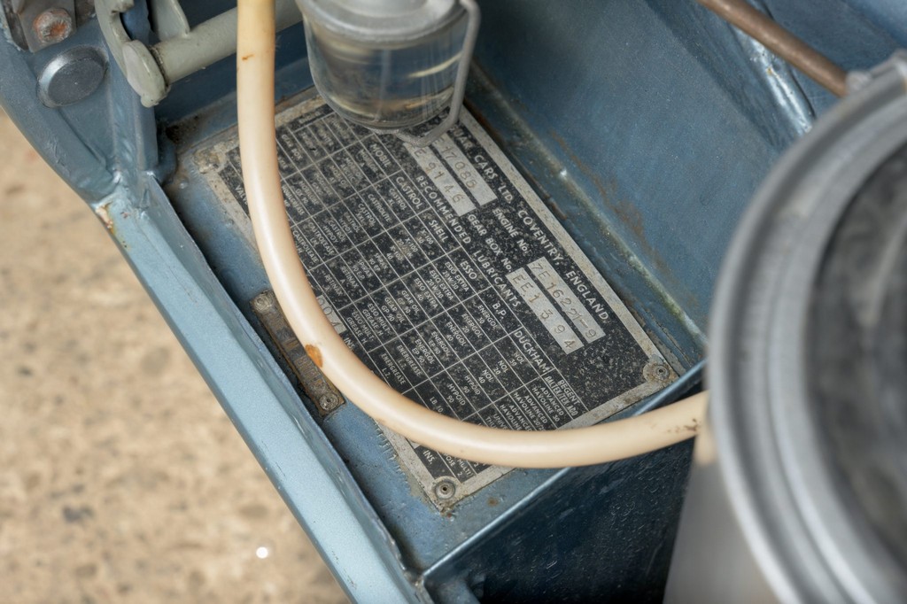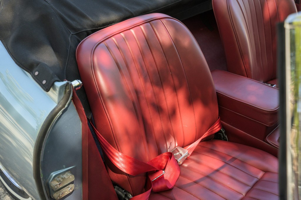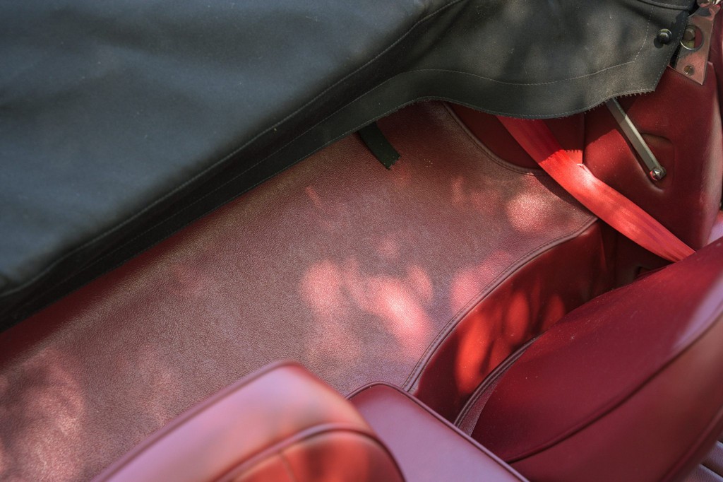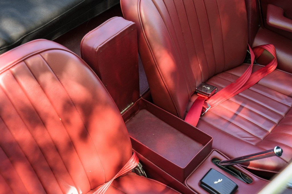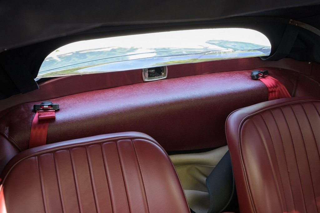 Power comes from the legendary 4.2-liter inline-six, which has been freshened along with the suspension and braking systems to ensure the car drives as beautifully as it looks. A new black vinyl soft top was installed as part of the restoration, completing the open-top experience. Paired with a four-speed manual transmission, the XKE delivers the smooth, torque-rich performance and engaging driving character that defined Jaguar’s golden era.