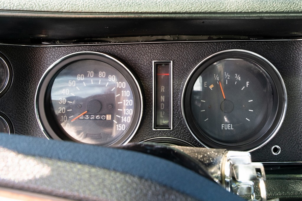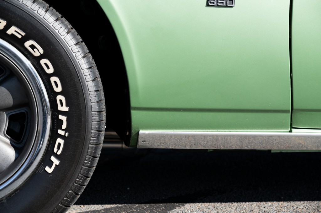 Power comes from a replacement 383ci V8, paired with a three-speed TH350 automatic transmission, delivering strong performance and smooth drivability. The car was refurbished under previous ownership prior to being acquired by the current seller in 2017 and is finished in metallic green with black stripes over a dark green standard interior.