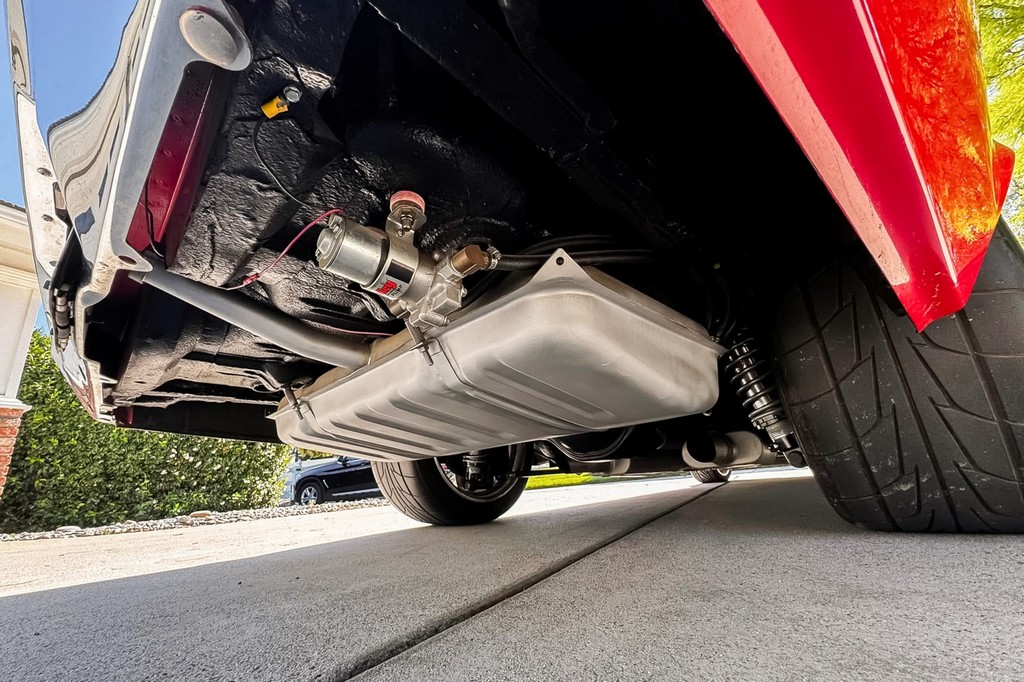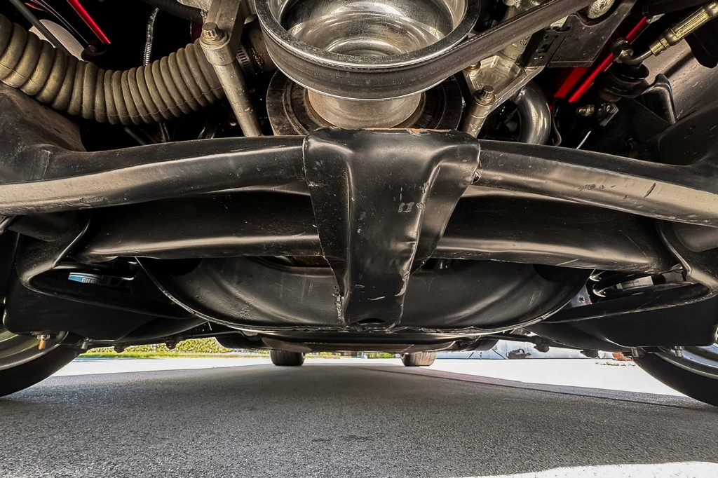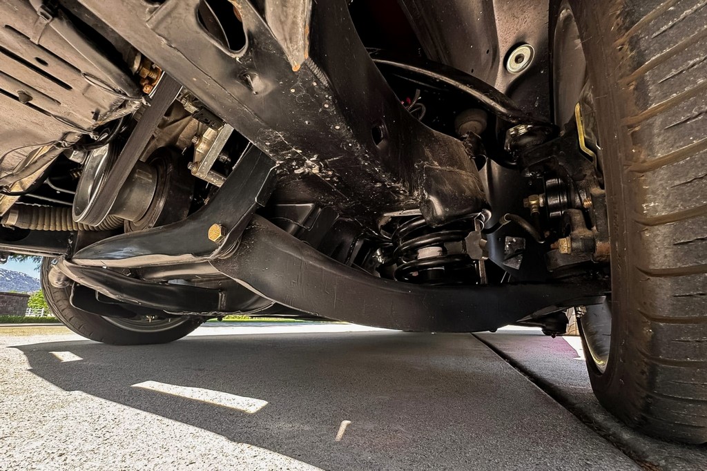 Subframe connectors and rear four-link suspension with adjustable coilovers