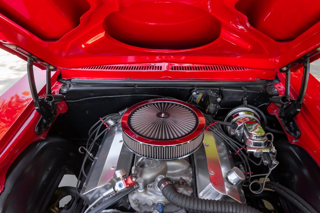 This 1971 Chevrolet Nova Coupe is a high-performance restomod designed for both show and street enjoyment. Powered by a massive 496ci V8 with a Weiand Stealth intake manifold, Holley four-barrel carburetor, HEI distributor, and coated headers, it delivers explosive power with smooth reliability. The engine is paired with a 700R4 automatic transmission and a Ford 9″ rear end with 3.73:1 limited-slip differential, providing controlled and thrilling performance.