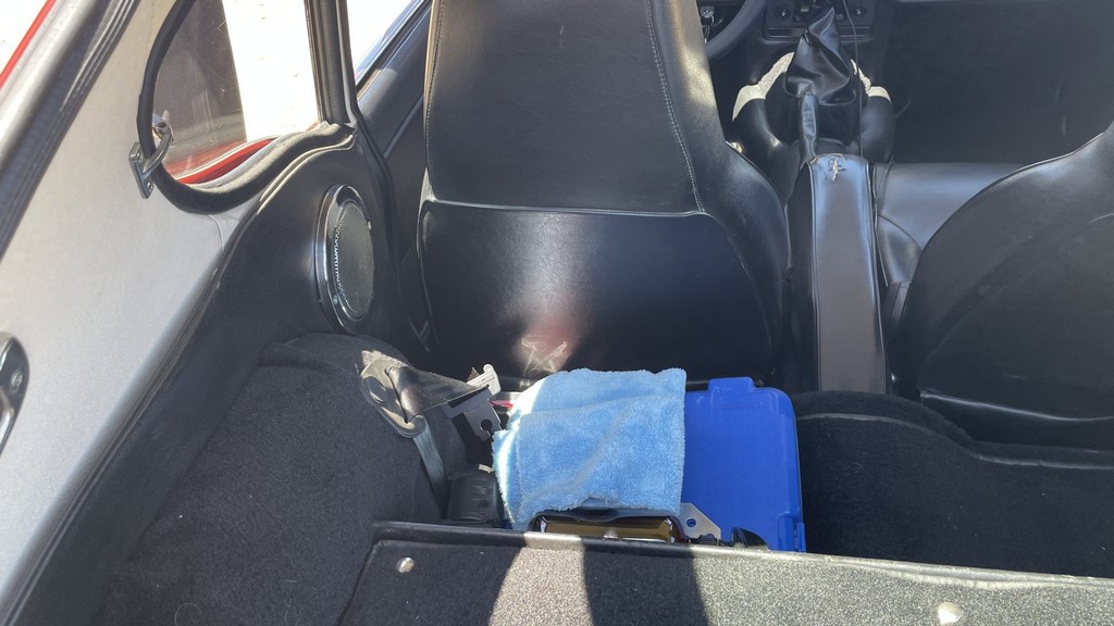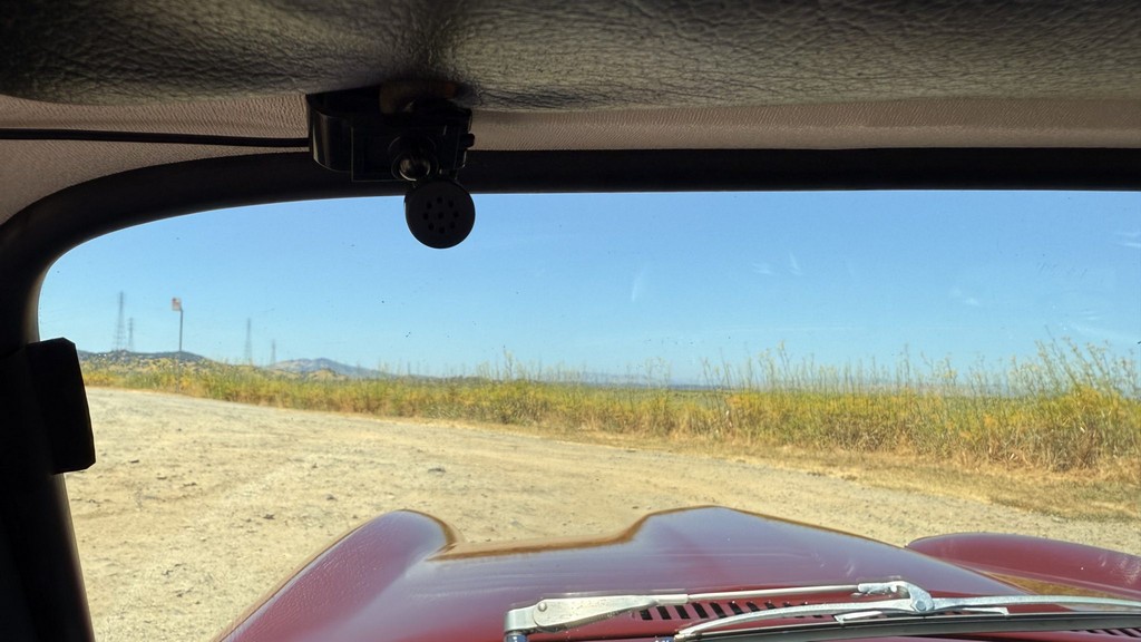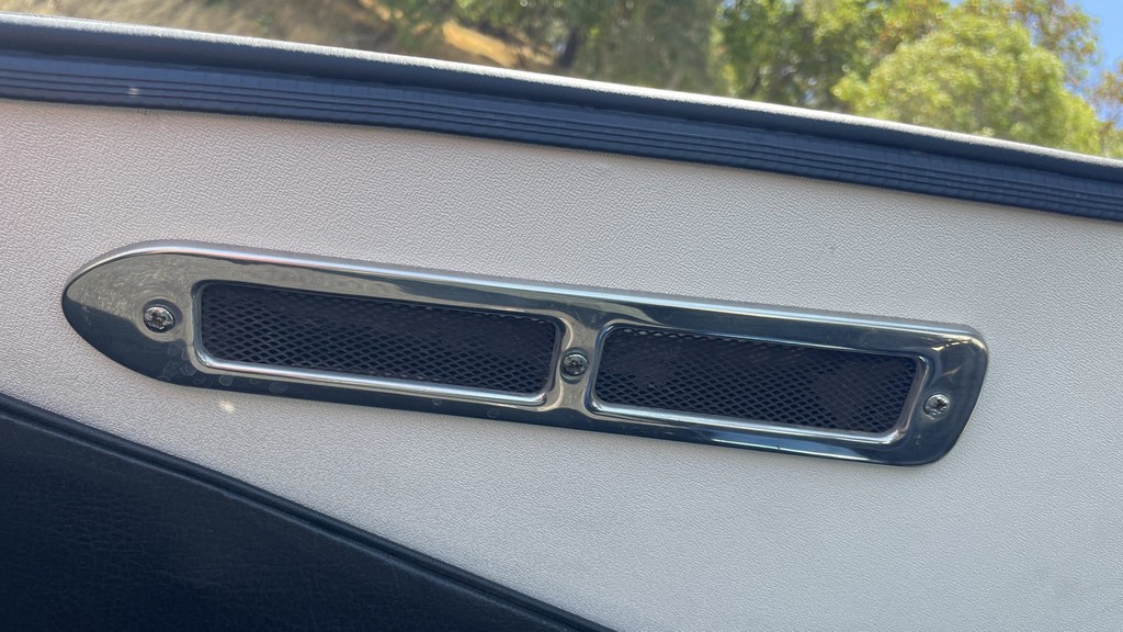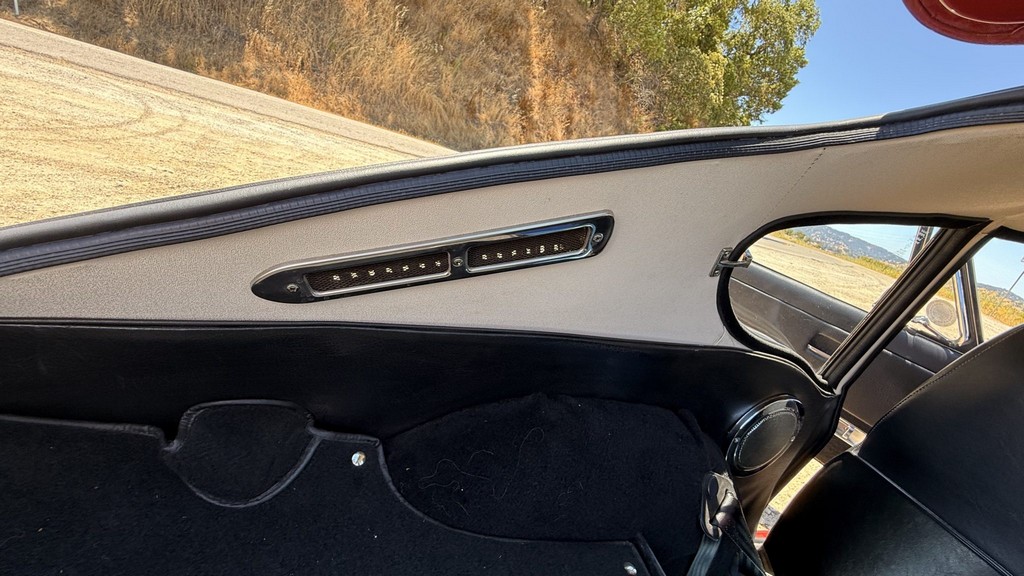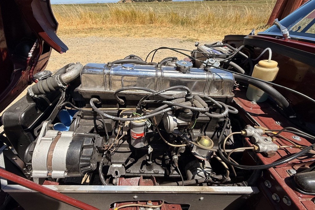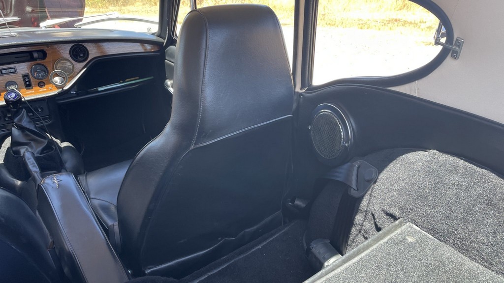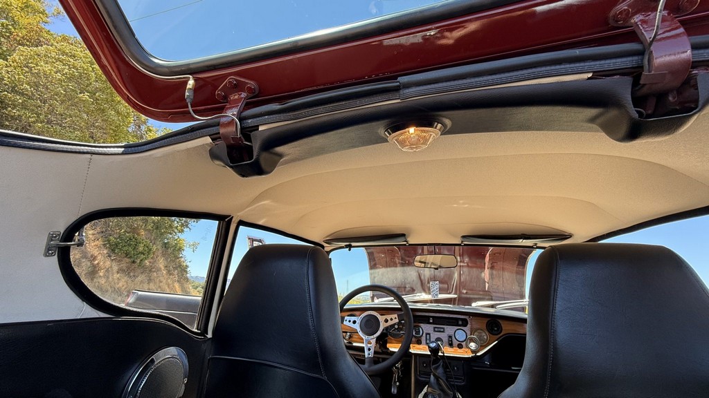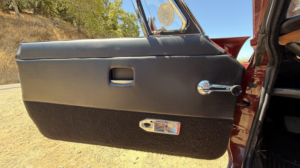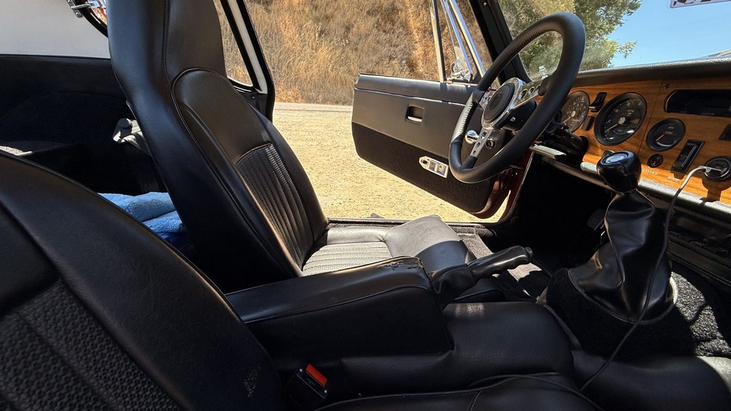Interior: Black vinyl upholstery with replacement walnut dashboard panel
