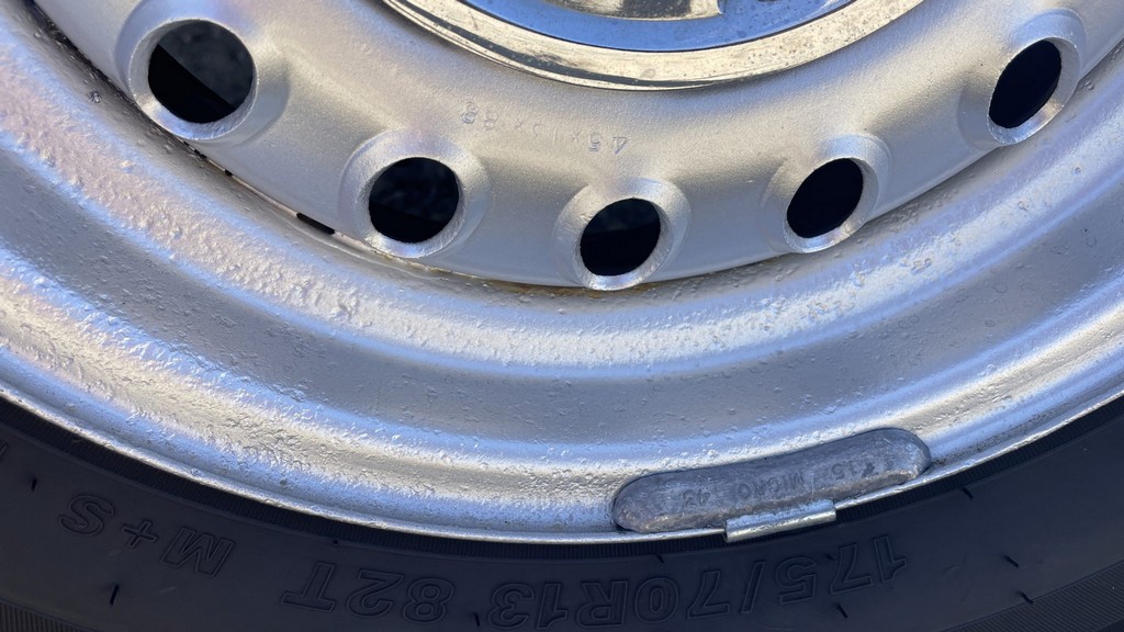 Rides on silver-painted 13″ steel wheels with period-correct appearance.
