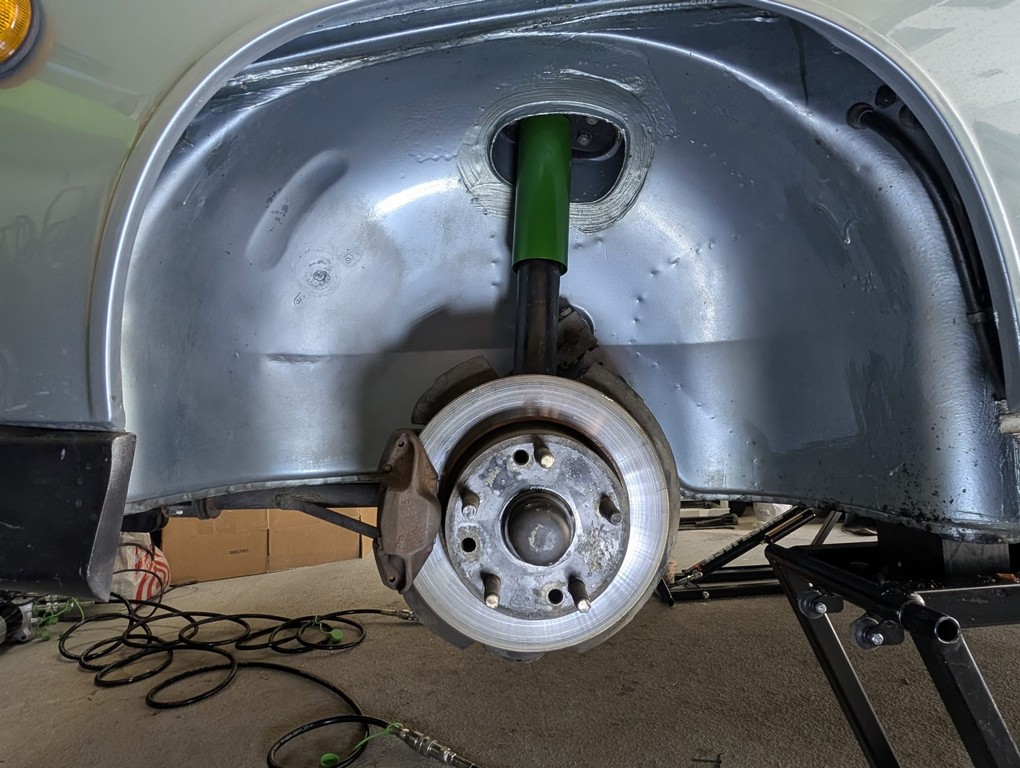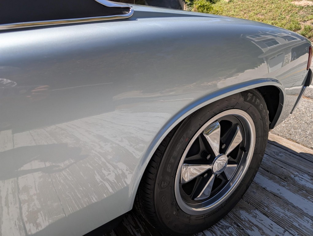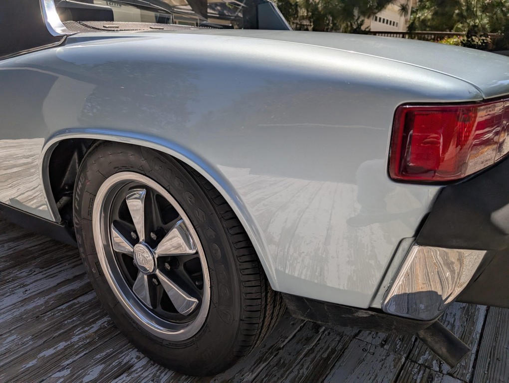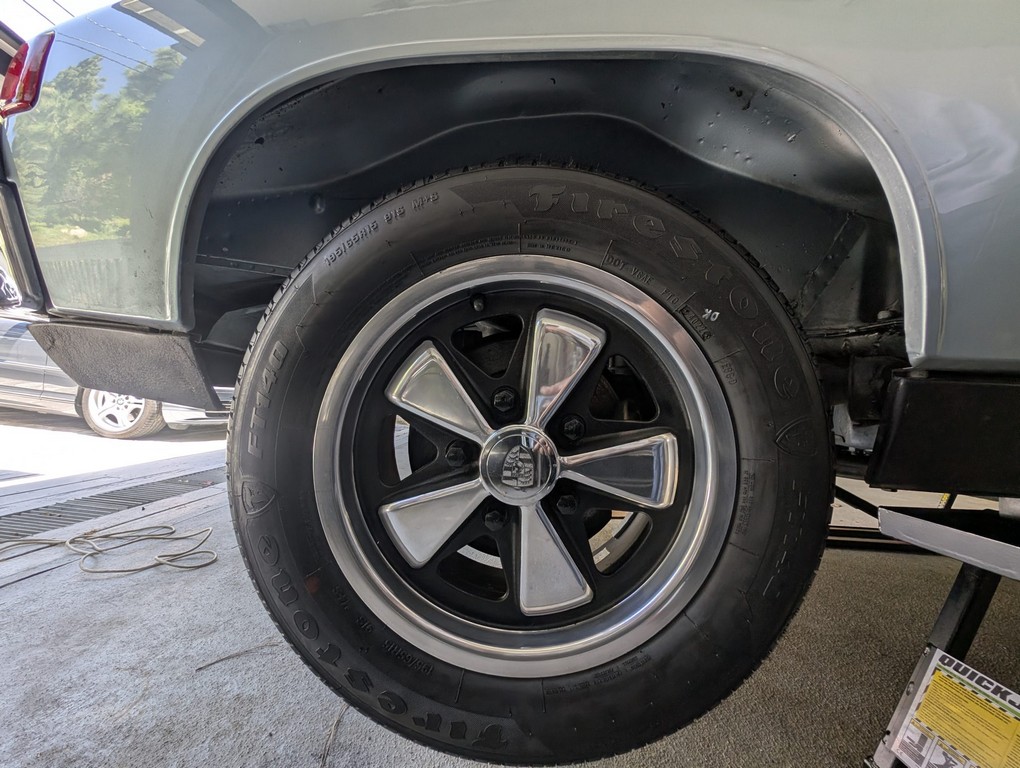 Five-lug conversion allows use of Fuchs-style wheels, a desirable upgrade for handling and period-correct aesthetics.