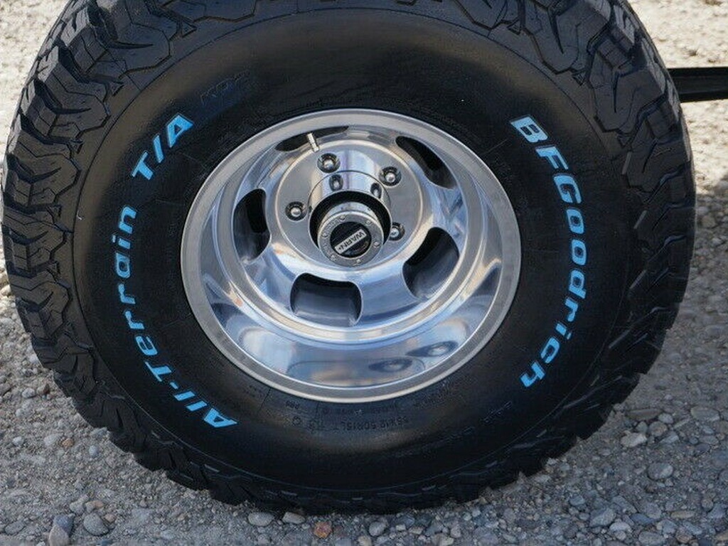 Frame and undercarriage are rust-free and clean. Stabilizer shocks, factory suspension, and steering components are solid and free of leaks. Vintage polished alloy wheels paired with fresh all-terrain tires complete the original look while maintaining trail-ready capability.
