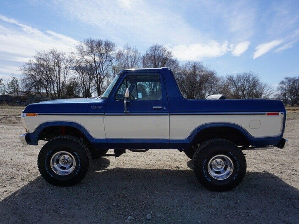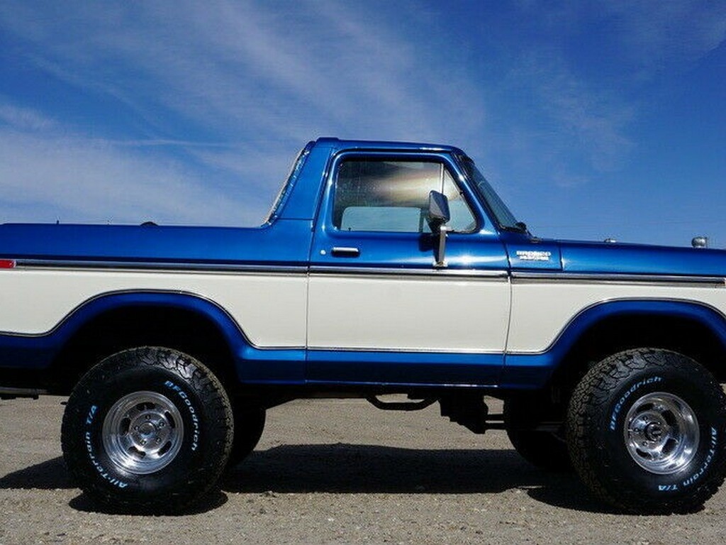 This 1979 Ford Bronco Custom Edition is a true survivor – a highly original, factory-optioned example presented in its original two-tone Midnight Blue Metallic and Wimbledon White color scheme. The paint retains excellent depth and shine, showing only minor age-appropriate wear.
