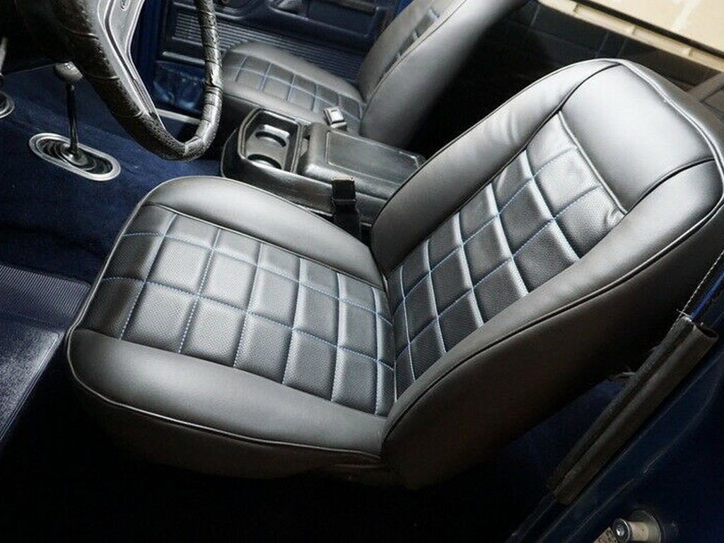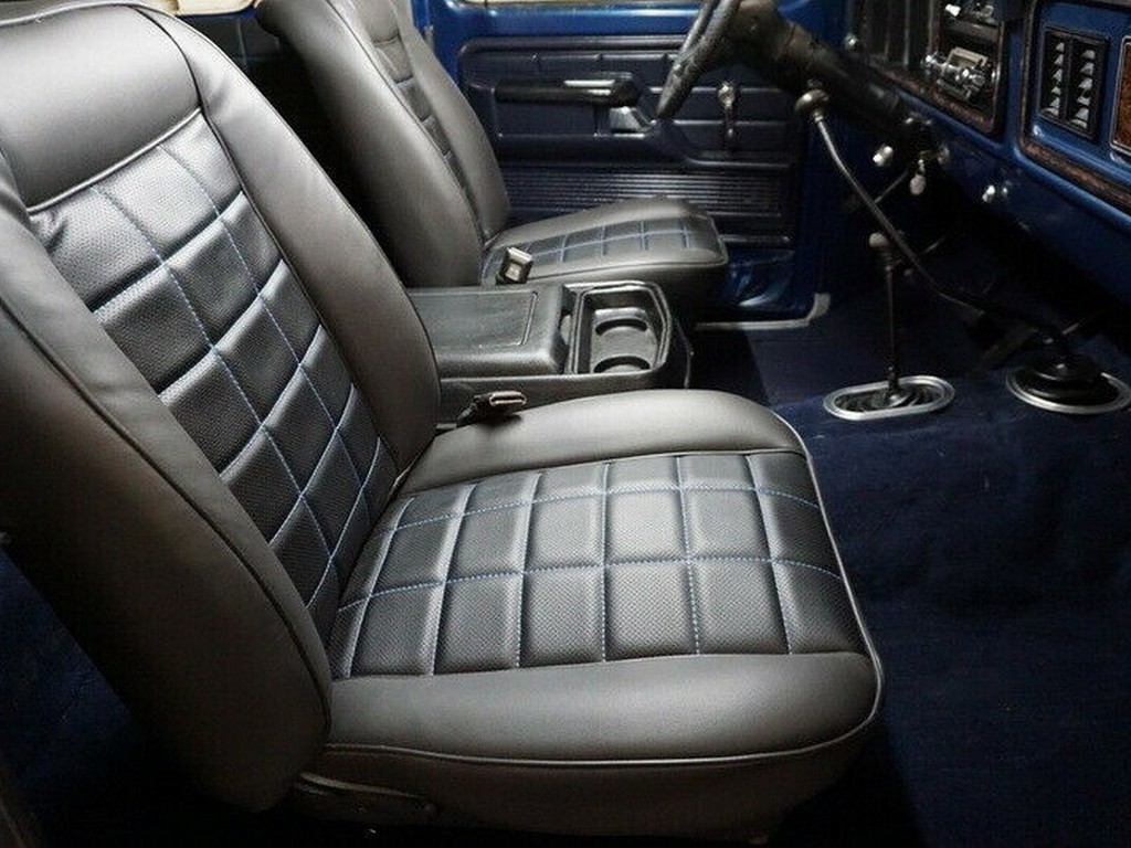 Inside, this Bronco features an incredibly well-preserved factory bucket seat interior, finished in black vinyl with blue accent stitching. Includes a center console, removable rear bench seat, and the desirable wood grain trim package. Upholstery, dash, and door panels show very well with minimal wear.