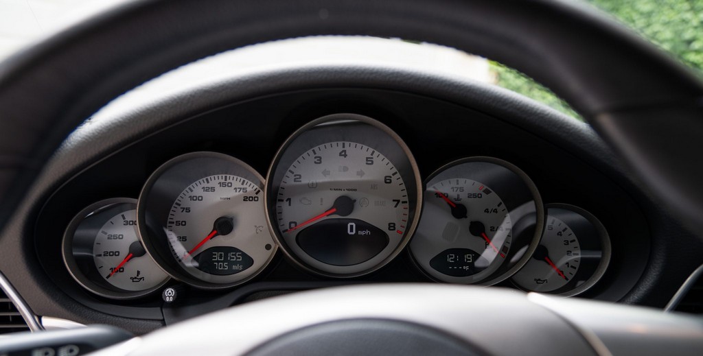 The exterior is distinguished by 19″ Carrera Classic wheels, bi-xenon headlights, and a power-deployable rear spoiler that enhances both aesthetics and aerodynamics. Additional exterior equipment includes a power sunroof and polished dual exhaust outlets.