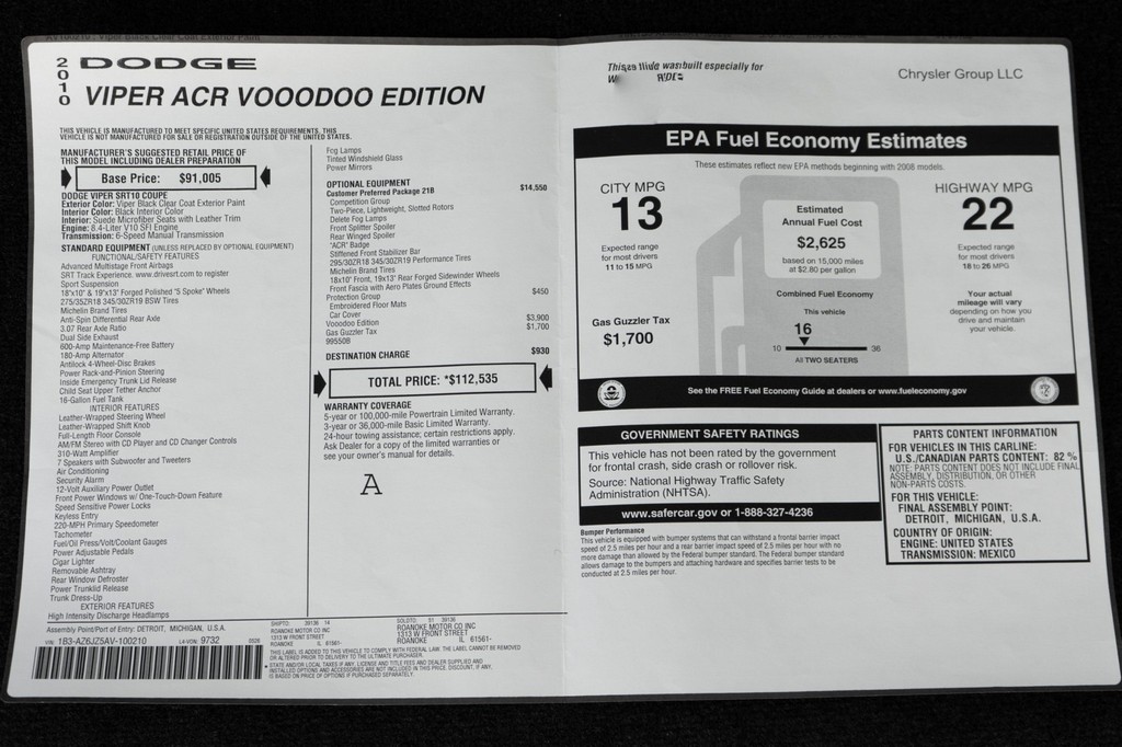 2010 Dodge Viper SRT-10 ACR VoooDoo Edition