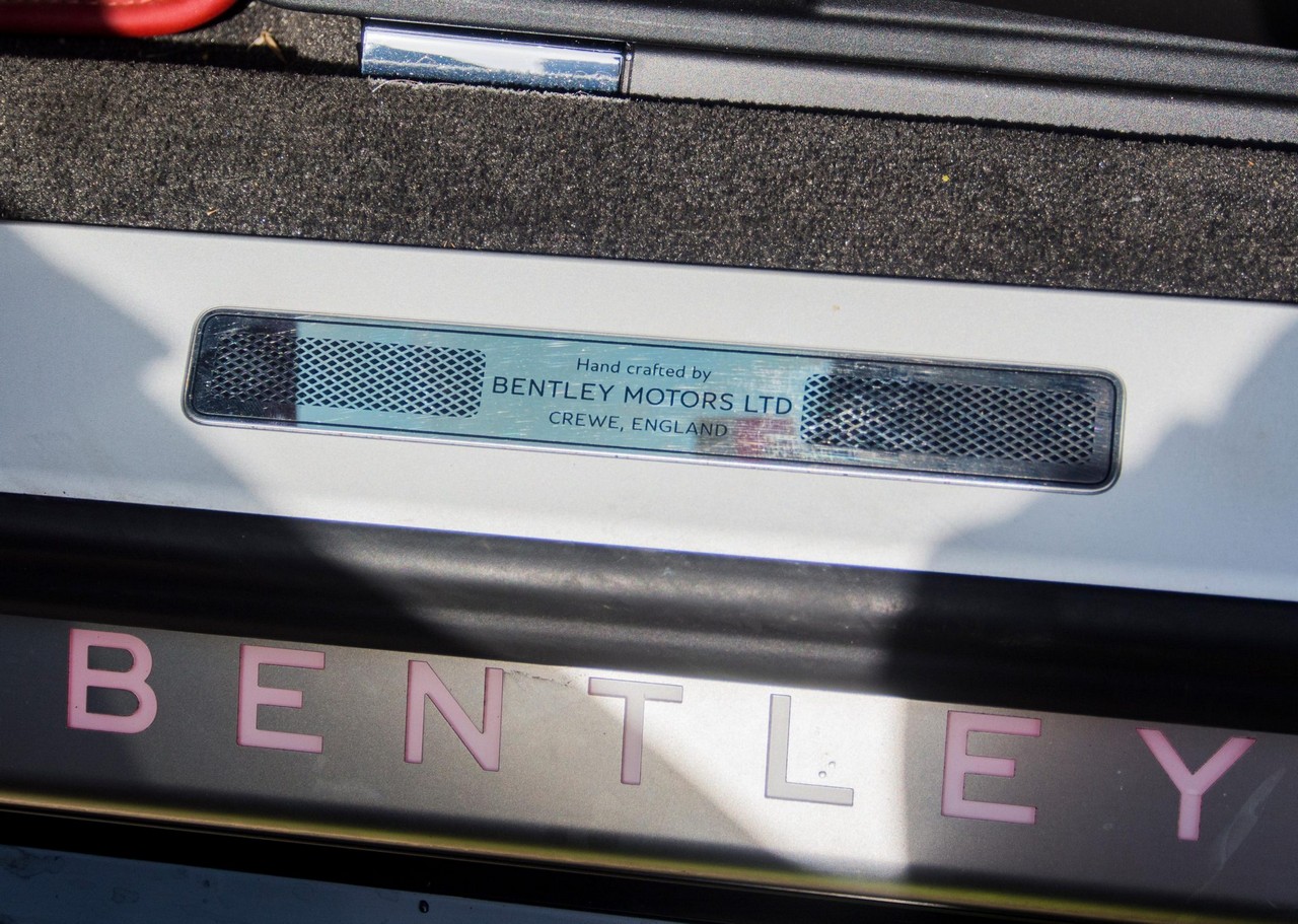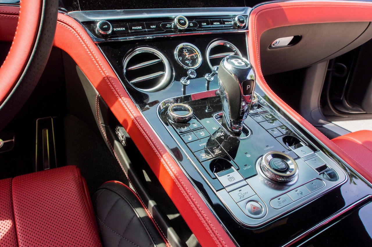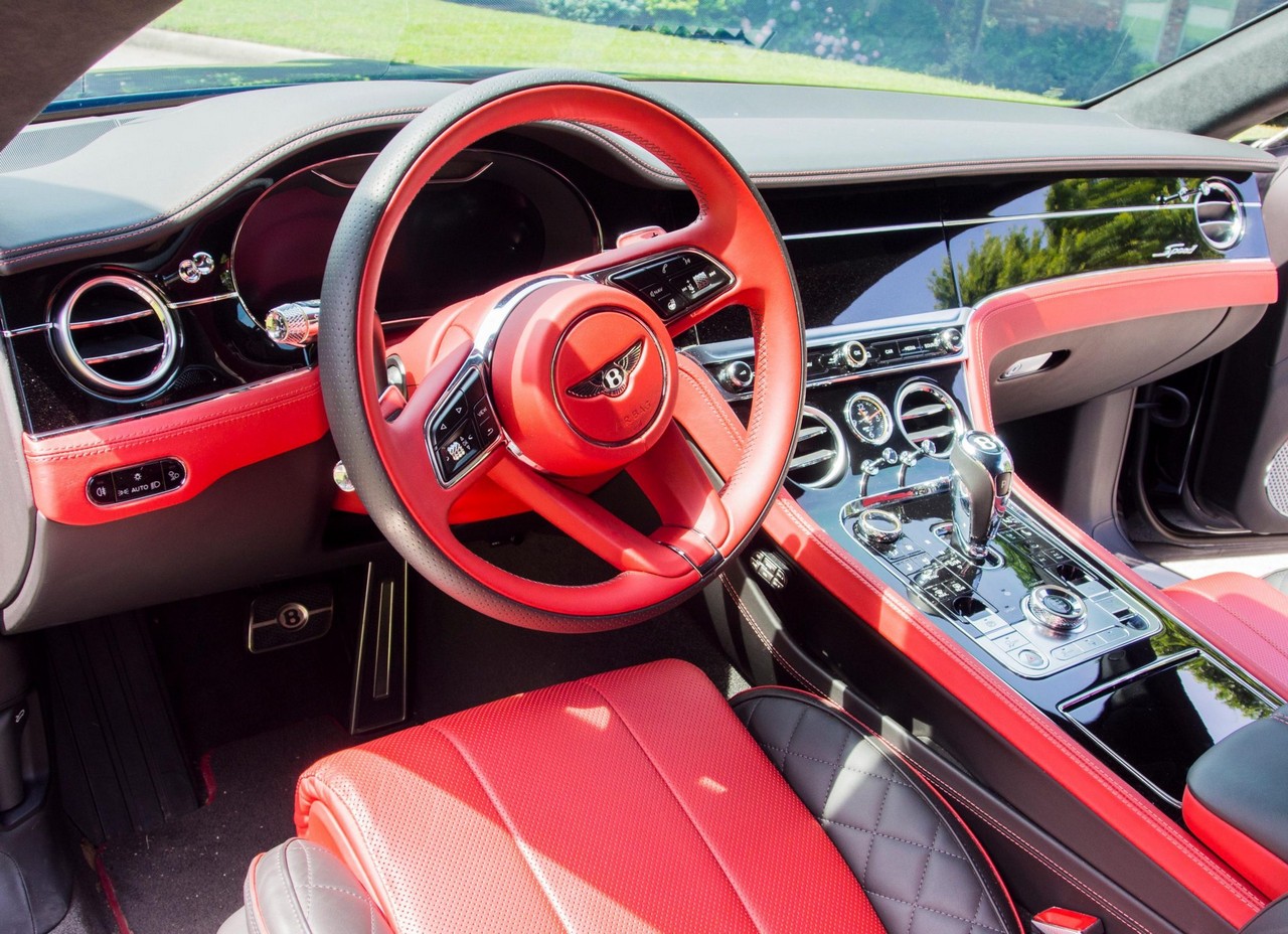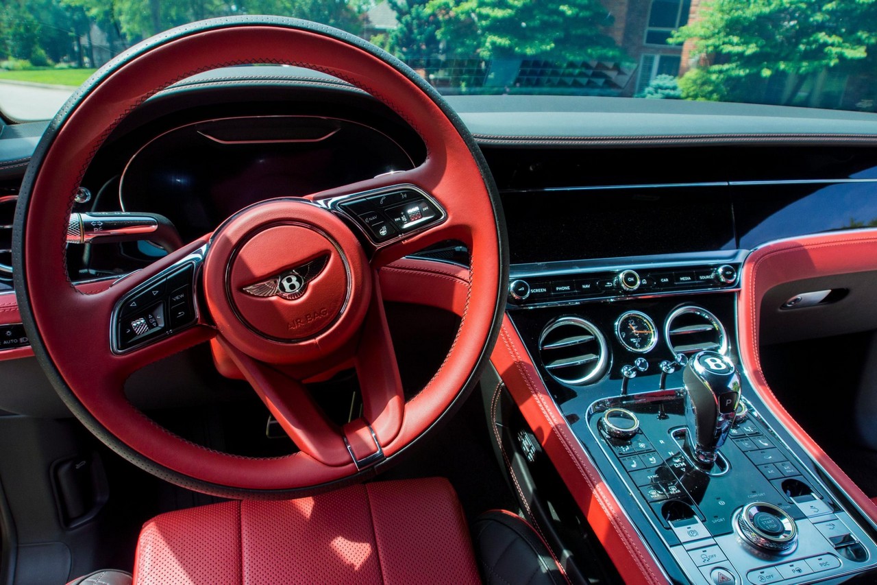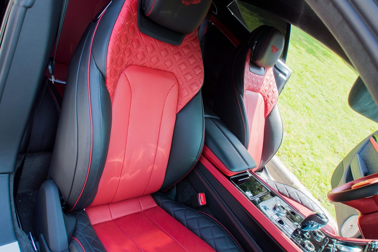 Inside, the cabin showcases heated and ventilated power-adjustable front seats, a head-up display, navigation, and Bentley’s signature rotating infotainment display. The premium Naim for Bentley sound system provides exceptional clarity, further enhanced by professionally installed aftermarket audio components. A radar detector has also been discreetly integrated. The vehicle retains its original window sticker and is accompanied by a clean Carfax report for added peace of mind.