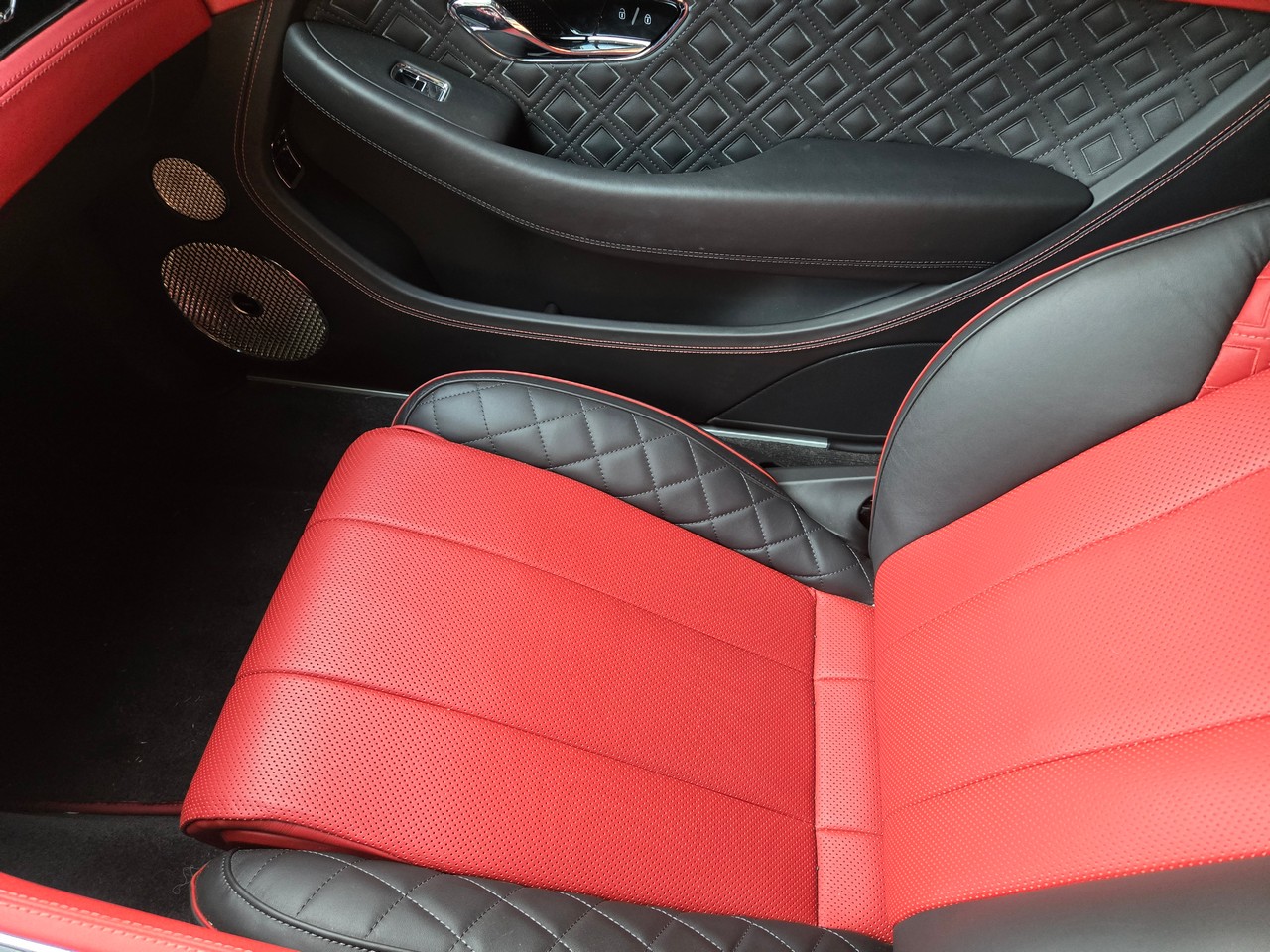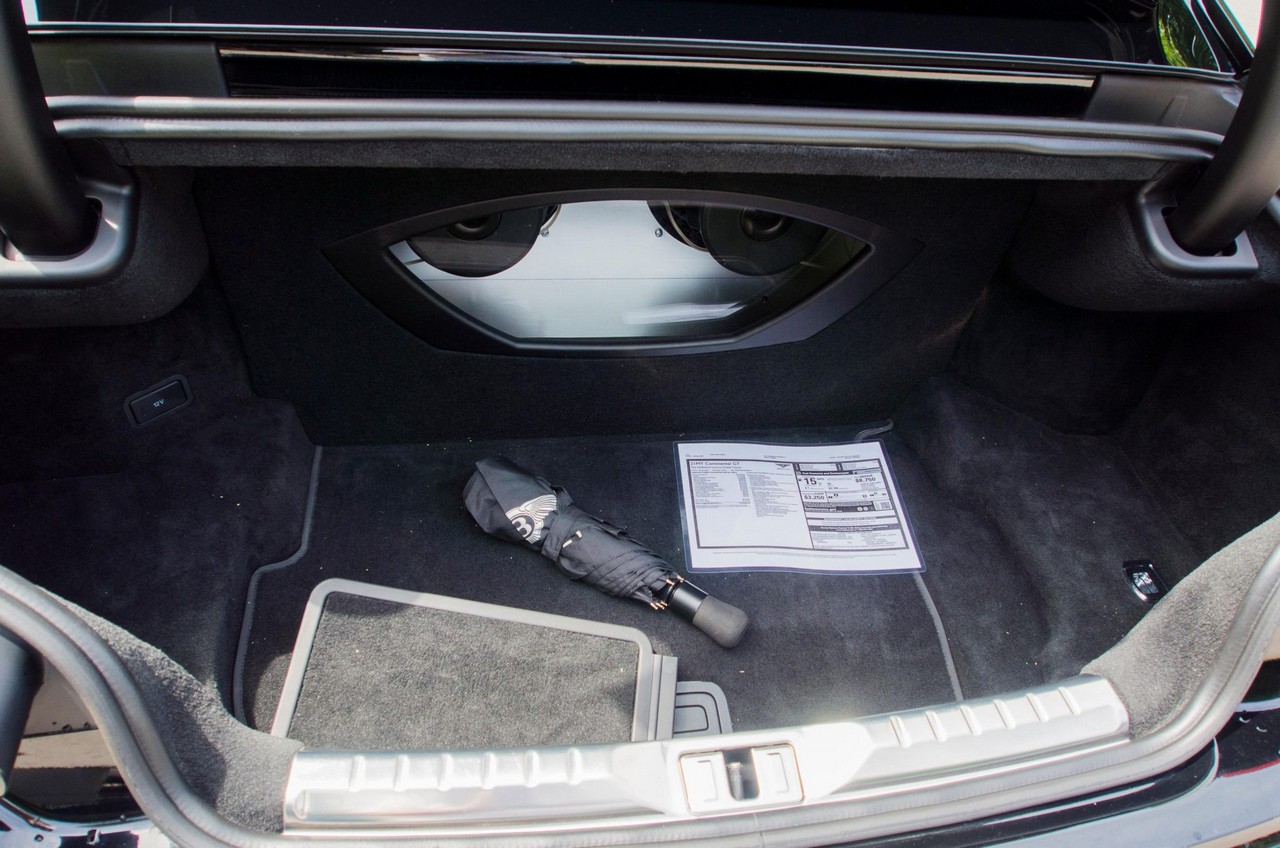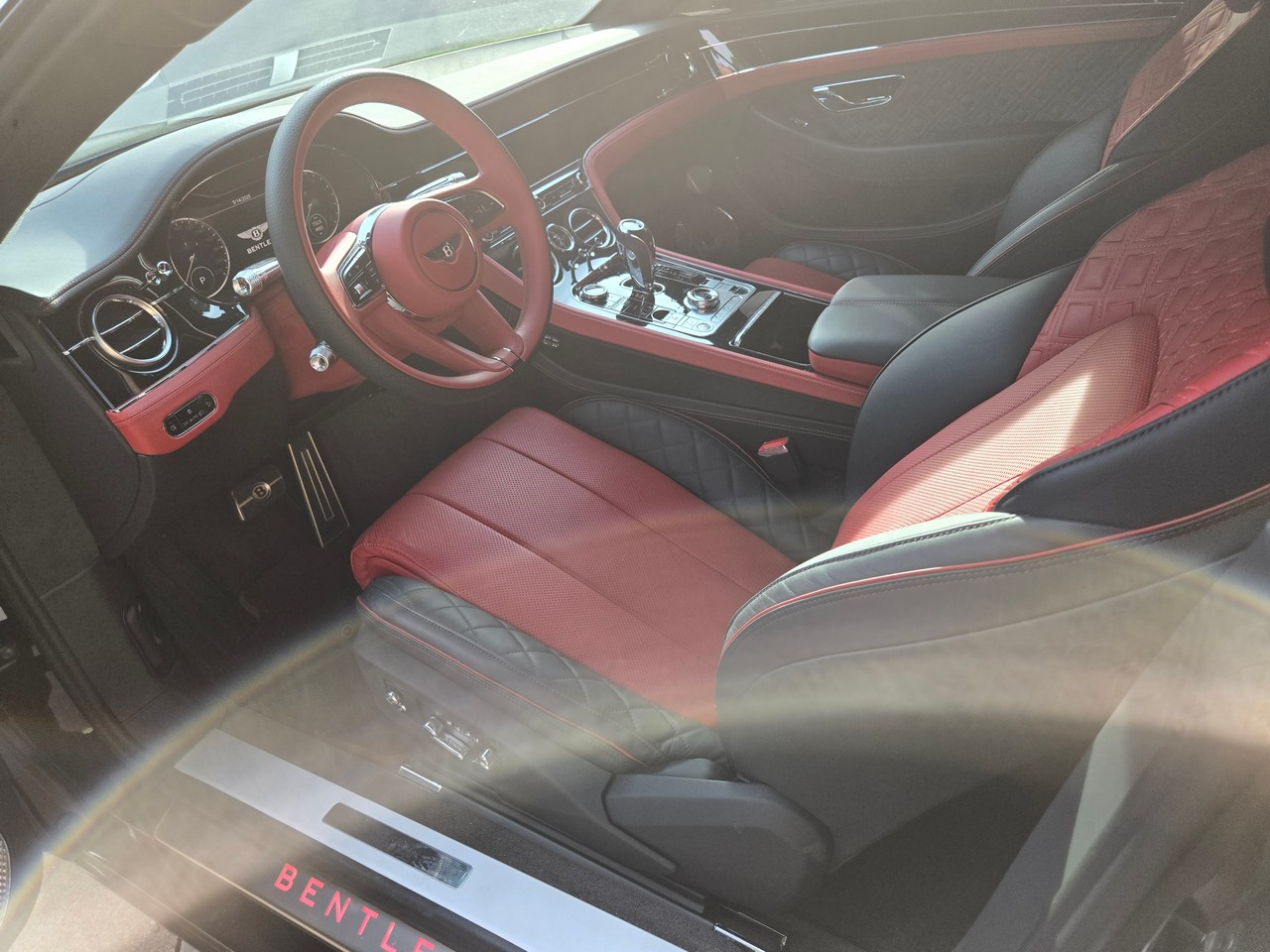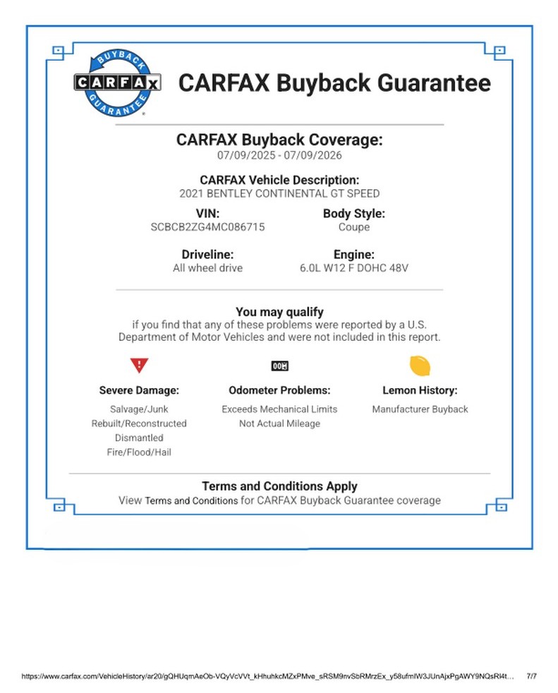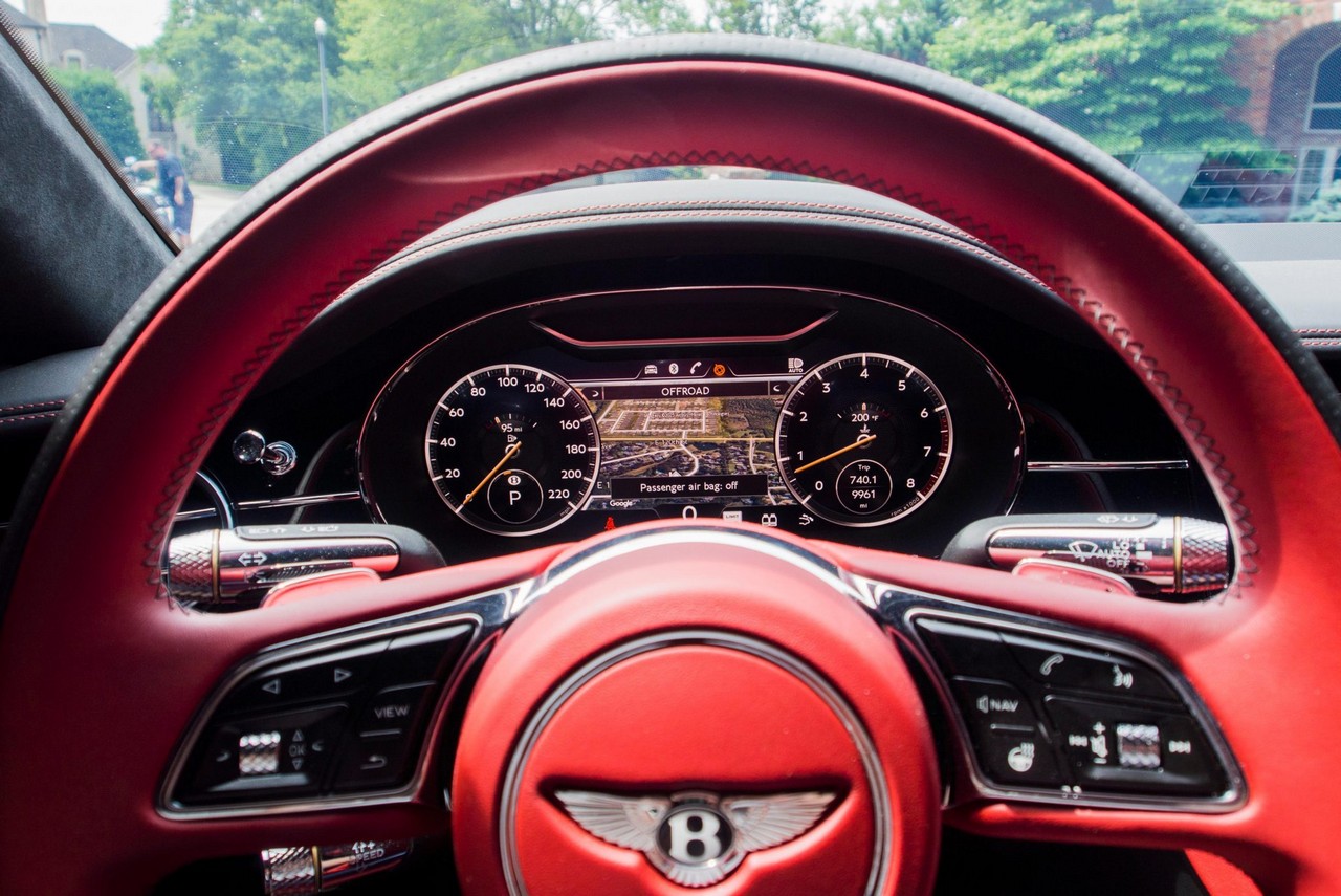 Inside, the cabin showcases heated and ventilated power-adjustable front seats, a head-up display, navigation, and Bentley’s signature rotating infotainment display. The premium Naim for Bentley sound system provides exceptional clarity, further enhanced by professionally installed aftermarket audio components. A radar detector has also been discreetly integrated. The vehicle retains its original window sticker and is accompanied by a clean Carfax report for added peace of mind.