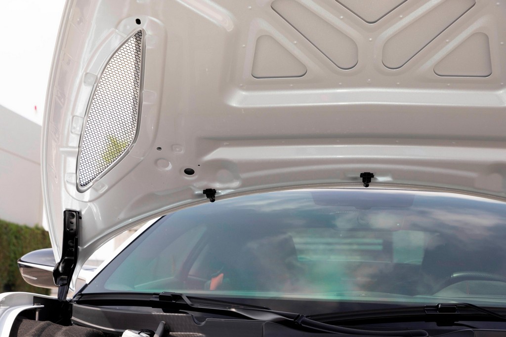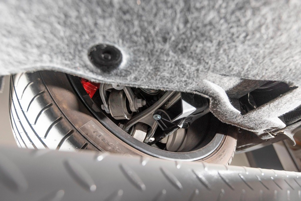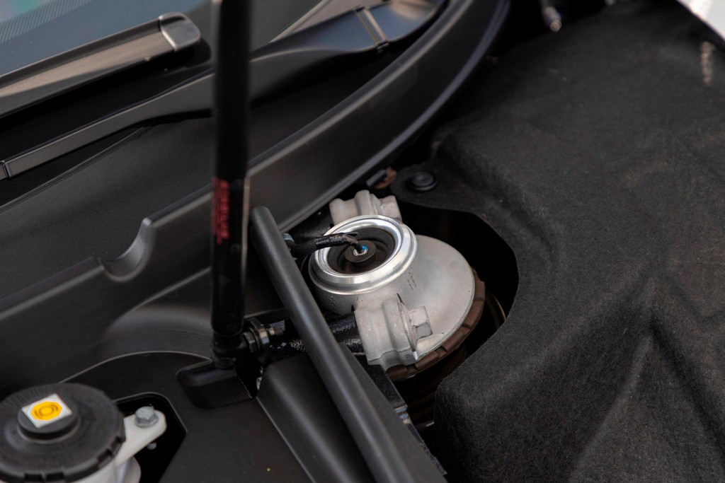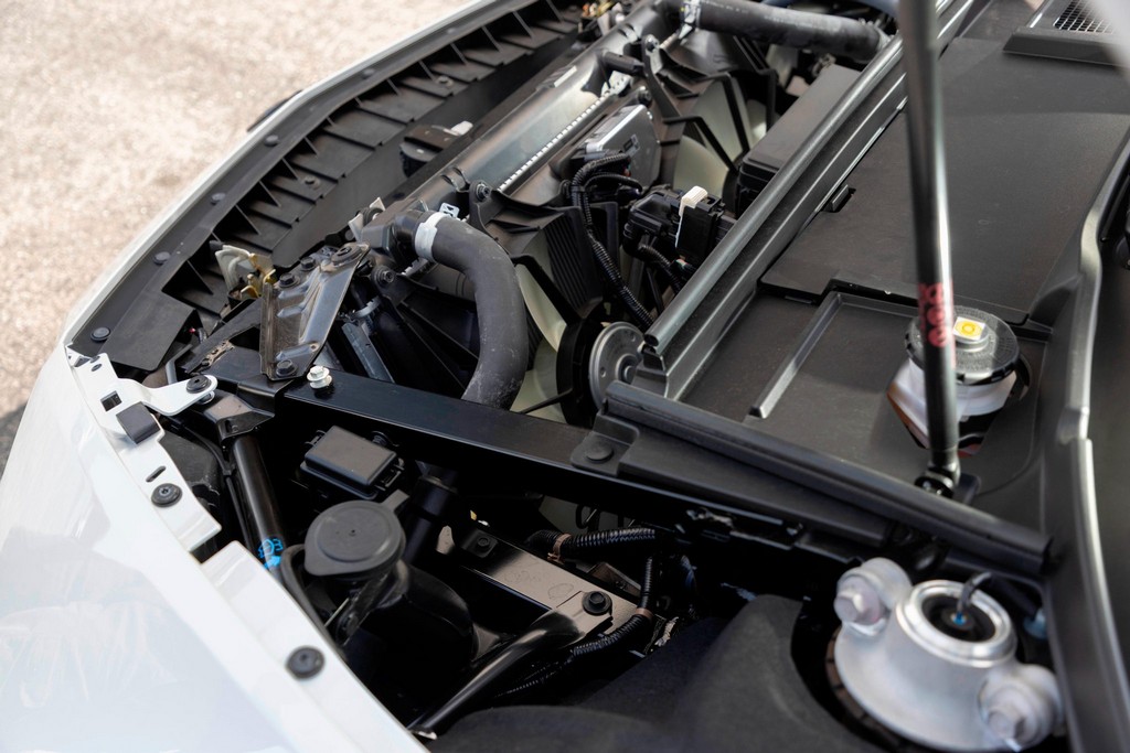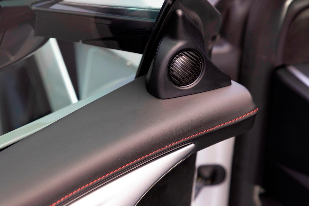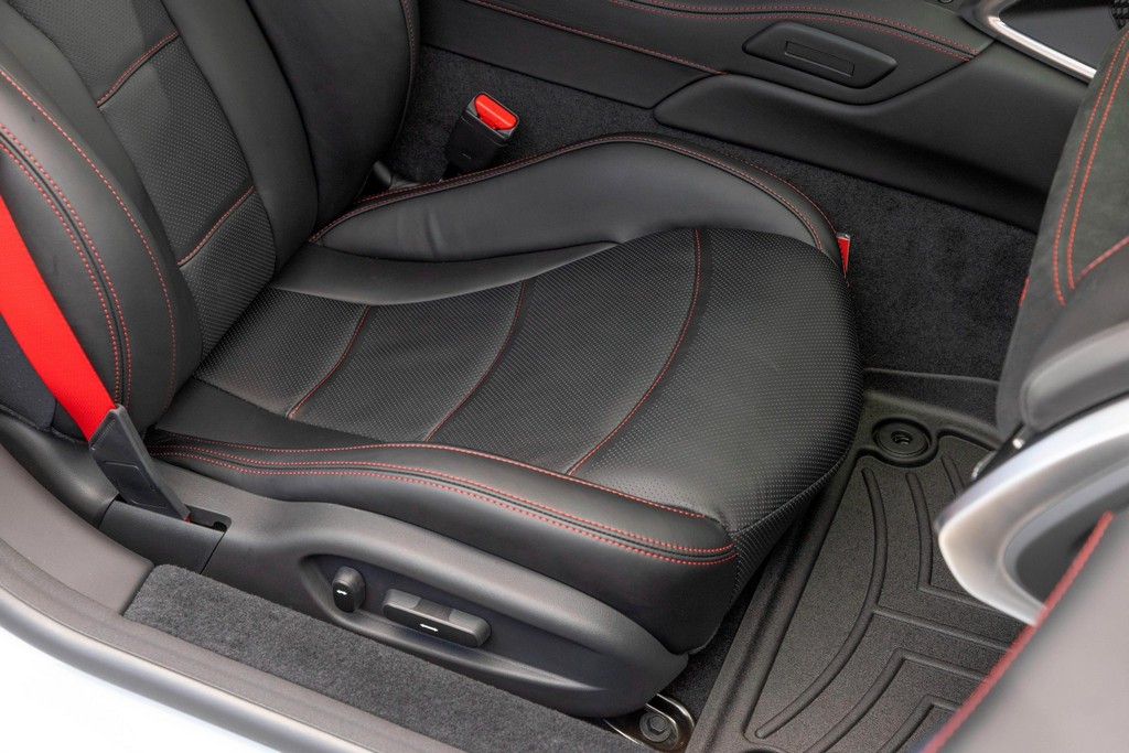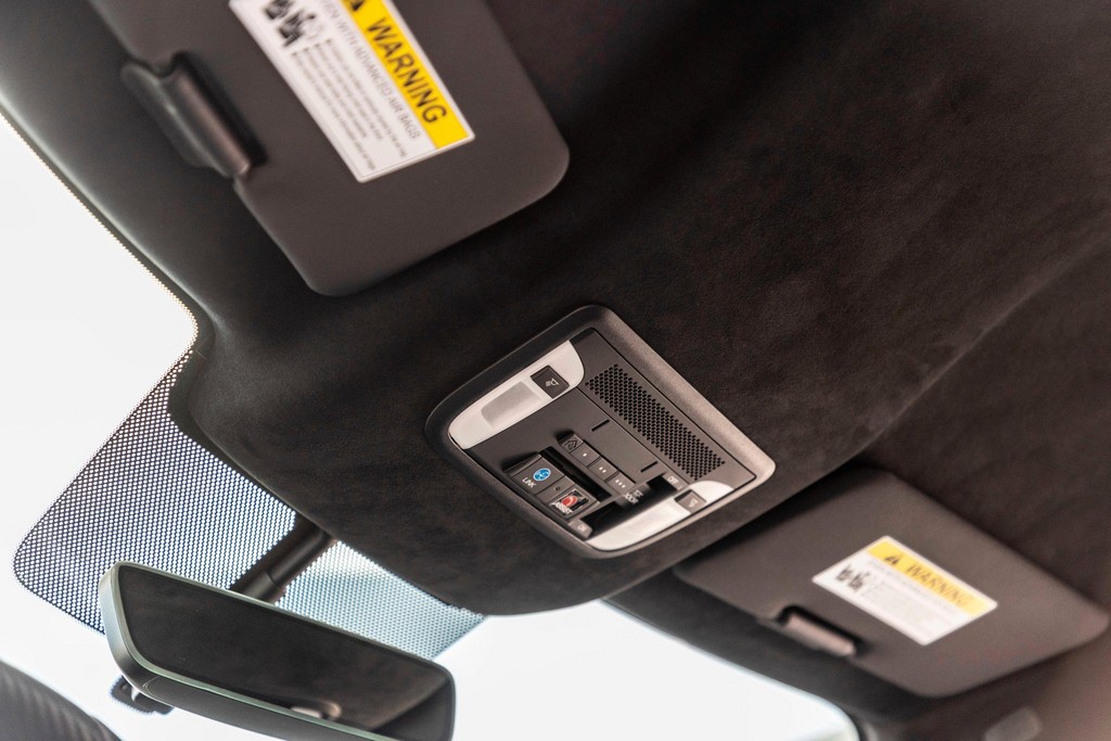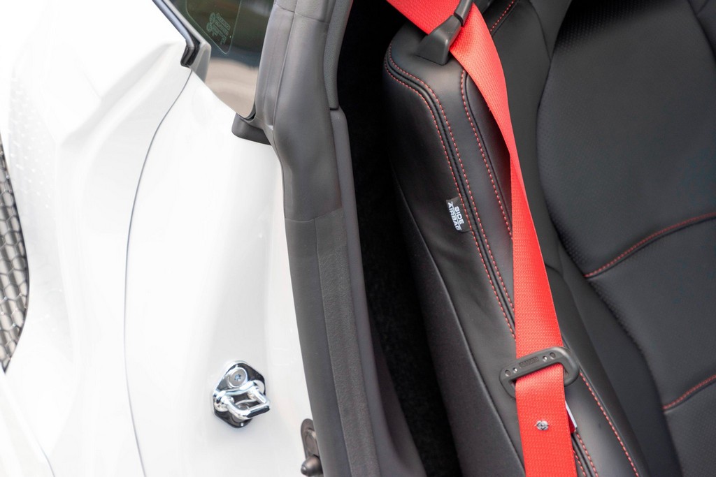 This example was factory-optioned with the $13,000 Lightweight Package, which adds Brembo carbon-ceramic brakes with red calipers and a carbon-fiber engine cover, reducing unsprung weight and enhancing braking performance. Extensive carbon-fiber exterior components include the roof, front splitter, side skirts, rear diffuser, and decklid spoiler, giving the car an aggressive and purposeful stance.