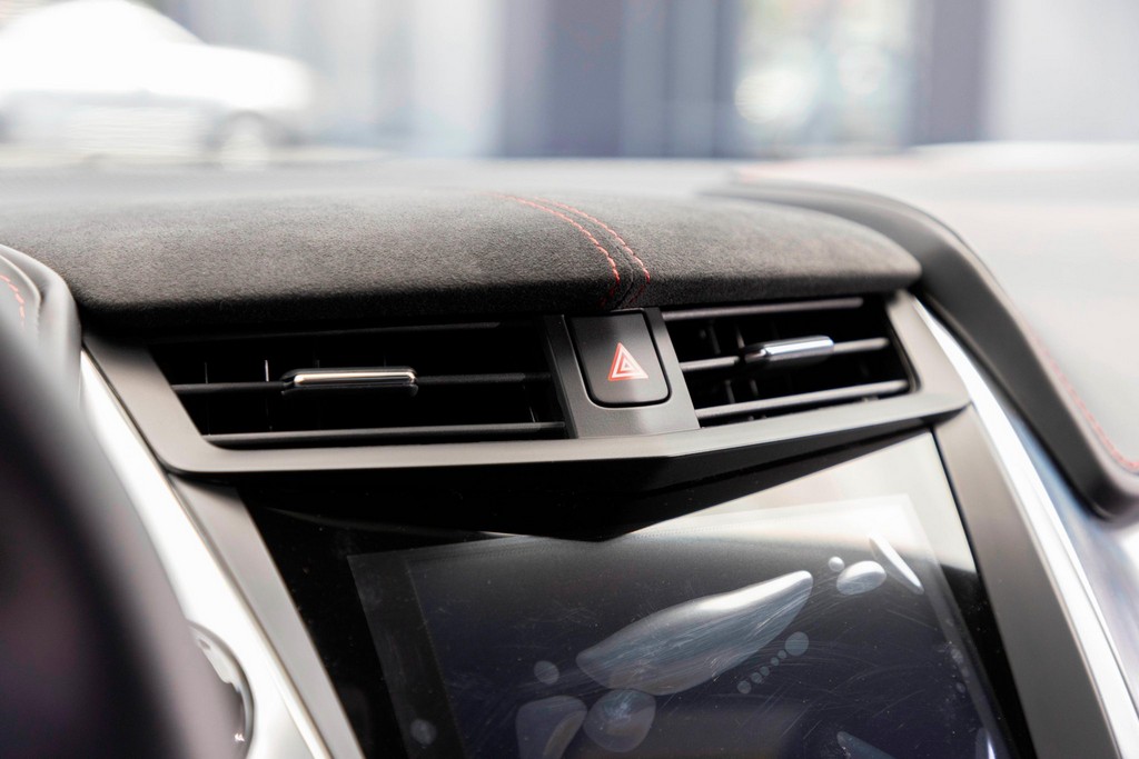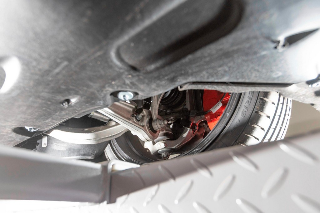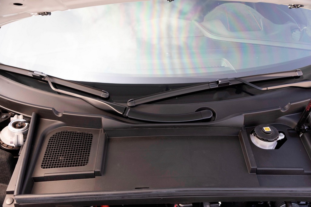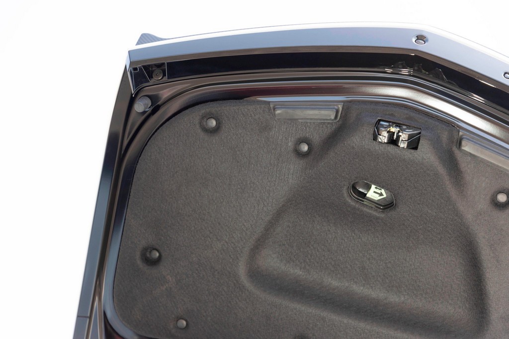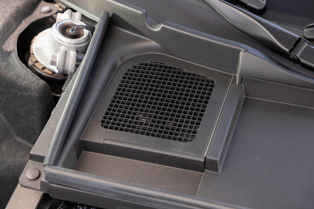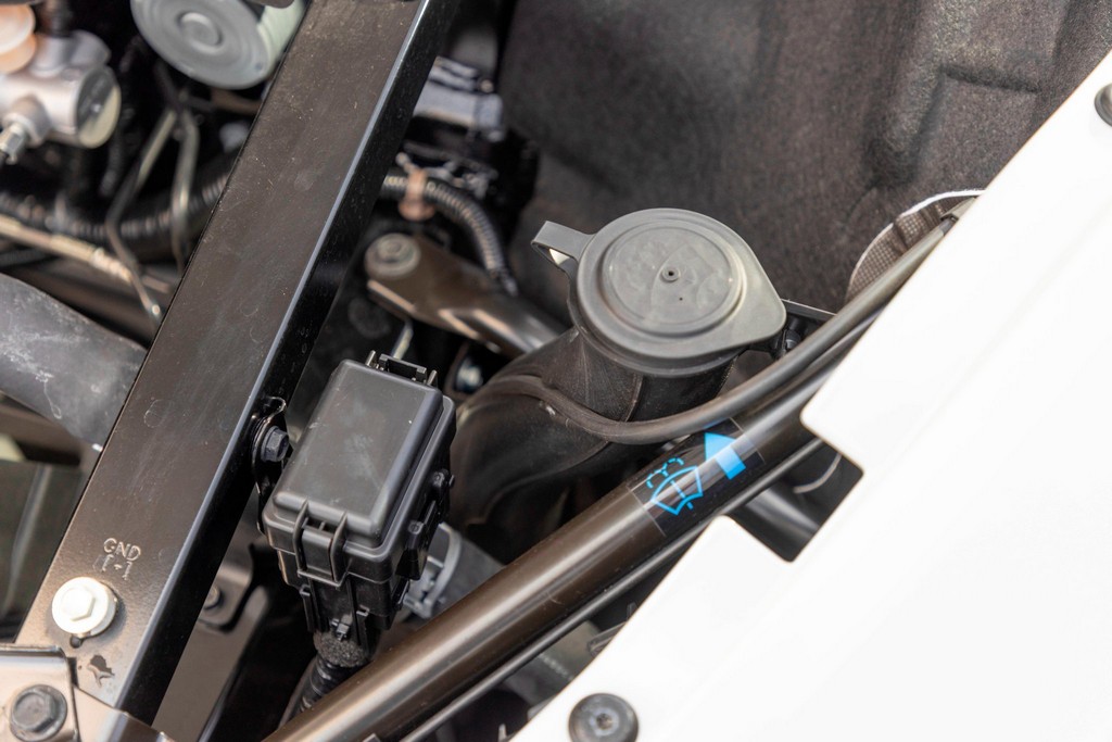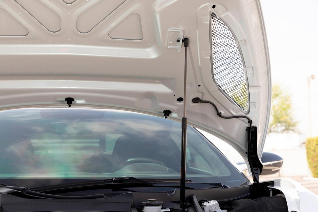 This example was factory-optioned with the $13,000 Lightweight Package, which adds Brembo carbon-ceramic brakes with red calipers and a carbon-fiber engine cover, reducing unsprung weight and enhancing braking performance. Extensive carbon-fiber exterior components include the roof, front splitter, side skirts, rear diffuser, and decklid spoiler, giving the car an aggressive and purposeful stance.