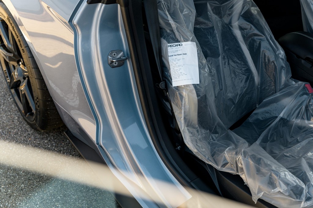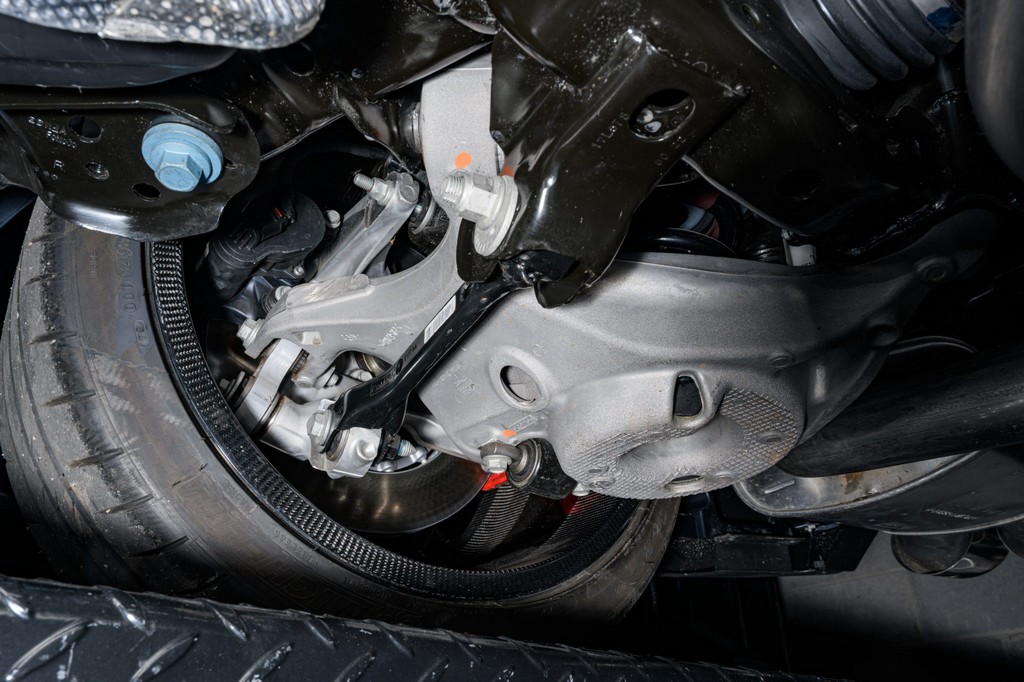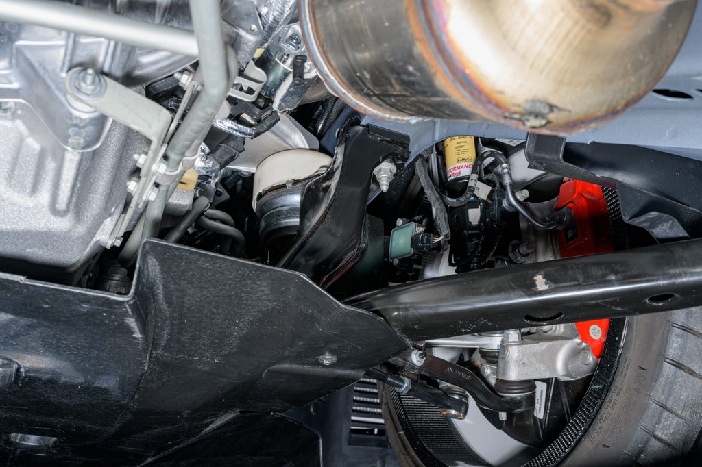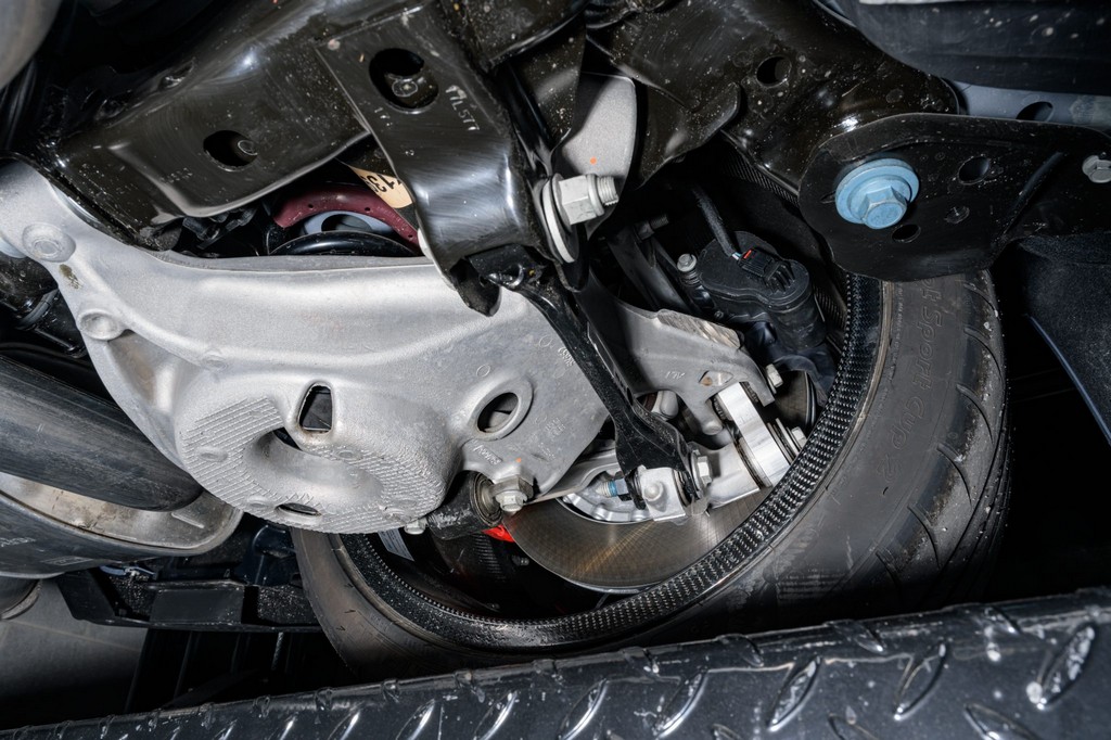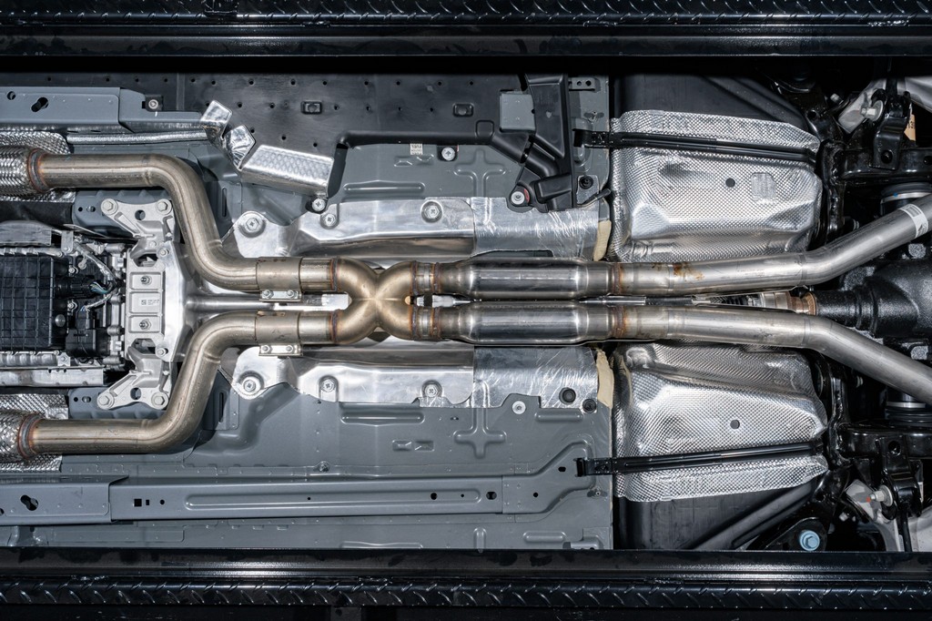 Power comes from a supercharged 5.2-liter V8, delivering brutal performance through a Tremec seven-speed dual-clutch automatic transmission and Torsen limited-slip differential. Performance hardware includes carbon-fiber 20″ seven-spoke wheels, massive Brembo brakes, and aggressive track-focused tuning, while still offering modern refinement.