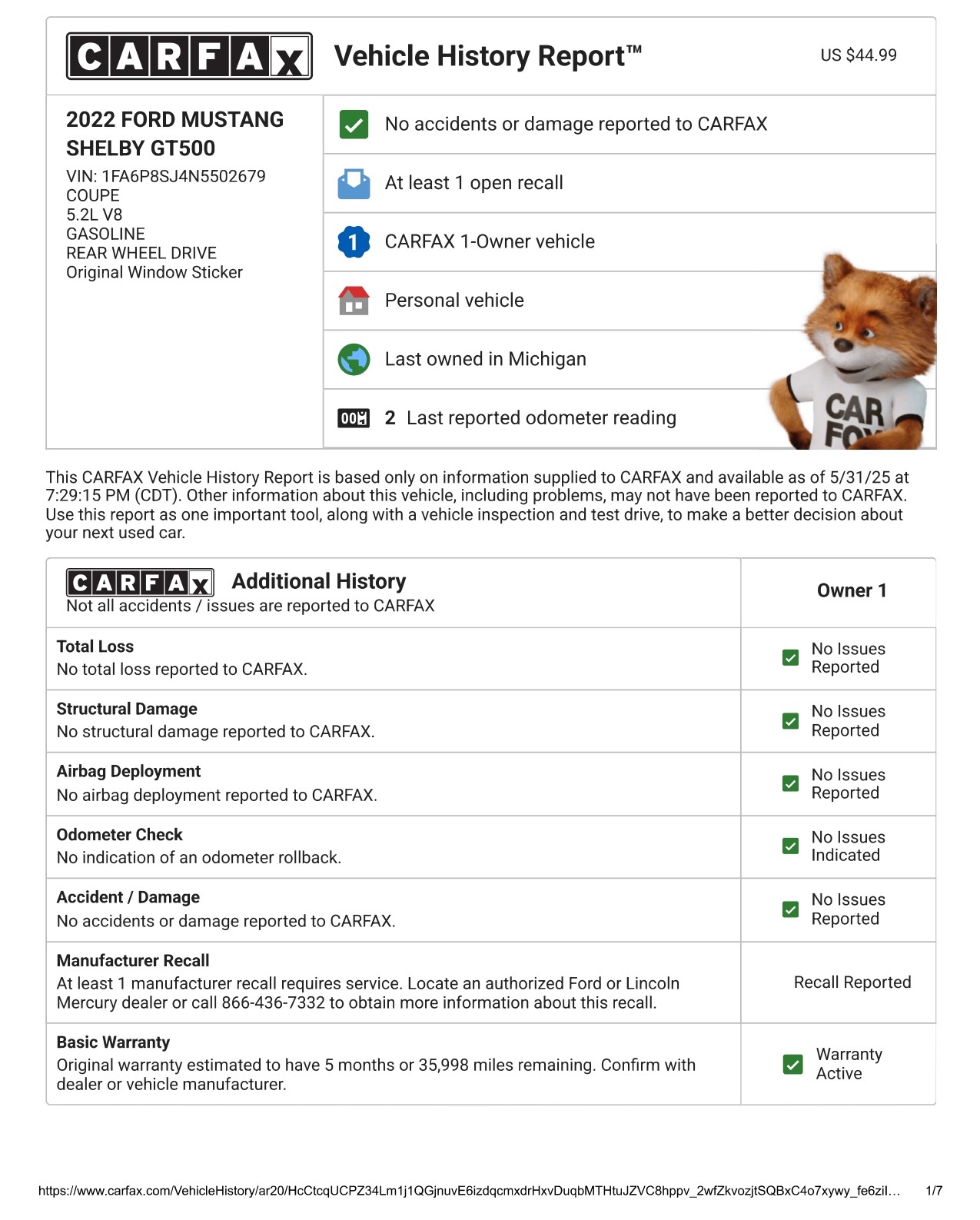 2022 Ford Mustang Shelby GT500 Heritage Edition – Ultra-Low Miles, Carbon Fiber Track Pack