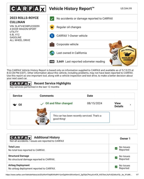 This example shows 10,900 miles and has been meticulously maintained. Accompanied by a clean Carfax report, it represents the pinnacle of luxury motoring, blending modern technology with timeless Rolls-Royce craftsmanship.