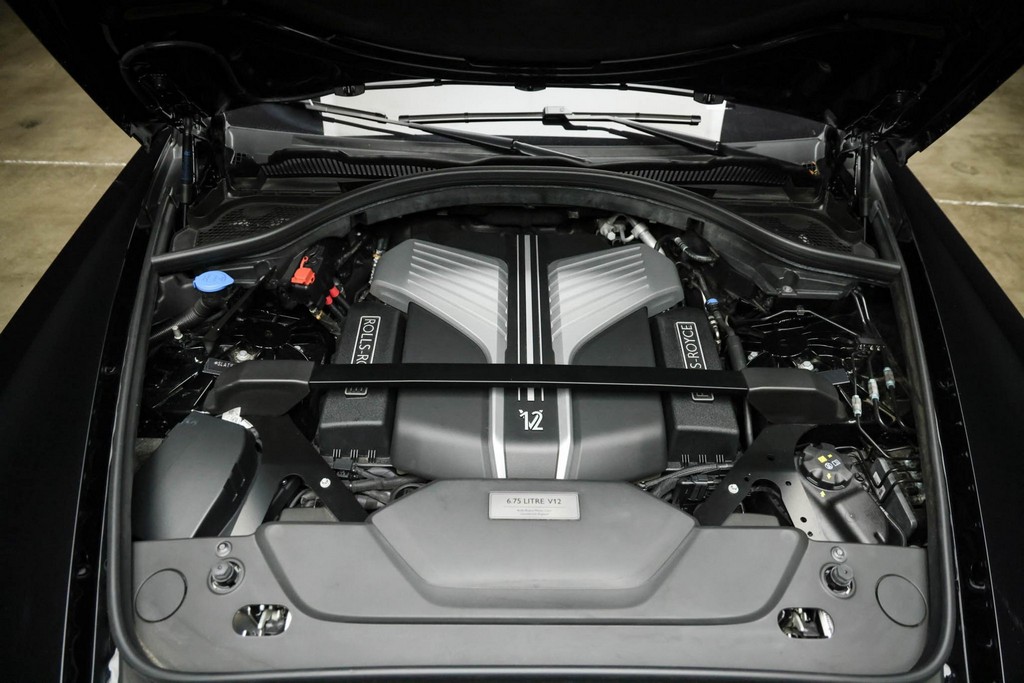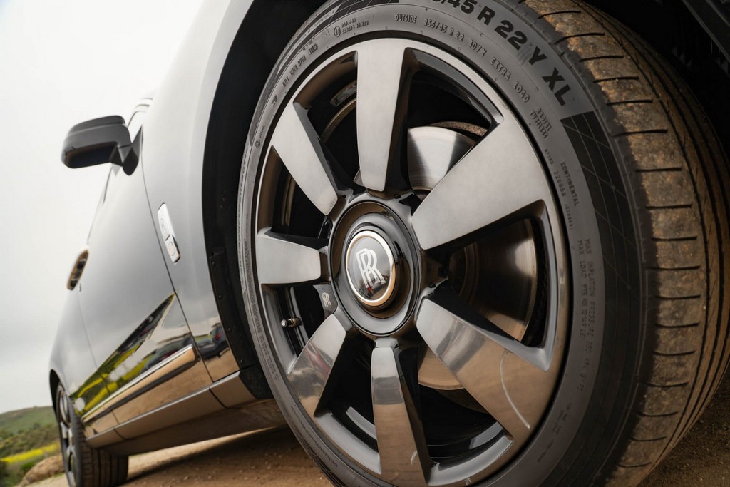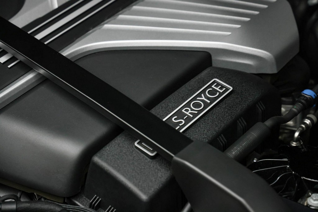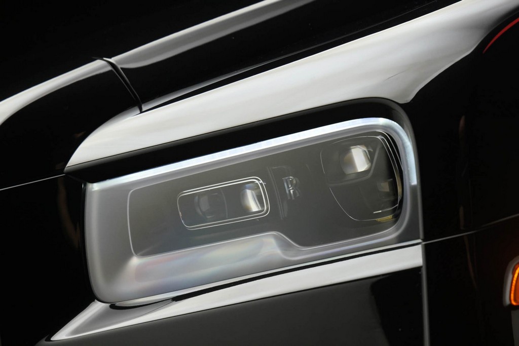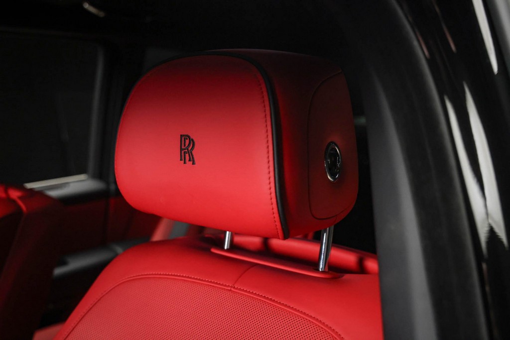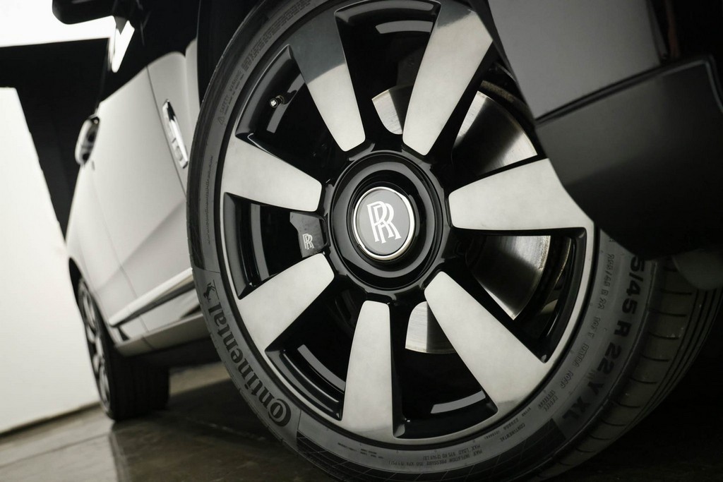 Equipment includes self-leveling air suspension, the Interior Detailing Package, Rolls-Royce laser headlights, and rear-hinged rear doors. The vehicle rides on 22″ seven-spoke Shadow wheels that complement its imposing silhouette.