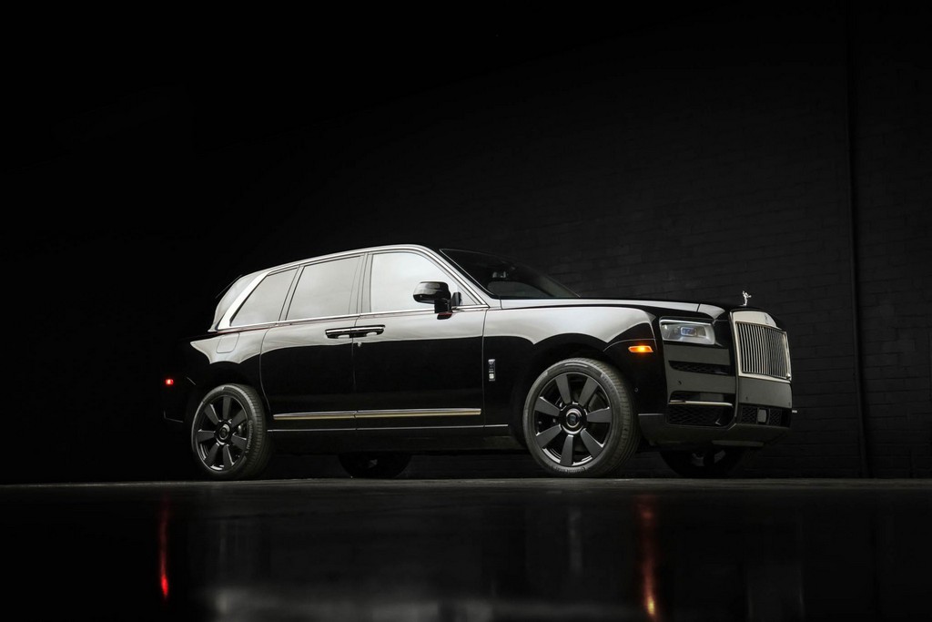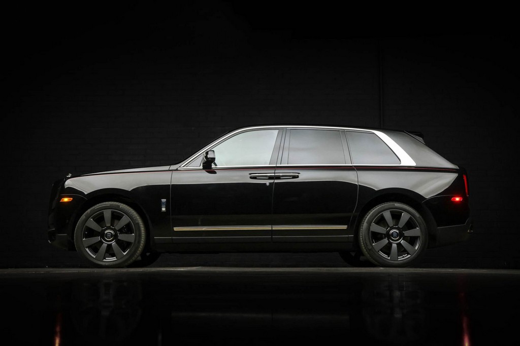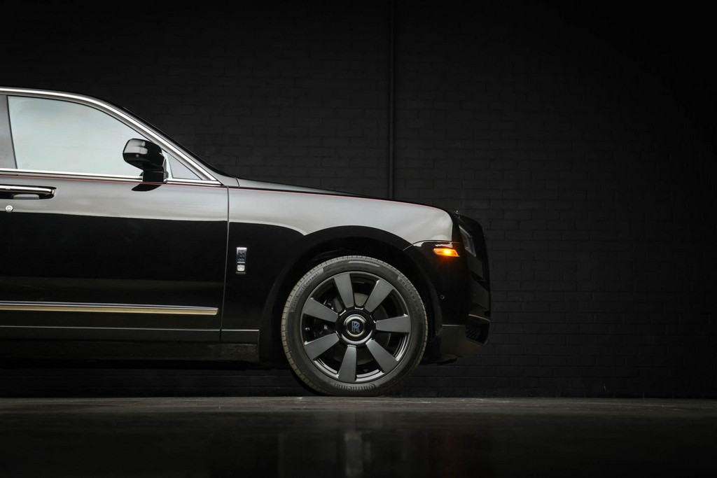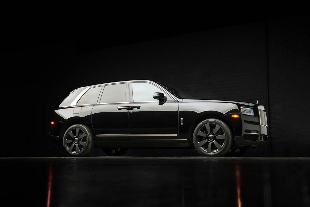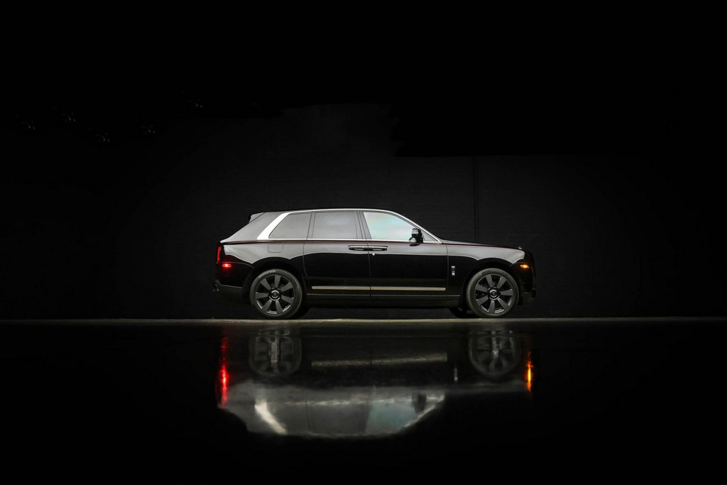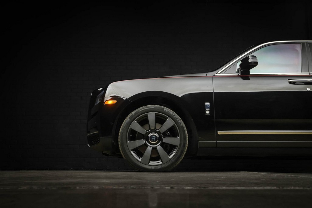 Equipment includes self-leveling air suspension, the Interior Detailing Package, Rolls-Royce laser headlights, and rear-hinged rear doors. The vehicle rides on 22″ seven-spoke Shadow wheels that complement its imposing silhouette.
